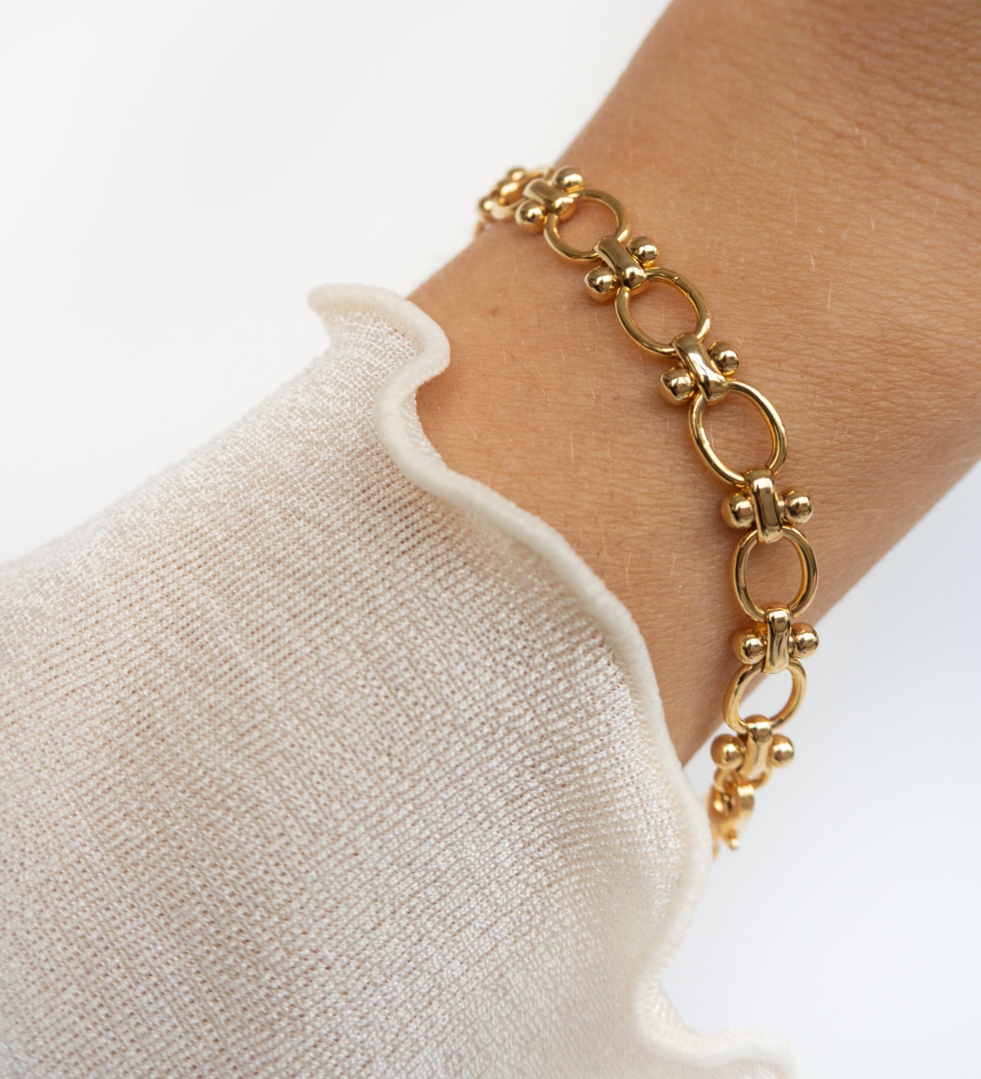 Pulsera de cadena de eslabones y bolas bañada en oro