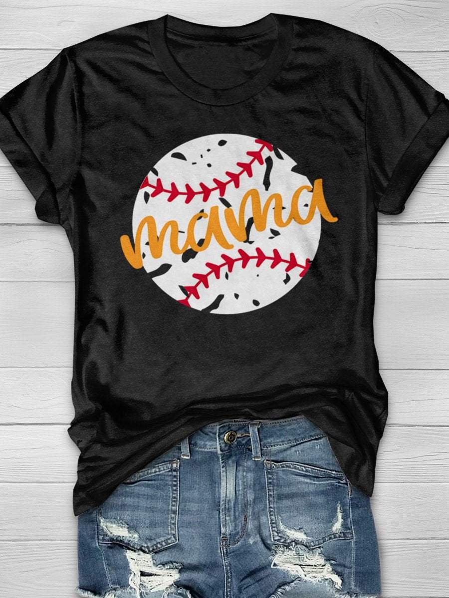 SKU: Baseball Mom Print Short Sleeve T-shirt