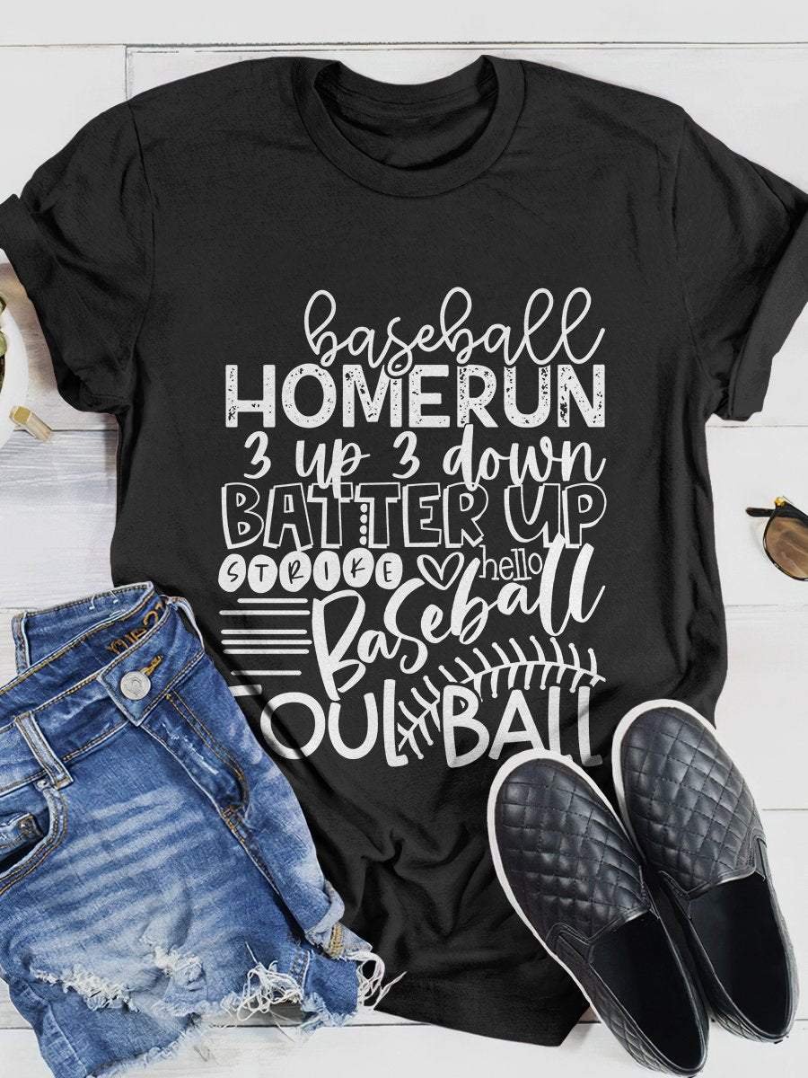 SKU: Baseball Mom Print Short Sleeve T-shirt