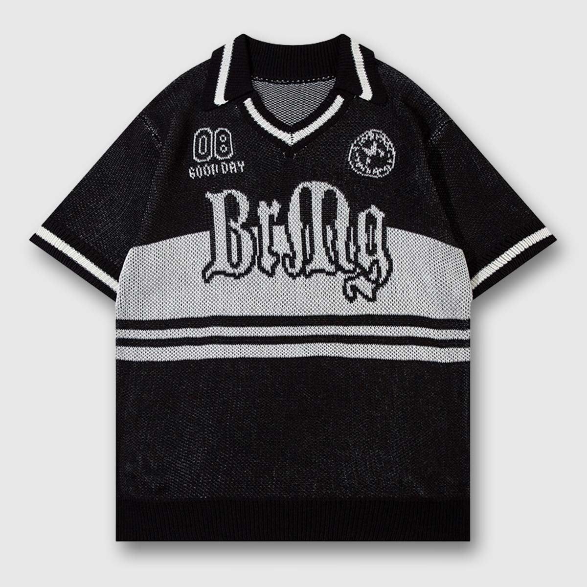 Camiseta universitaria negra a rayas