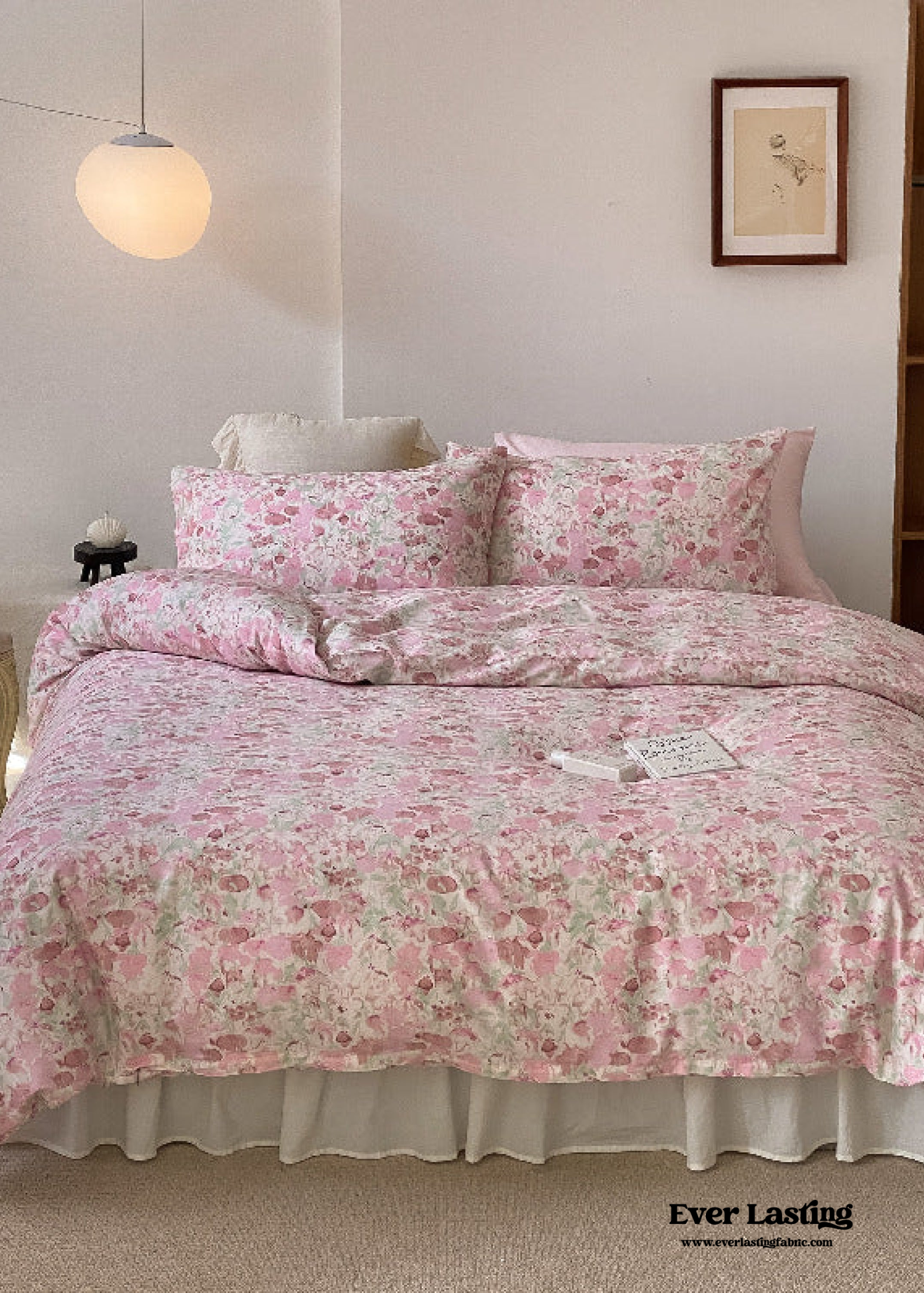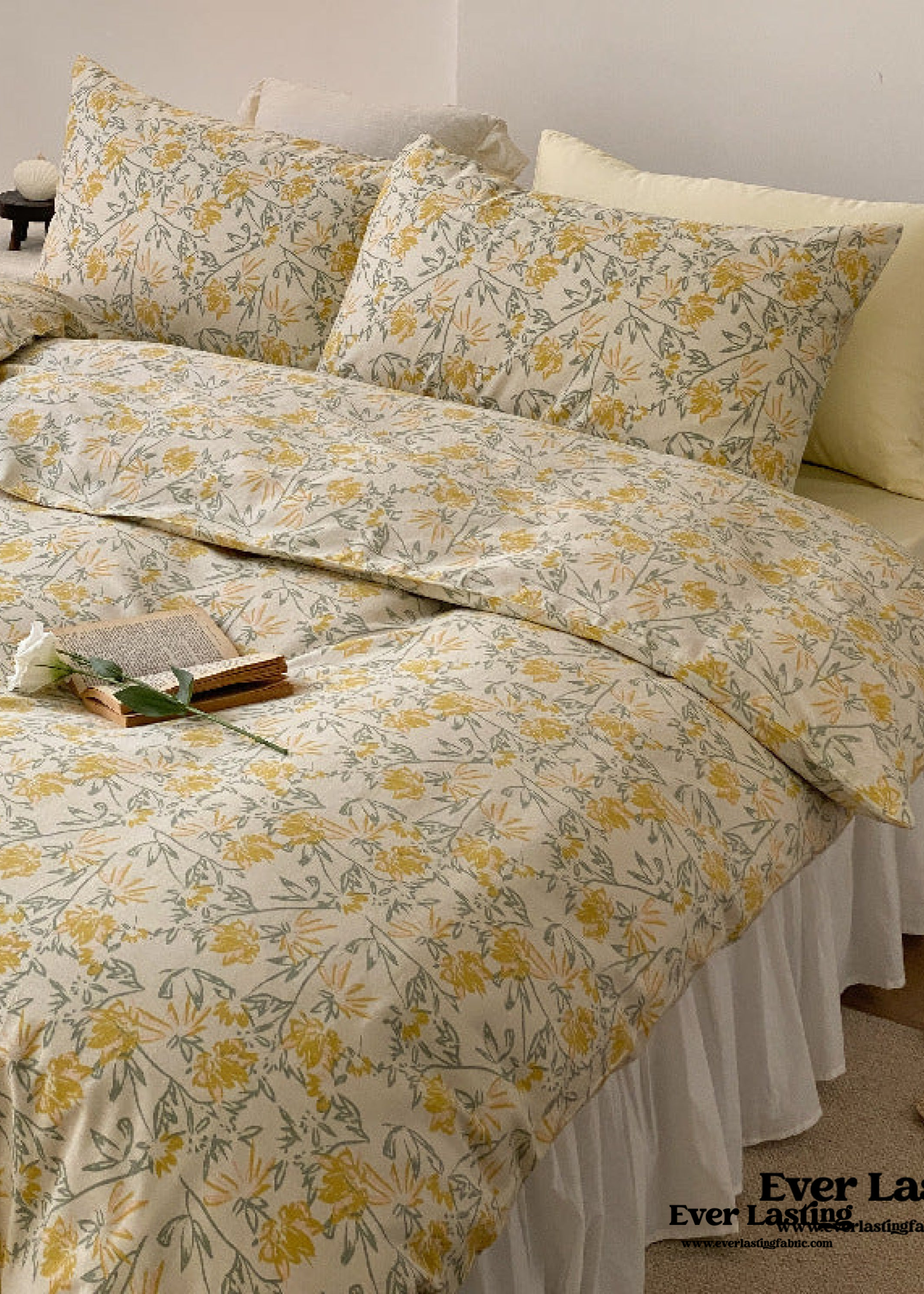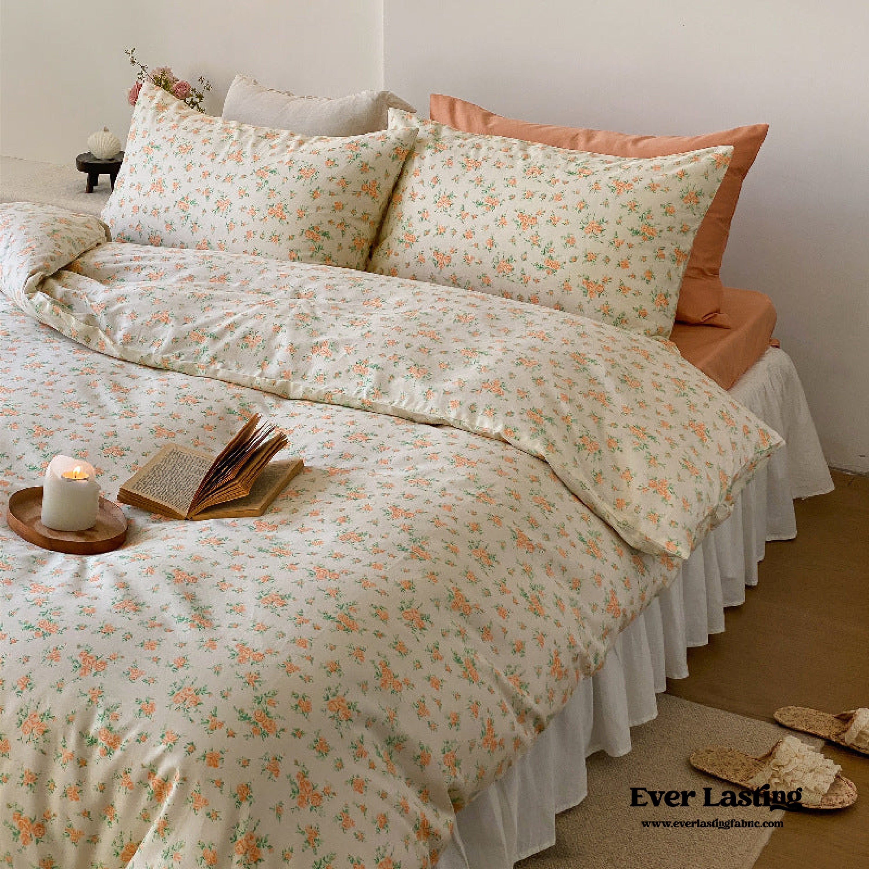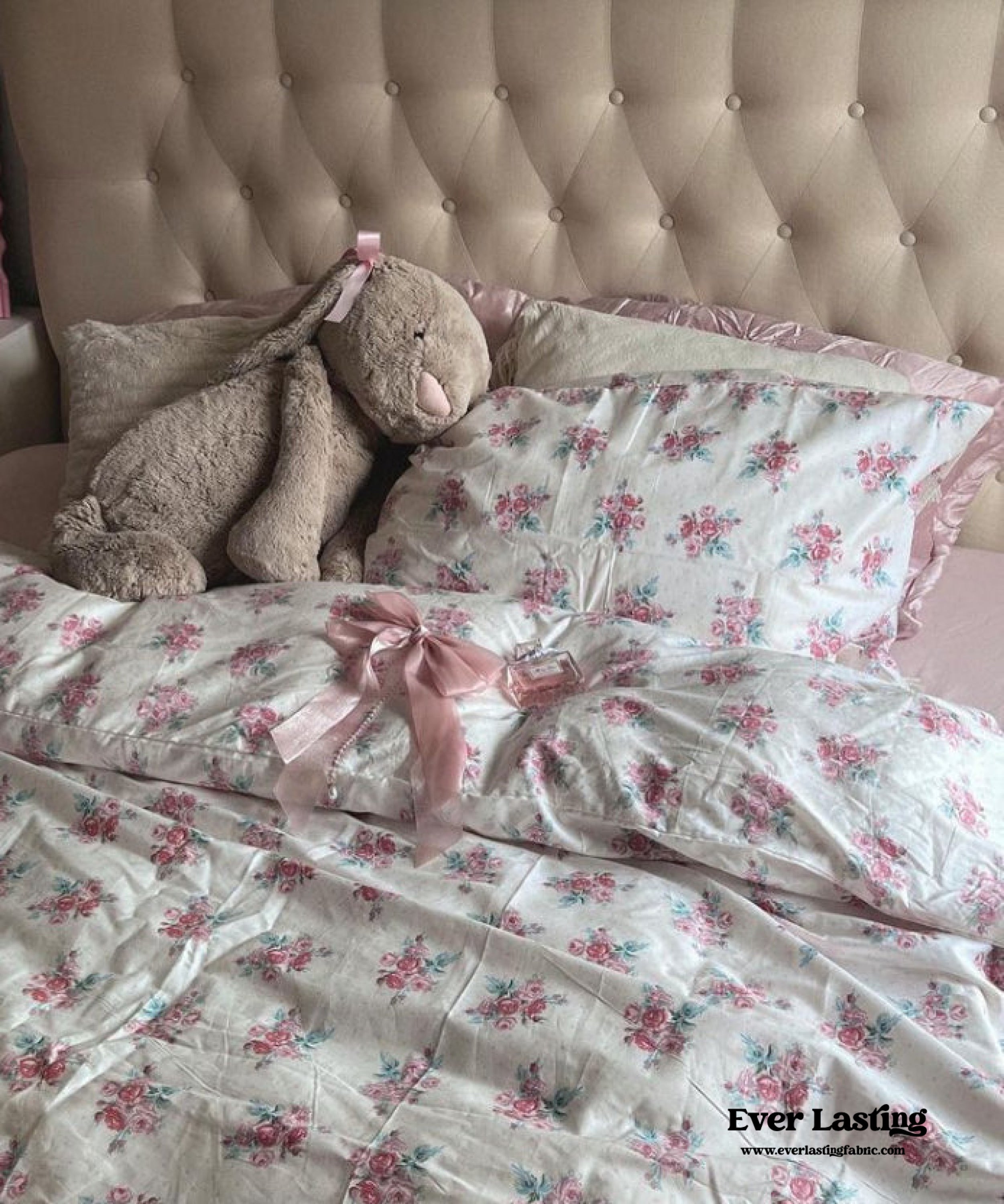 Get ready to immerse yourself in the sea of flowers with our newest Blossom Floral Bedding Set. Delicate blossoms create a serene sanctuary in your bedroom. transforming it into your very own private garden of tranquility. This set has got you covered from head to toe. featuring a bed sheet. a dreamy duvet cover. andcases for the ultimate bedding ensemble. Crafted from premium cotton materials. it ensures the most comfortable sleep experience. Drift off into a peaceful world surrounded by nature's grace. as you create your own blooming oasis. Upgrade your sleep. elevate your style. and embrace the beauty of nature with our irresistible Blossom Bedding Set.