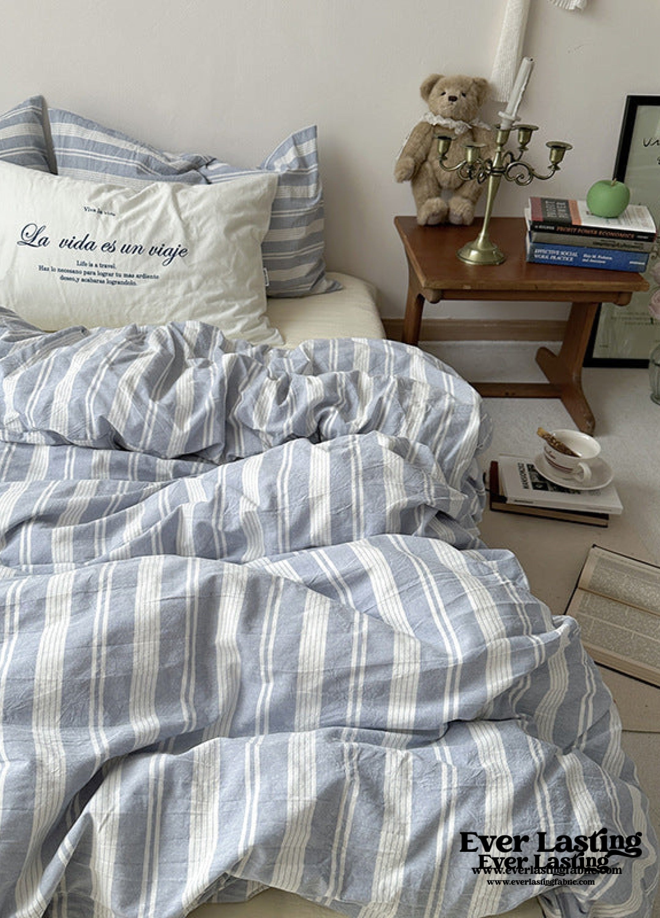 Elevate your bedroom with our effortlessly chic Blue Striped Washed Cotton Bedding Set. Made from premium washed cotton. it brings a relaxed. laid-back vibe to your space. The classic striped pattern adds a touch of timeless charm to your decor while the soft. breathable fabric promises a cozy night's sleep. With convenient features like four corner ties and a hidden zipper on each duvet cover. refreshing your bed is a breeze.
