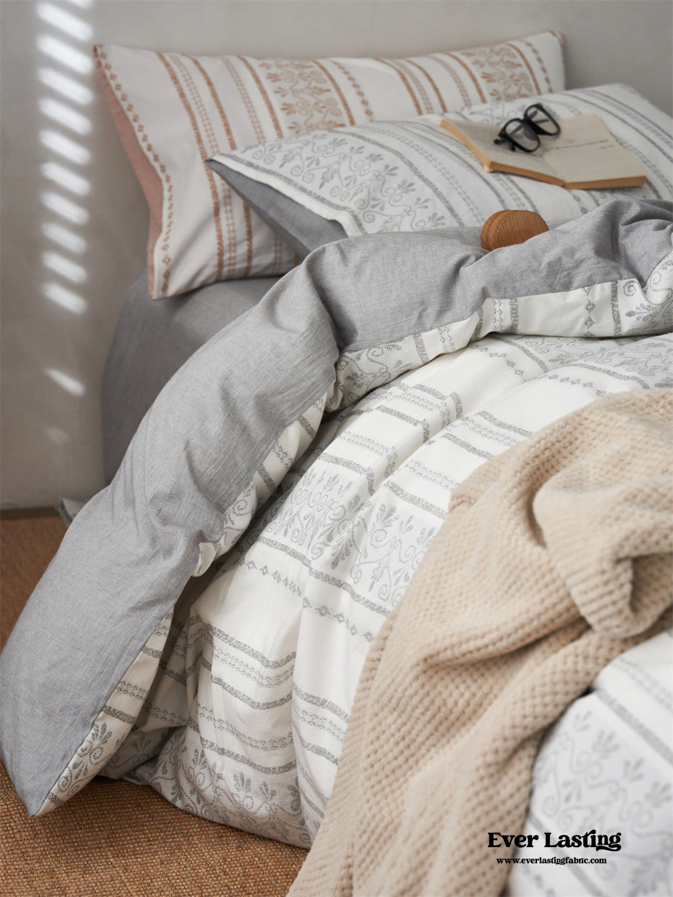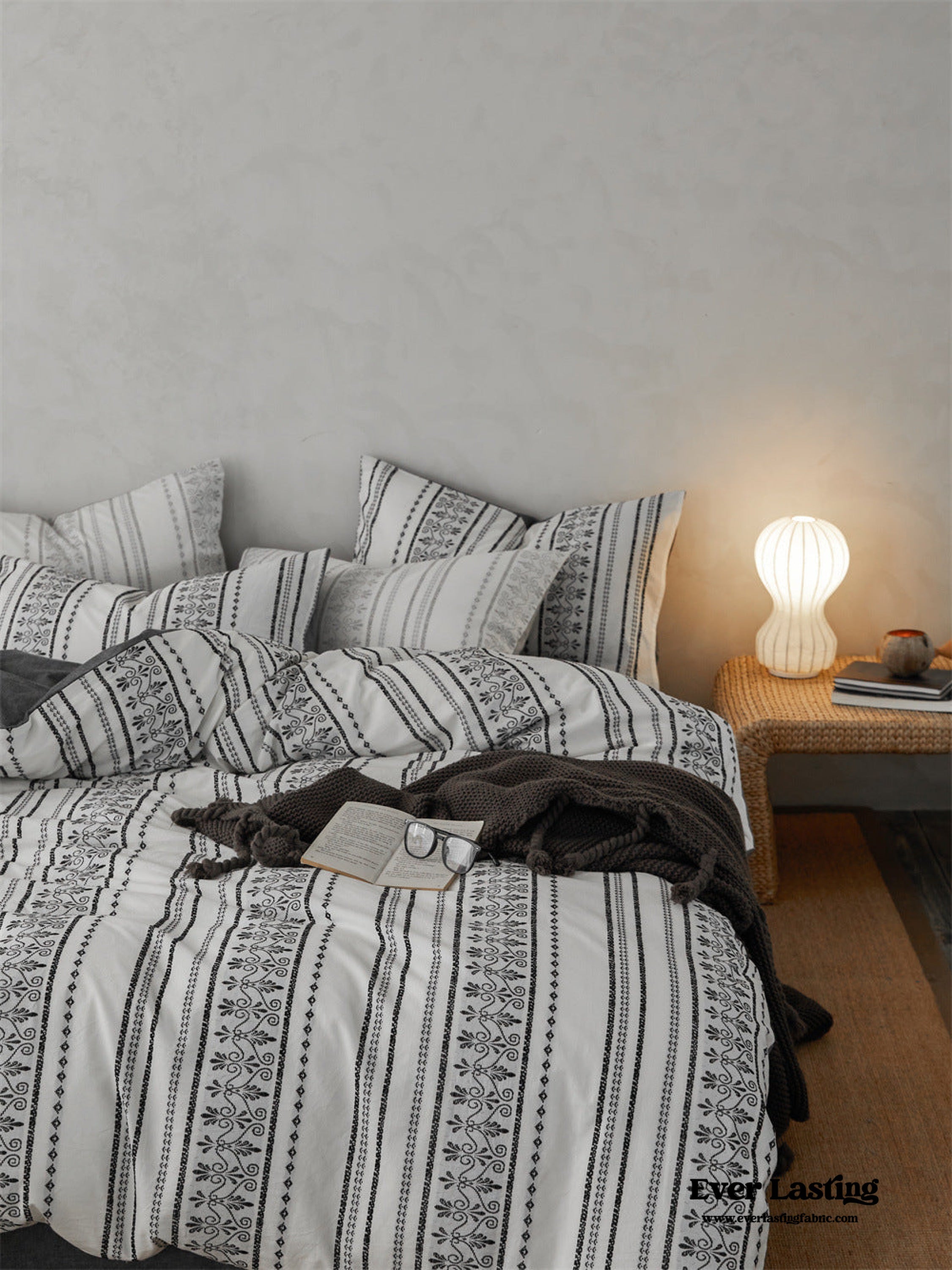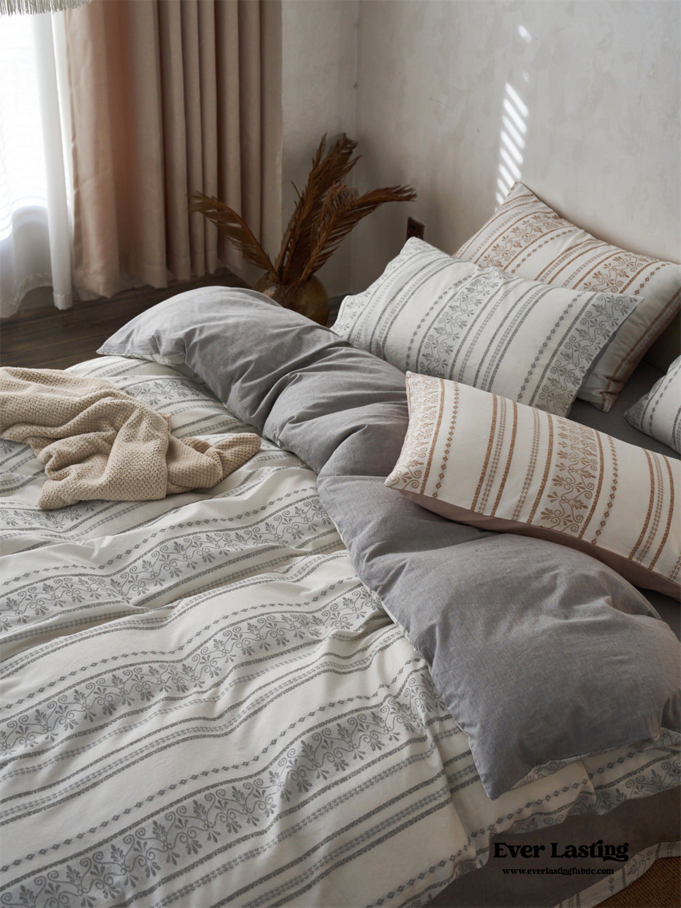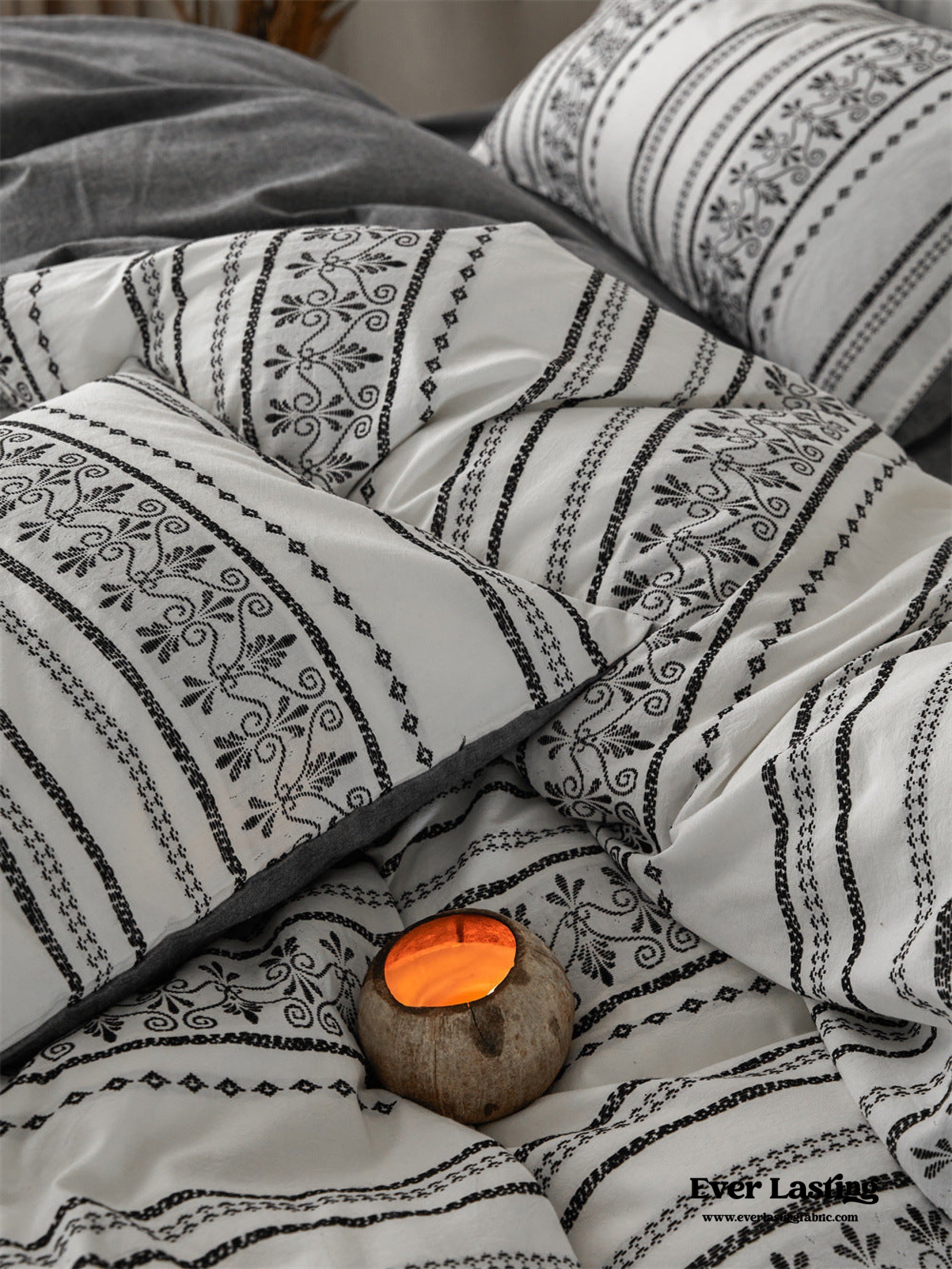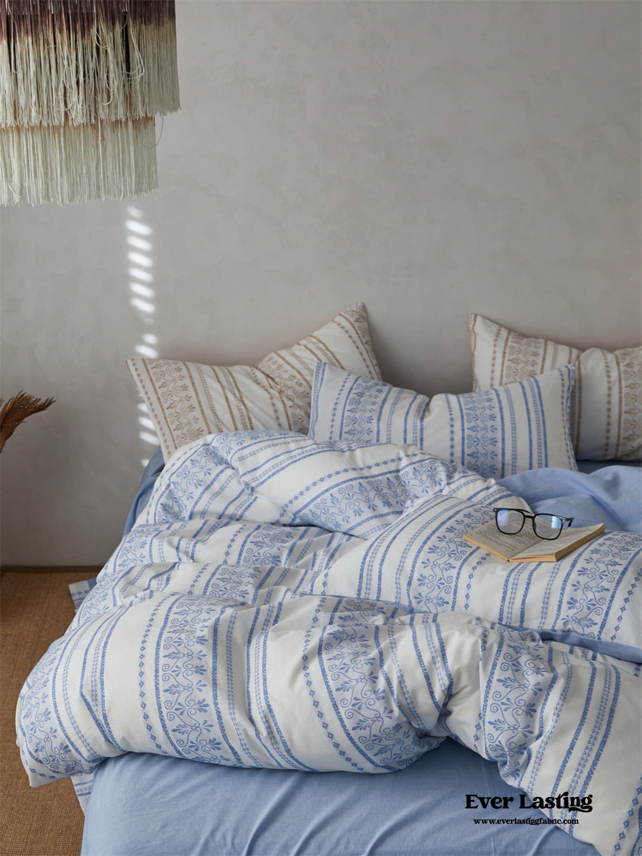 Introducing our Boho Jacquard Cotton Bedding Set where free-spirited design meets ultimate comfort. Immerse yourself in the eclectic charm of bohemian aesthetics. crafted with the finest cotton in a mesmerizing jacquard weave. The bedding set captures the essence of boho chic with its intricate patterns and soft. breathable fabric. creating a haven of style and relaxation in your bedroom.Each duvet cover is thoughtfully equipped with four corner ties and a hidden zipper. ensuring your duvet insert stays securely in place throughout the night.Elevate your sleep experience with the perfect fusion of unique design and premium quality cotton. turning your bedroom into a vibrant retreat that resonates with the free-spirited soul within you.