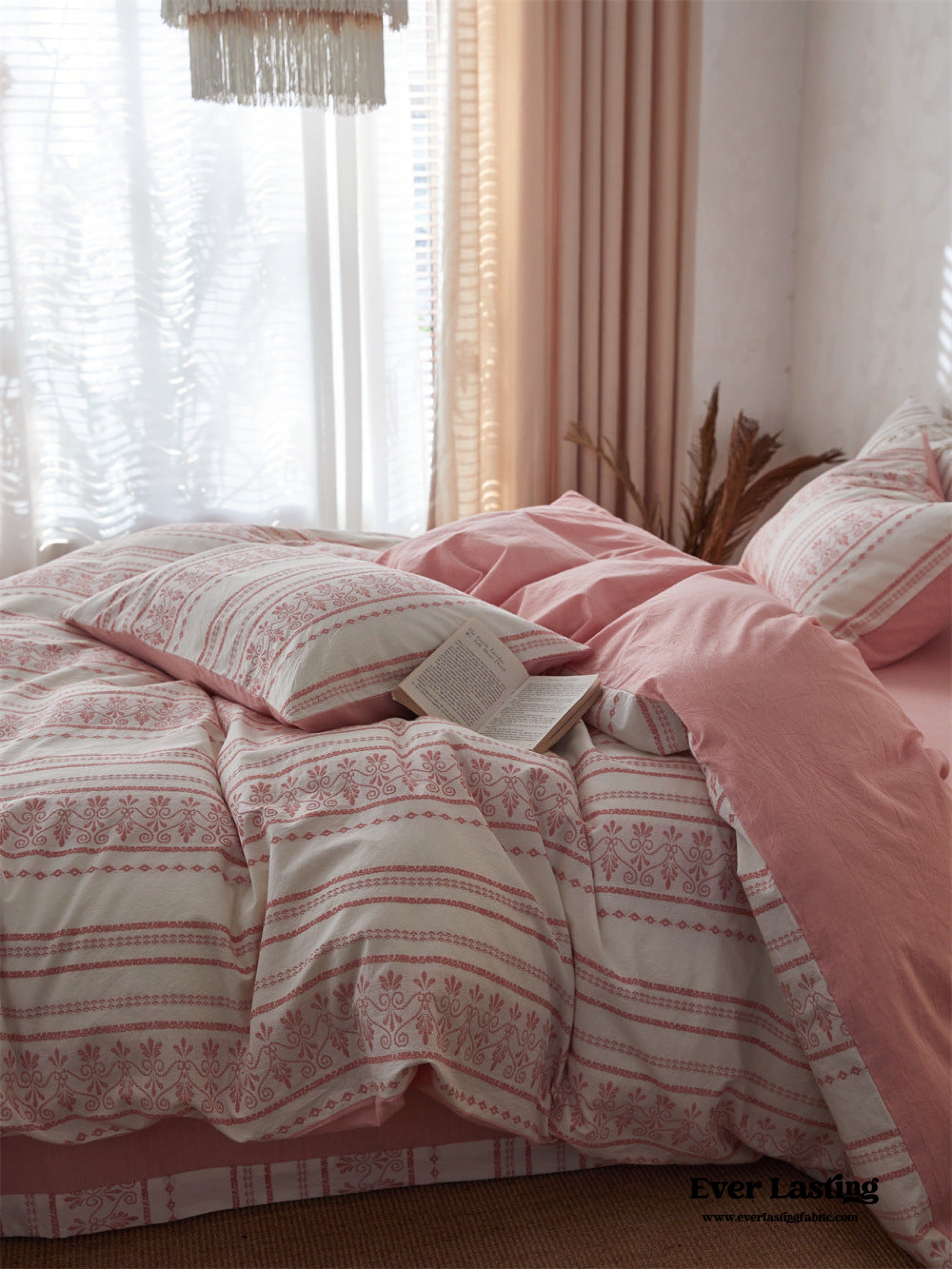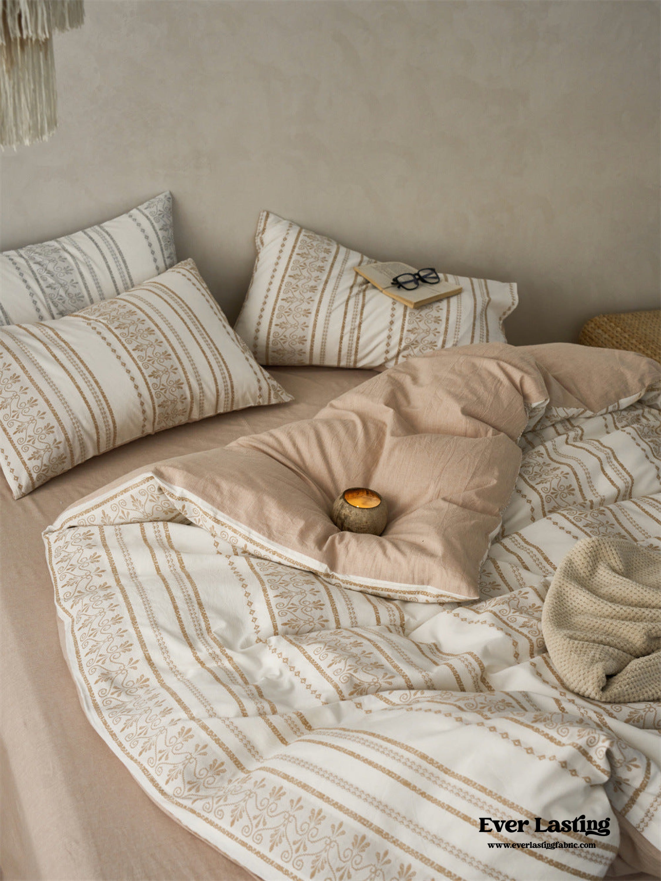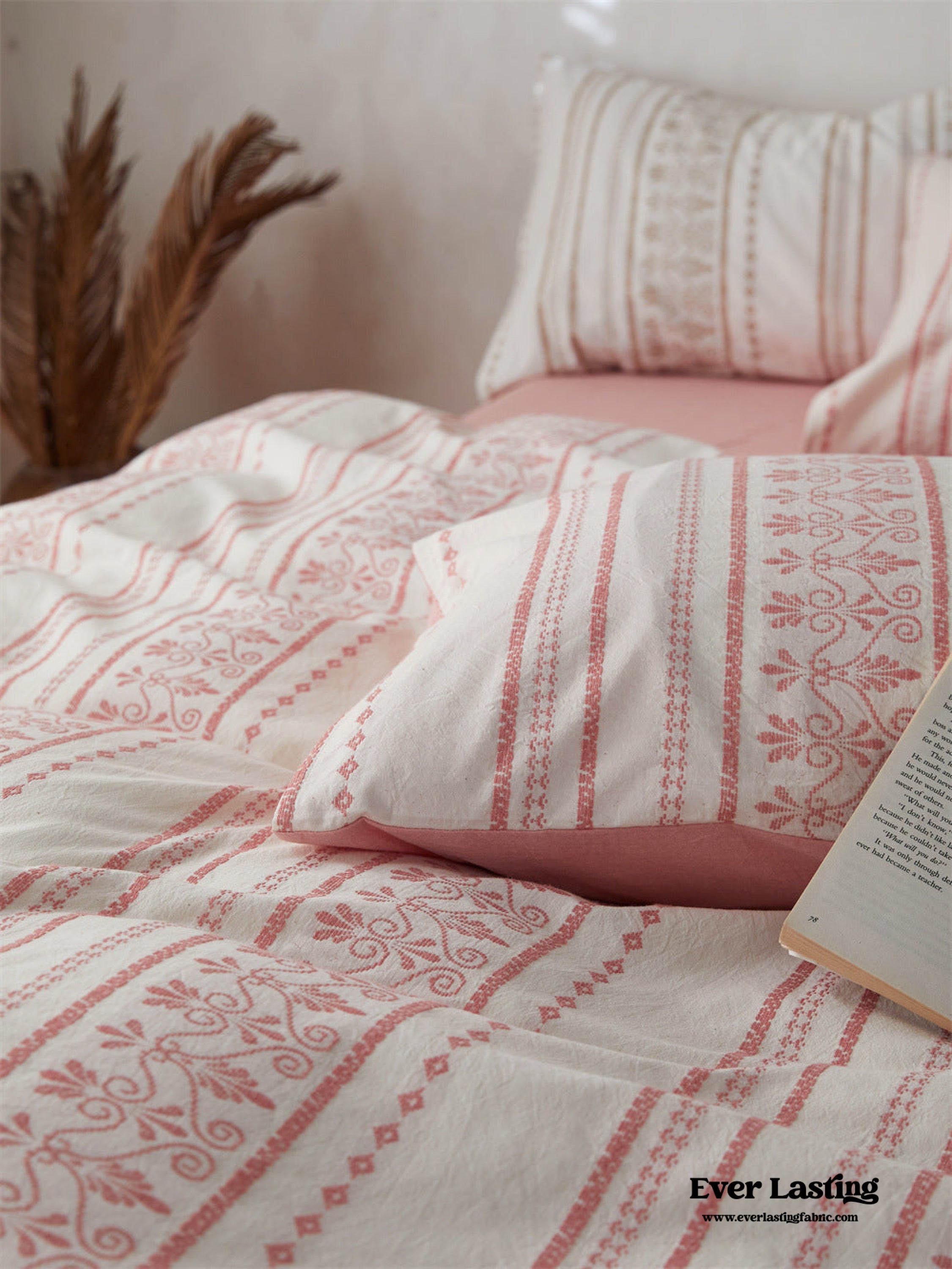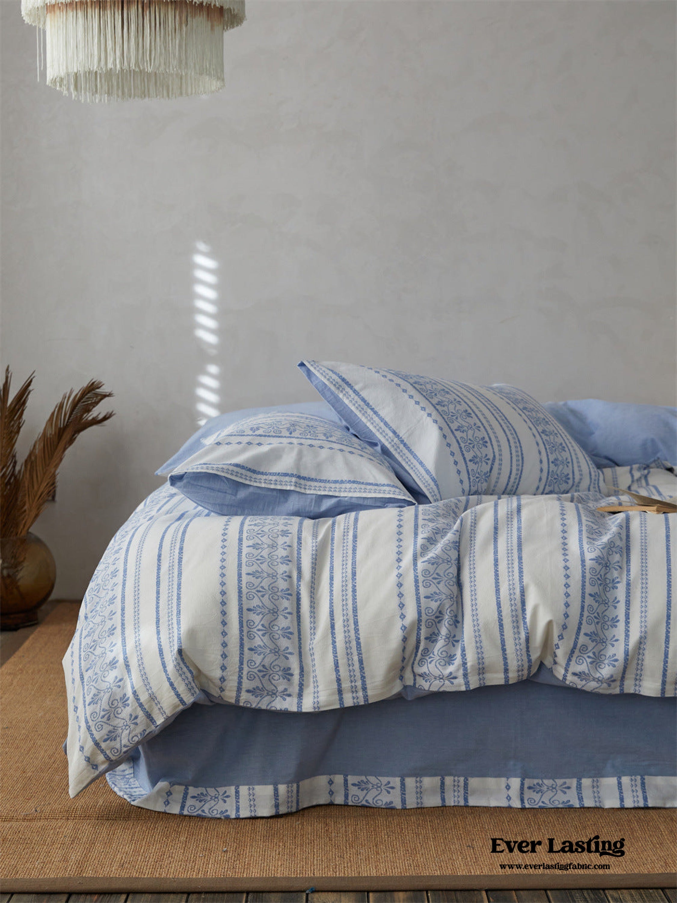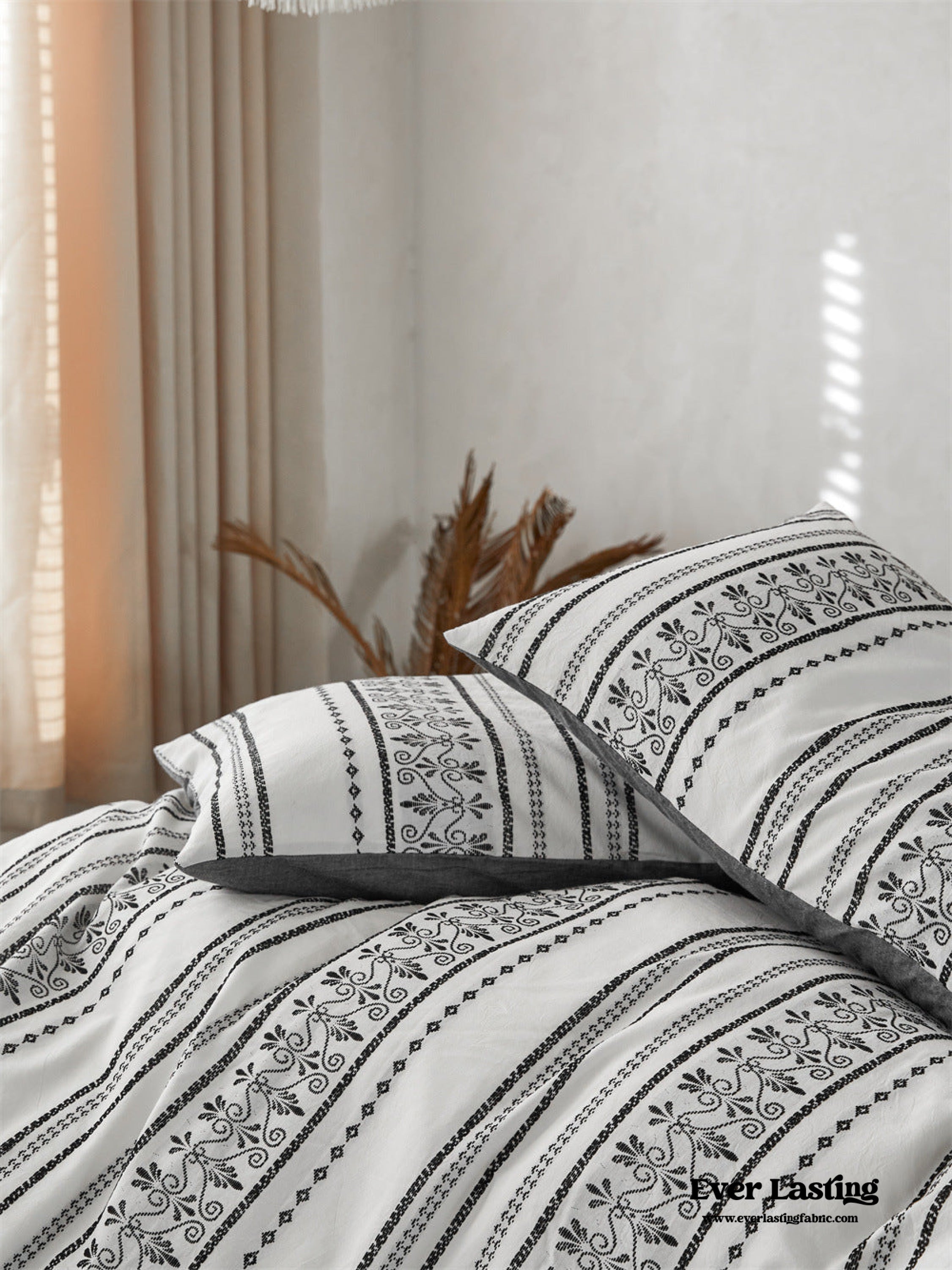 Introducing our Boho Jacquard Cotton Bedding Set where free-spirited design meets ultimate comfort. Immerse yourself in the eclectic charm of bohemian aesthetics. crafted with the finest cotton in a mesmerizing jacquard weave. The bedding set captures the essence of boho chic with its intricate patterns and soft. breathable fabric. creating a haven of style and relaxation in your bedroom.Each duvet cover is thoughtfully equipped with four corner ties and a hidden zipper. ensuring your duvet insert stays securely in place throughout the night.Elevate your sleep experience with the perfect fusion of unique design and premium quality cotton. turning your bedroom into a vibrant retreat that resonates with the free-spirited soul within you.