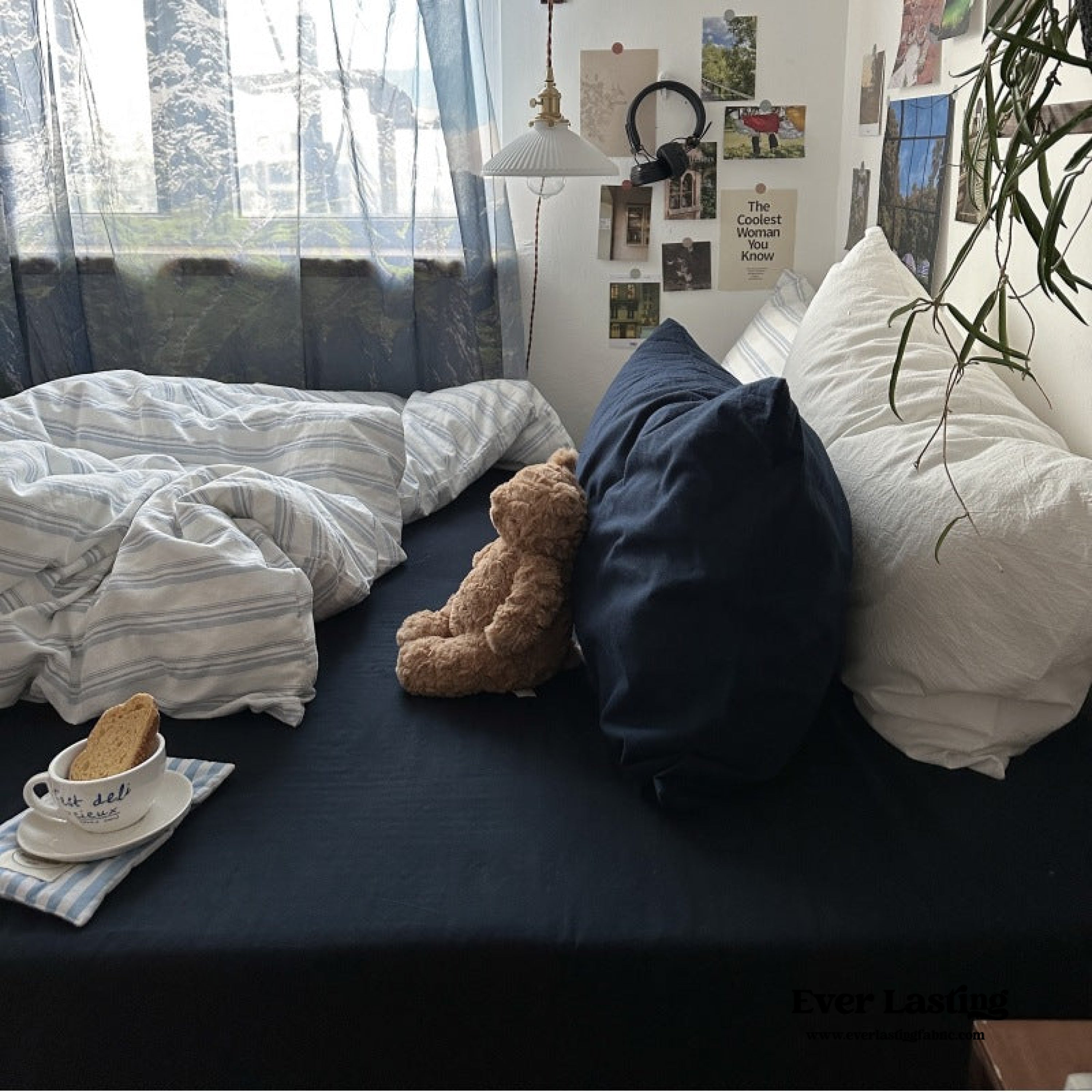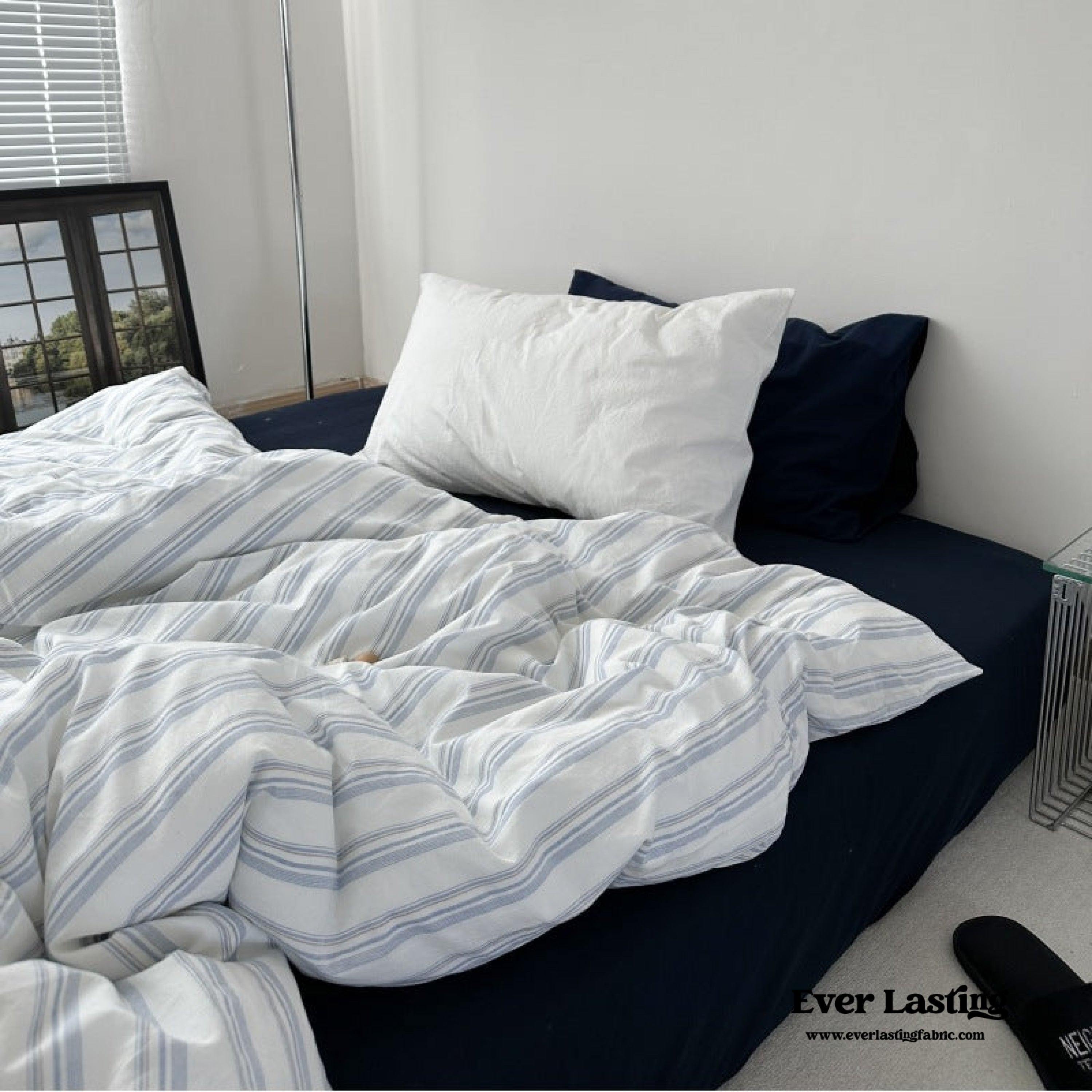 Create a serene retreat in your bedroom with Magchic's Breezy Stripe Washed Cotton Bedding Set. Crafted from premium washed cotton. this bedding ensemble offers the perfect blend of comfort and style for a serene night's sleep. The refreshing stripe pattern adds a touch of coastal charm. while the soft and breathable fabric ensures year-round comfort. Each duvet cover is thoughtfully equipped with four corner ties and a hidden zipper. ensuring your duvet insert stays securely in place throughout the night. Whether you're lounging in bed or drifting off to dreamland. our Breezy Stripe Bedding Set promises to keep you cool. comfortable. and stylish.