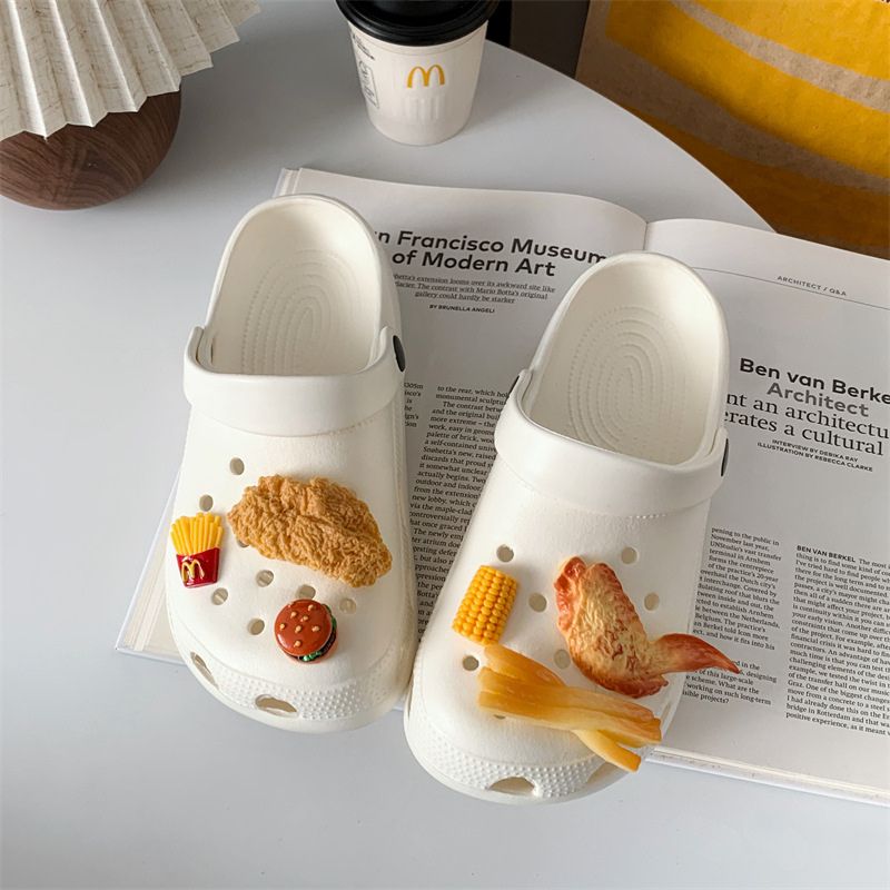 Características: Zueco de jardín. Color sólido. Diseño de alitas de pollo y hamburguesa . Sin cordones. Unisex.