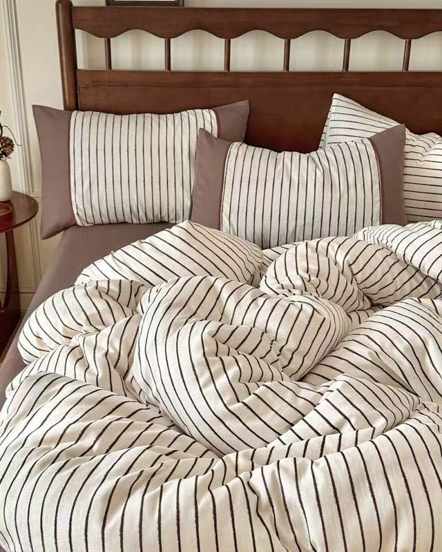 Elevate your bedroom with Magchic's Camille French Stripe Bedding Set. where coquette allure meets classic cottagecore beauty. Crafted from breathable washed cotton. it offers supreme comfort and a gentle. time-worn softness. With its delicate French stripe and vintage accents. this lightweight yet cozy set enhances your decor with subtle sophistication. Each duvet cover features corner ties and a hidden zipper to keep your insert securely in place. offering lasting craftsmanship made just for you.