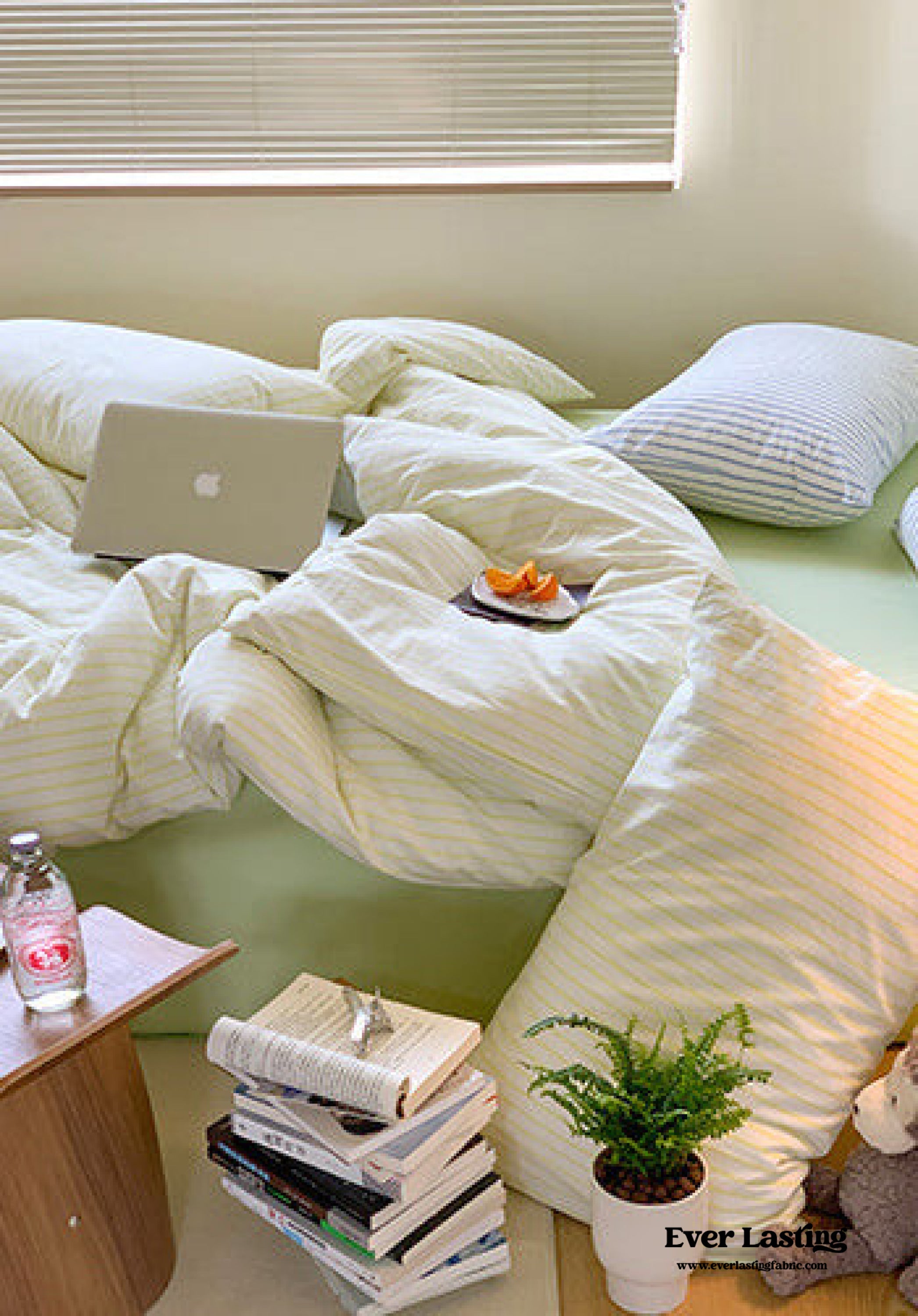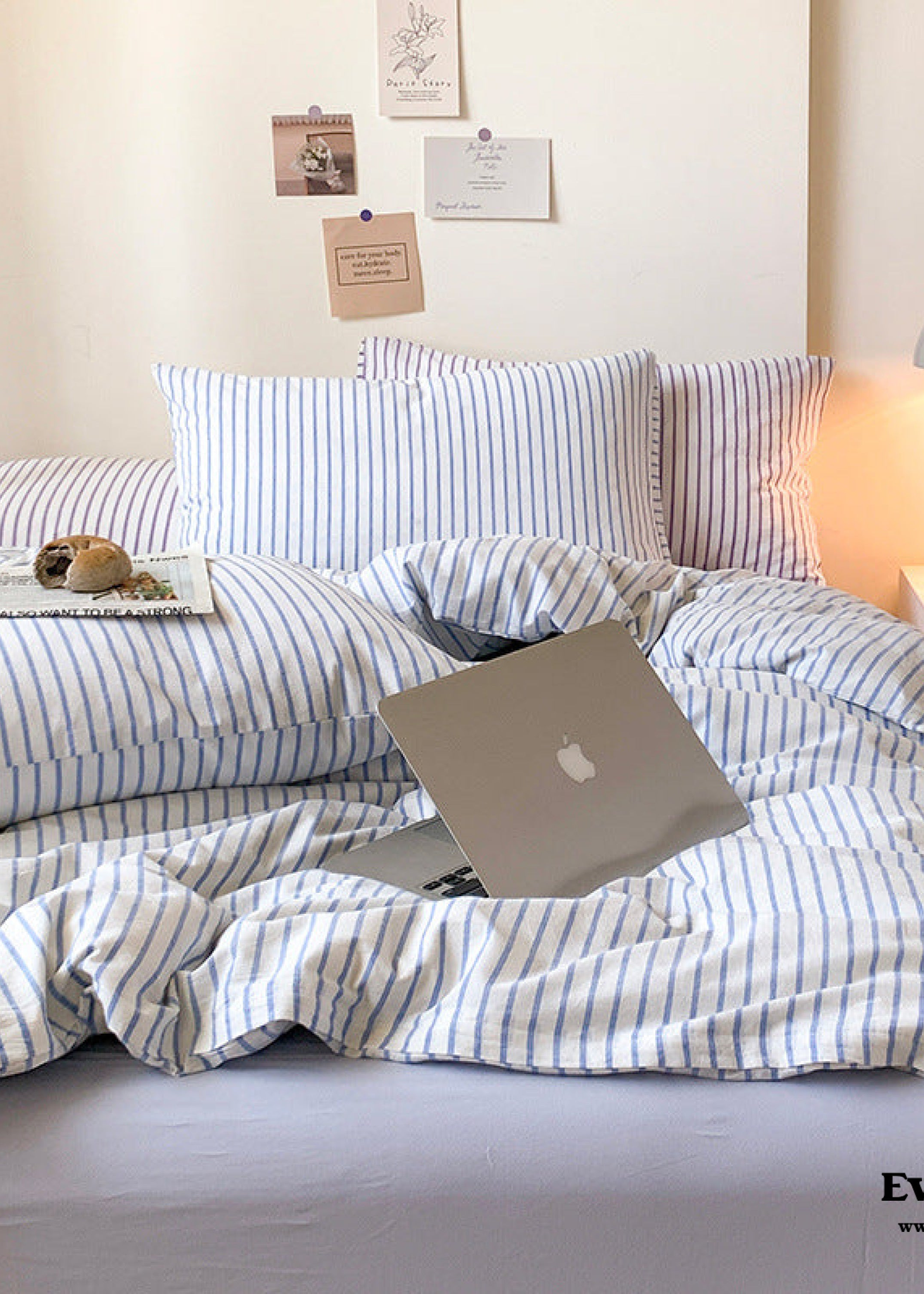 Transform your bedroom into a serene oasis with our Candy Stripe Washed Cotton Bedding Set. exclusively at Magchic. Crafted from premium washed cotton. this bedding ensemble offers the perfect blend of comfort and style for the warmer months. The refreshing stripe pattern adds a touch of coastal charm. while the soft and breathable fabric ensures a restful night's sleep. Each duvet cover is thoughtfully equipped with four corner ties and a hidden zipper. ensuring your duvet insert stays securely in place throughout the night. Whether you're lounging in bed or drifting off to dreamland. our Candy Stripe Bedding Set promises to keep you cool. comfortable. and stylish all seasons long.