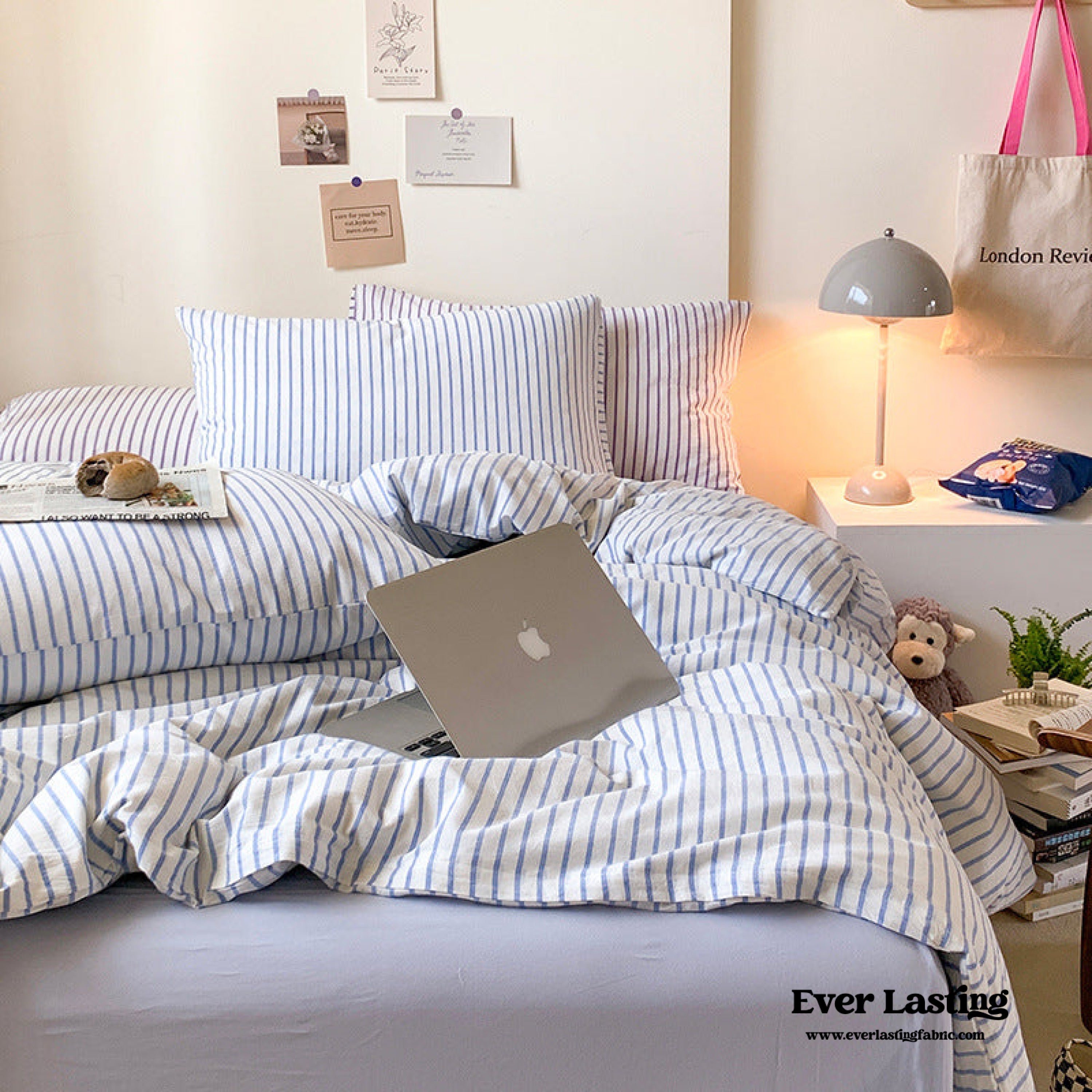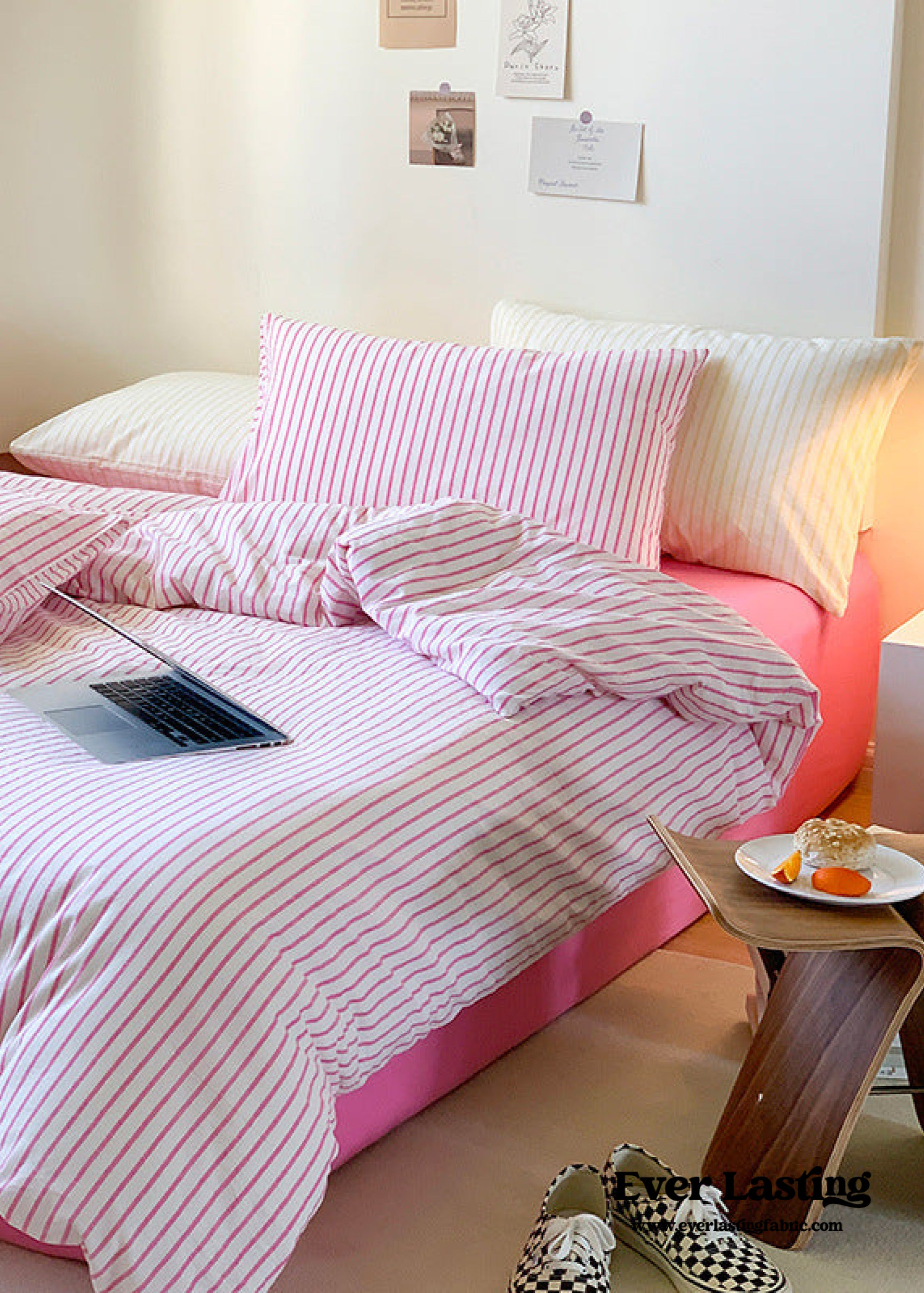Transform your bedroom into a serene oasis with our Candy Stripe Washed Cotton Bedding Set. exclusively at Magchic. Crafted from premium washed cotton. this bedding ensemble offers the perfect blend of comfort and style for the warmer months. The refreshing stripe pattern adds a touch of coastal charm. while the soft and breathable fabric ensures a restful night's sleep. Each duvet cover is thoughtfully equipped with four corner ties and a hidden zipper. ensuring your duvet insert stays securely in place throughout the night. Whether you're lounging in bed or drifting off to dreamland. our Candy Stripe Bedding Set promises to keep you cool. comfortable. and stylish all seasons long.