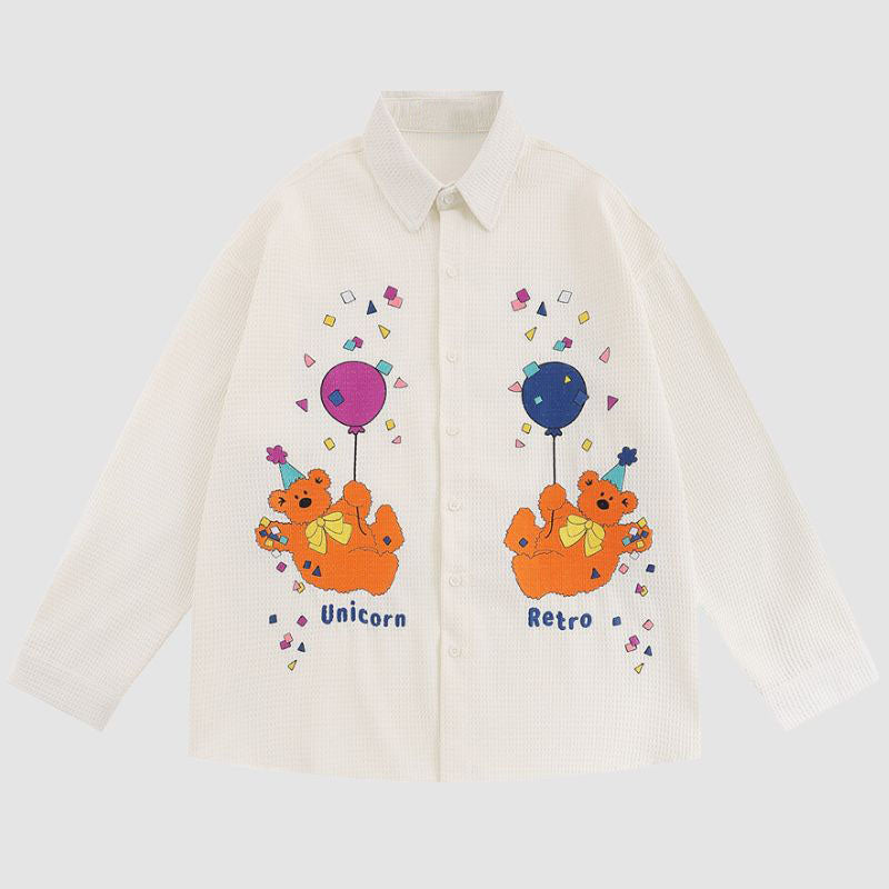 Características: Camisas. Solapa. Manga larga. Diseño de oso bordado. Ajuste relajado. Suave y transpirable. Unisex. Conjuntos de pareja.