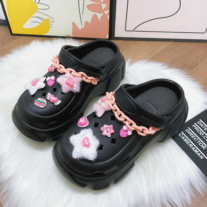 Características: Zueco de jardín. Color sólido. Diseño de decoración de dulces de dibujos animados . Sin cordones. Unisex.
