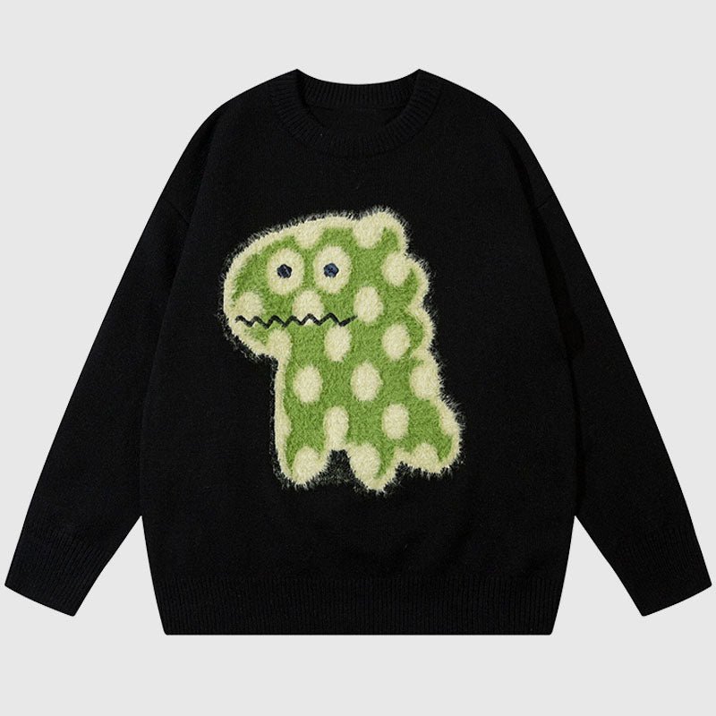 Suéter bordado con dinosaurio moteado de dibujos animados