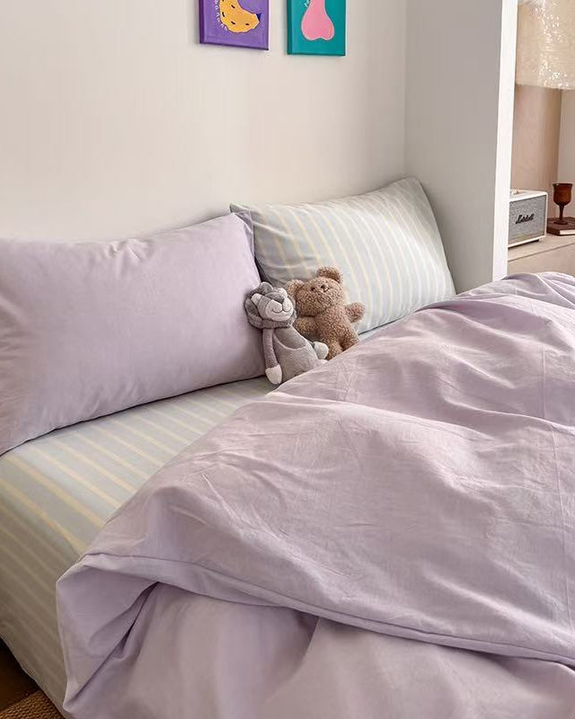 Drift into a world of soft charm with Magchic's Chloe Pastel Candy Cotton Bedding Set. Crafted from airy 100% washed cotton. this ultra-soft. breathable set brings gentle comfort all year round. The dreamy pastel palette fits coquette. soft girl. kawaii. and cottagecore aesthetics beautifully. giving your bedroom a serene. whimsical atmosphere. Each duvet cover features hidden zippers and corner ties for a secure fit. and the lightweight feel creates instant coziness.