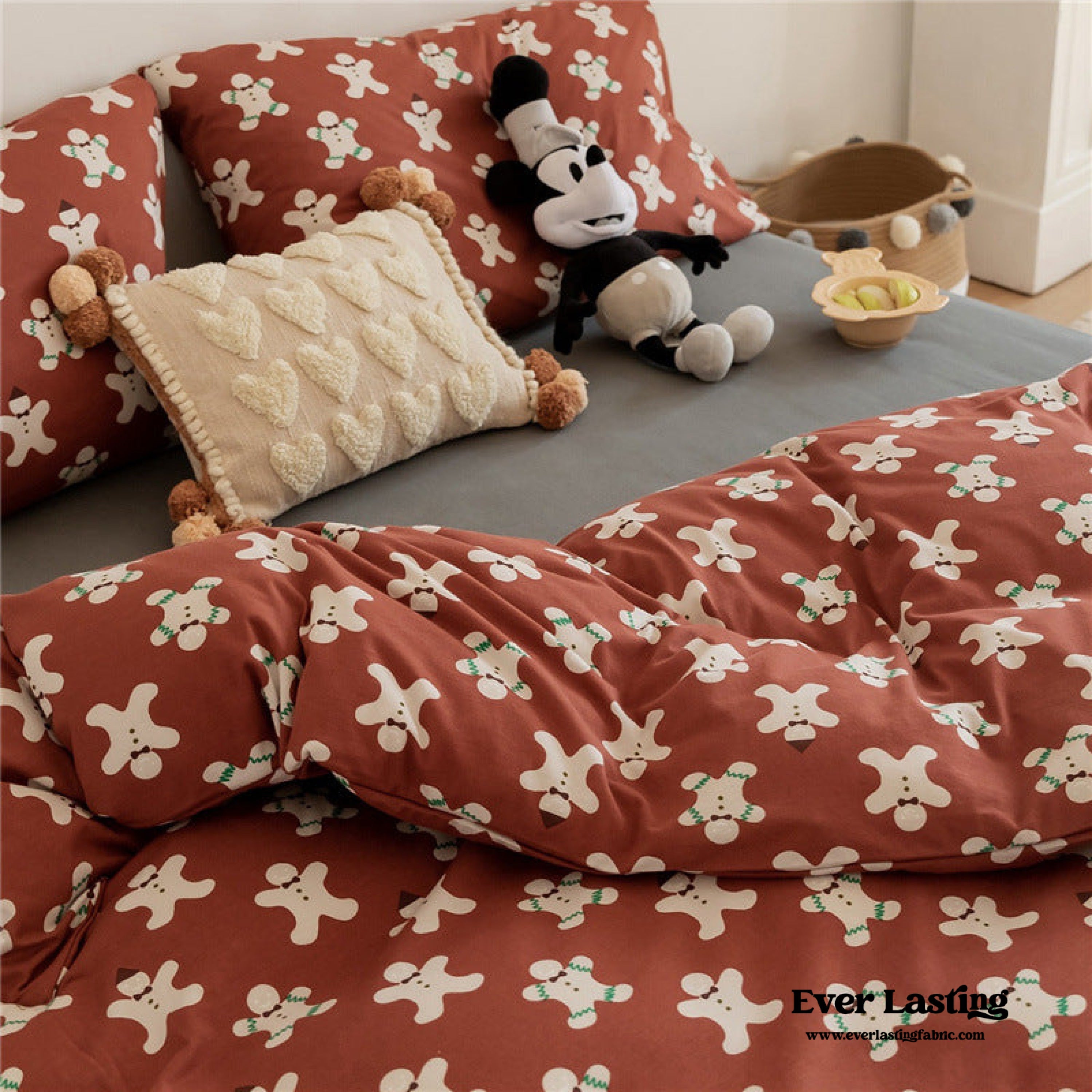 Create a festive haven with Magchic's Christmas Gingerbread Jersey Knit Bedding Set. perfect for adding holiday charm to your bedroom. Crafted from soft. breathable jersey knit fabric. this bedding set offers cozy comfort and a touch of whimsy with its gingerbread-inspired design. Each duvet cover features corner ties and a hidden zipper to securely hold your duvet insert. ensuring both convenience and durability. Celebrate the season in style with this delightful bedding set that blends festive flair and ultimate comfort.