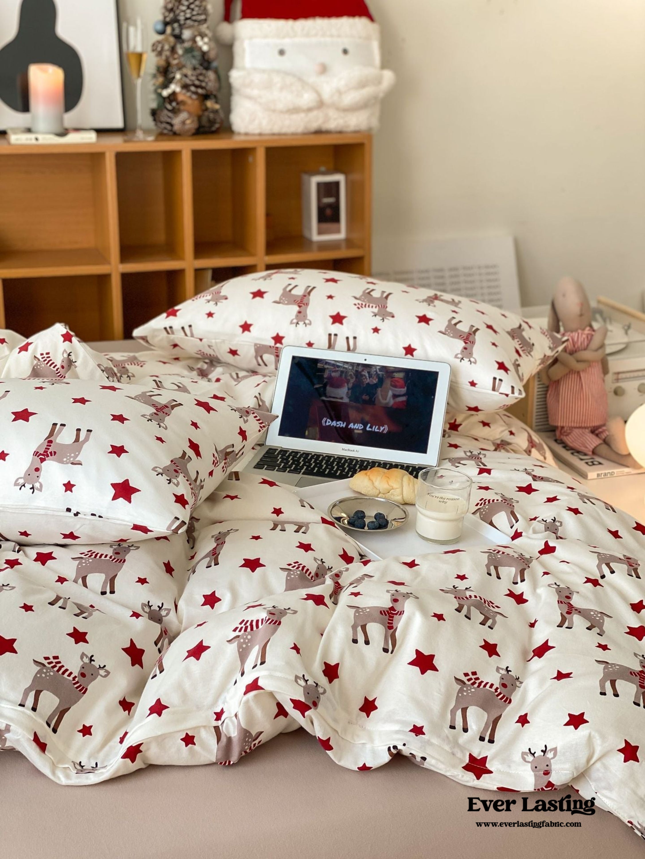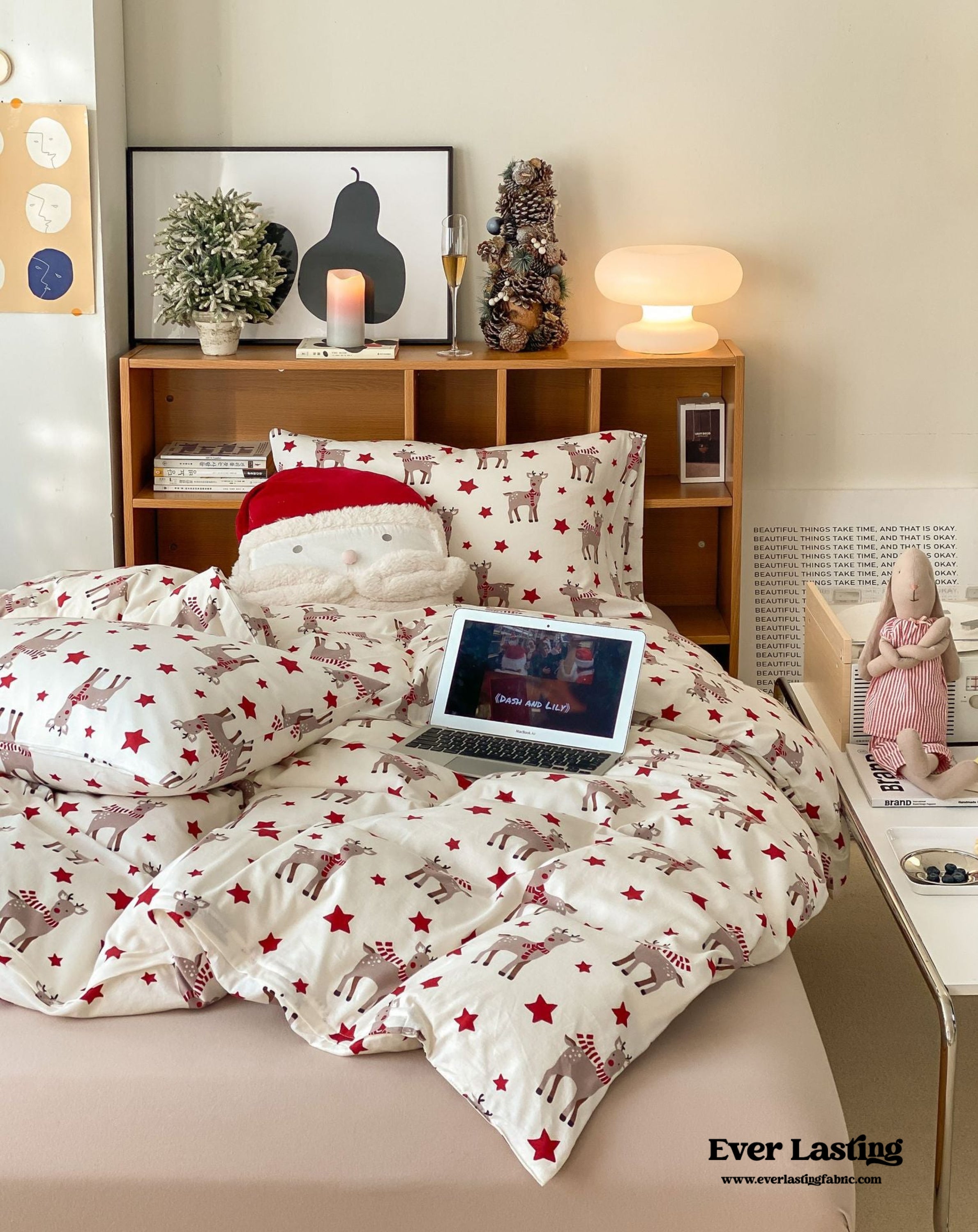 Celebrate the festive season with Magchic's Christmas Star Reindeer Bedding Set. designed to bring holiday cheer to your bedroom. Made from soft. breathable jersey knit fabric. this set combines cozy comfort with playful seasonal charm. The delightful reindeer and star pattern captures the magic of Christmas. making it the perfect centerpiece for your holiday decor. Each duvet cover features corner ties and a hidden zipper to securely hold your duvet insert. promising enduring quality tailored just for you. Whether you're creating a warm winter retreat or adding a festive touch to your home. this bedding set blends comfort. style. and holiday spirit seamlessly.