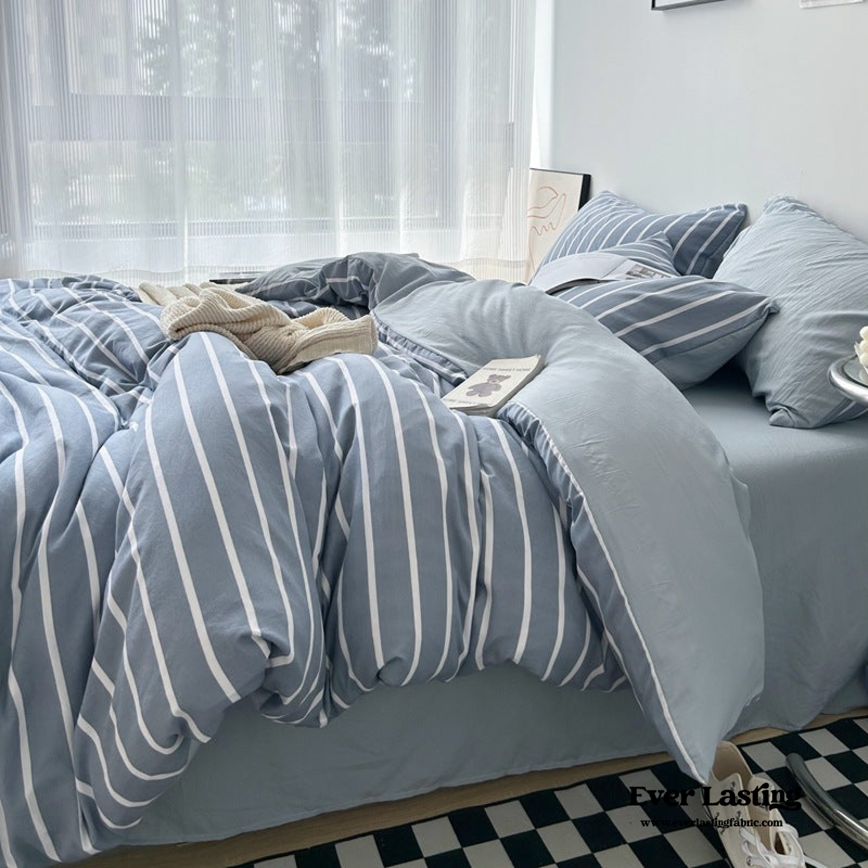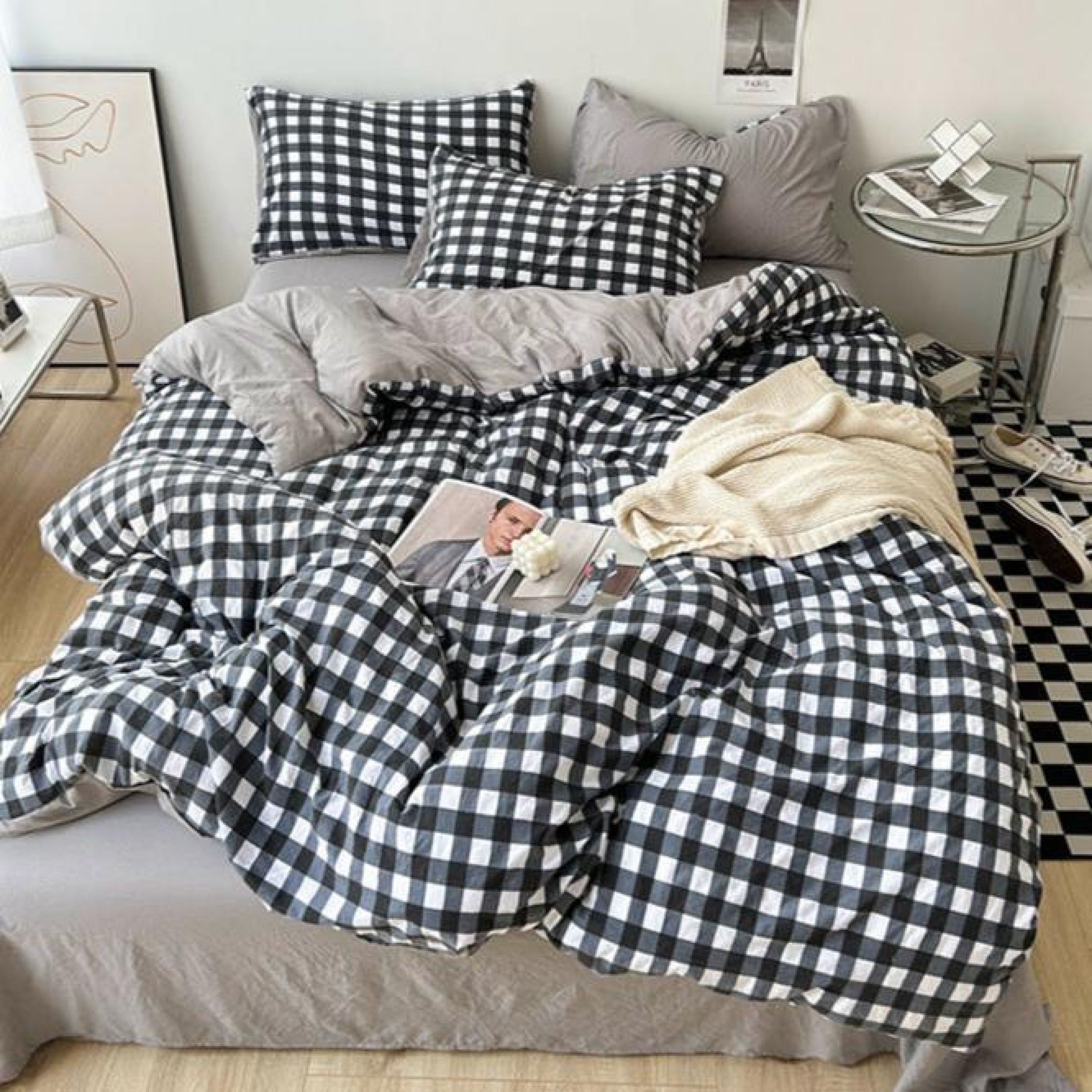 Introducing Clean Cut Bedroom Bedding Set in Gingham Brown from Magchic - the perfect addition to any master bedroom or smaller bedroom/dorm. Made from high-quality washed cotton with a soft and luxurious feel. this set features a classic striped design for a fresh look. Rest peacefully with the thoughtful design of four corner ties and a hidden zipper. keeping your duvet insert secure all night long.