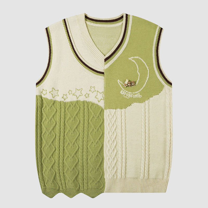 Suéter tipo chaleco con patchwork en contraste de colores