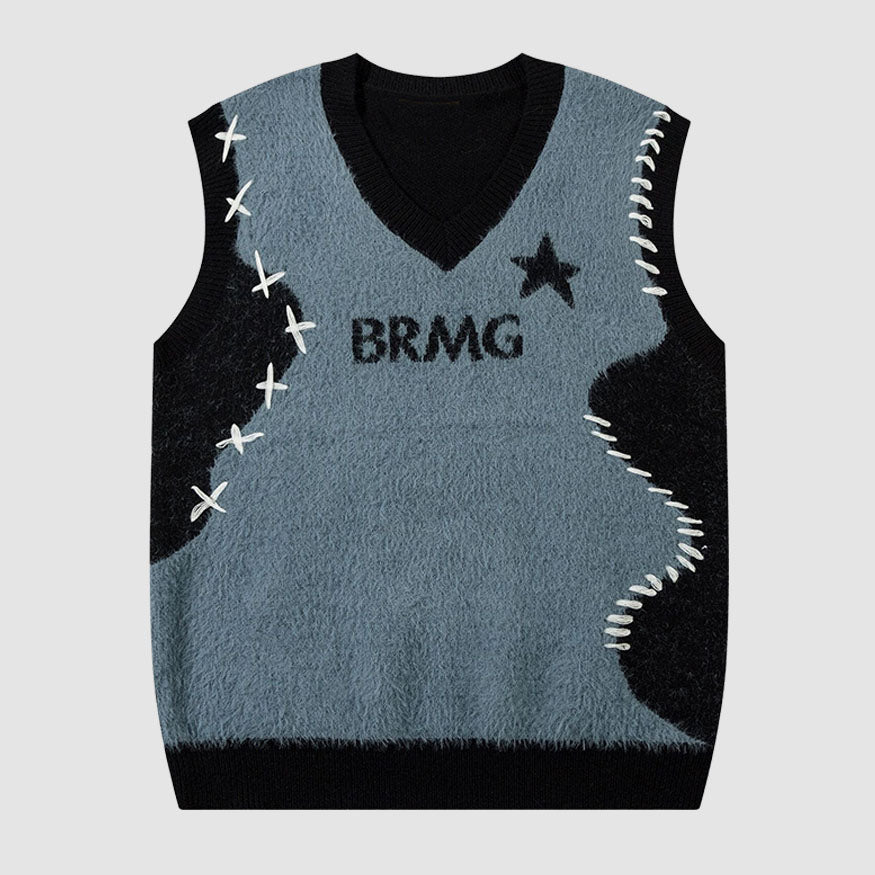 Características: Chaleco. Cuello en V. Sin mangas. Jersey. Diseño de patchwork en contraste de color. Corte holgado. Tejido jacquard. Conjuntos para parejas.