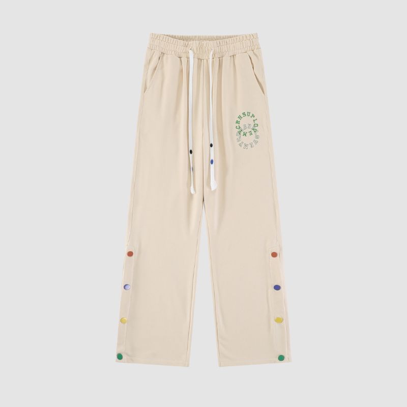 Características: Pantalones. Pantalones deportivos. Diseño estampado de letras. Diseño de botones coloridos. Cintura con cordón. Hip-hop. Vintage. Pierna recta . Pierna ancha. Ajuste relajado . Unisex. Conjuntos de pareja.