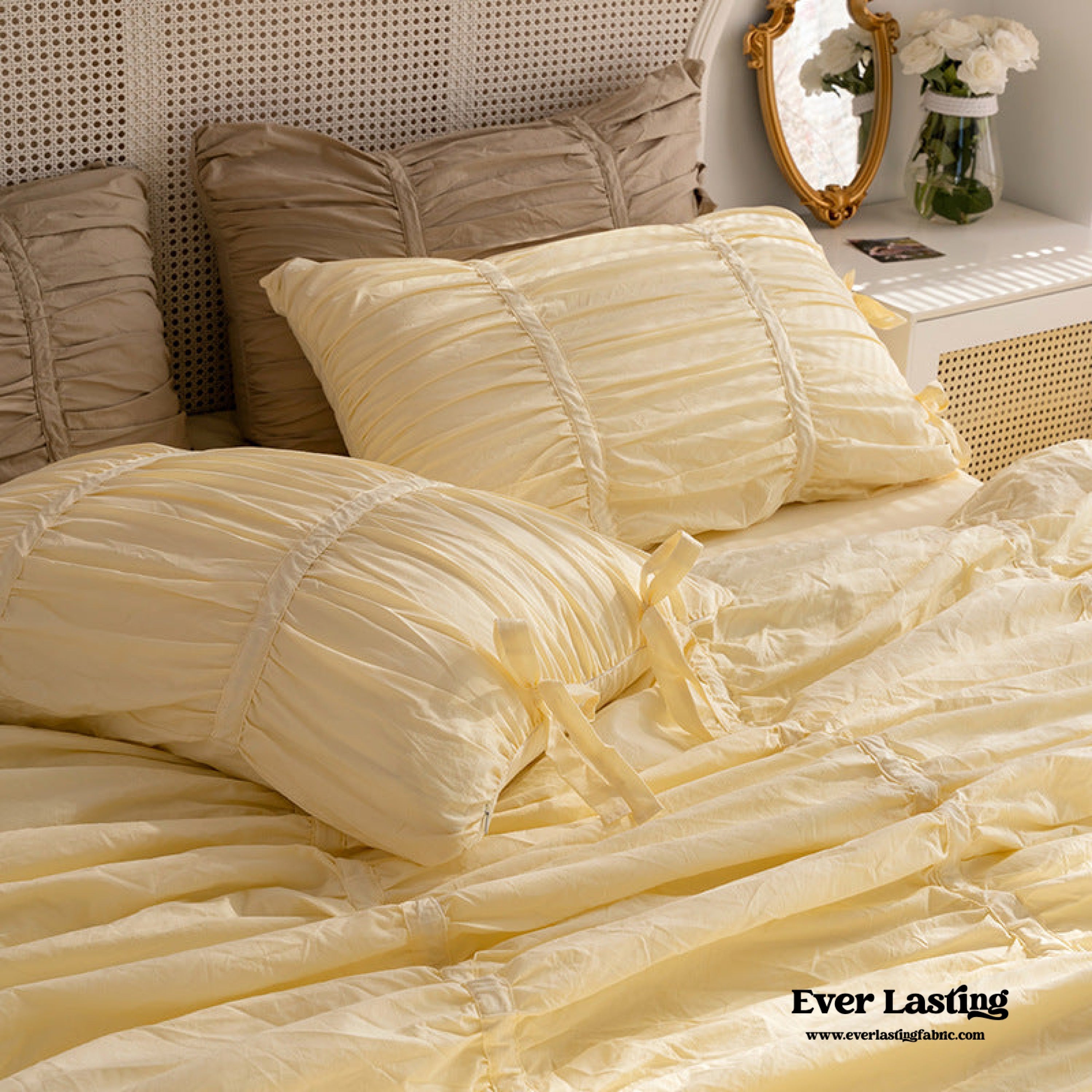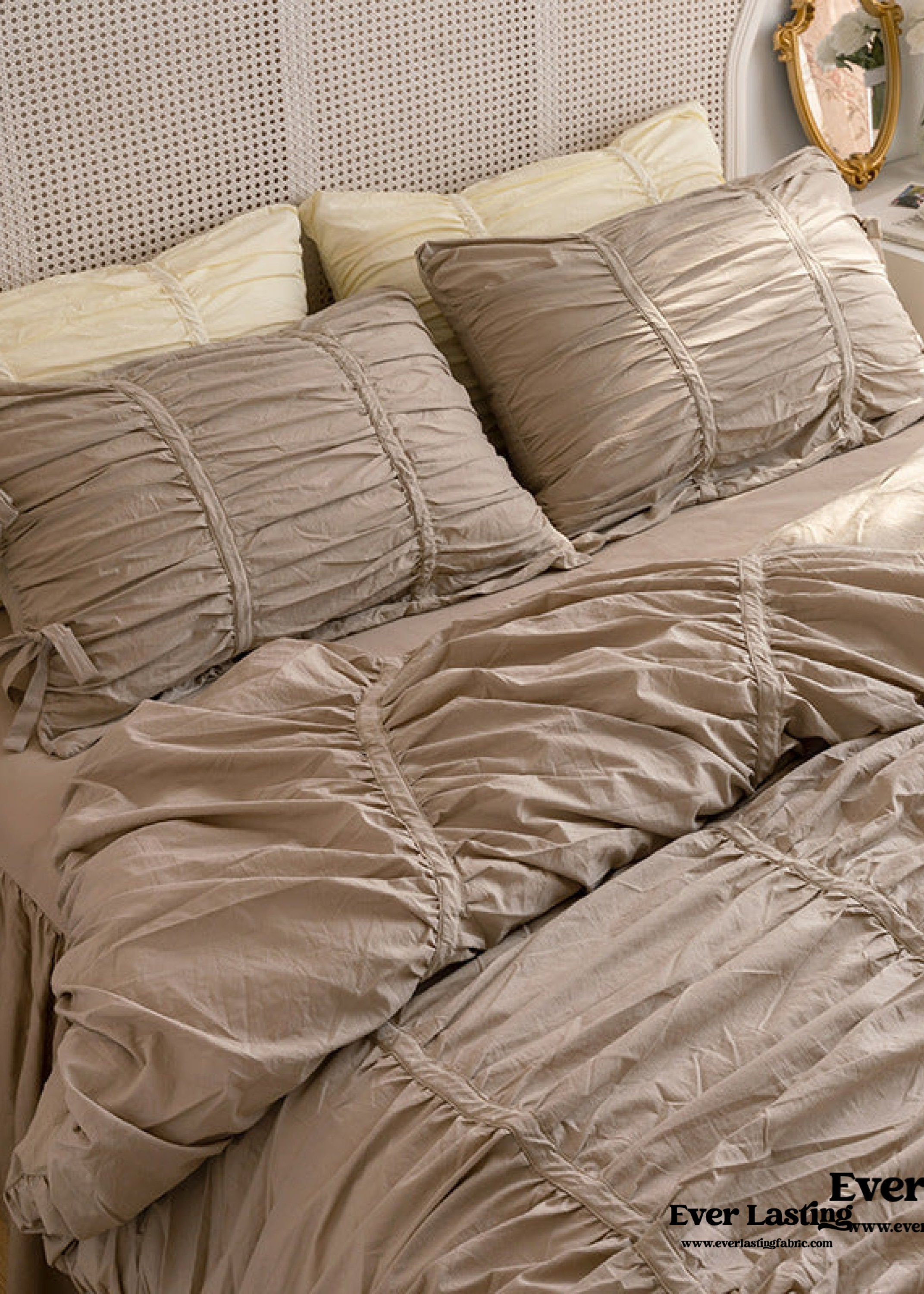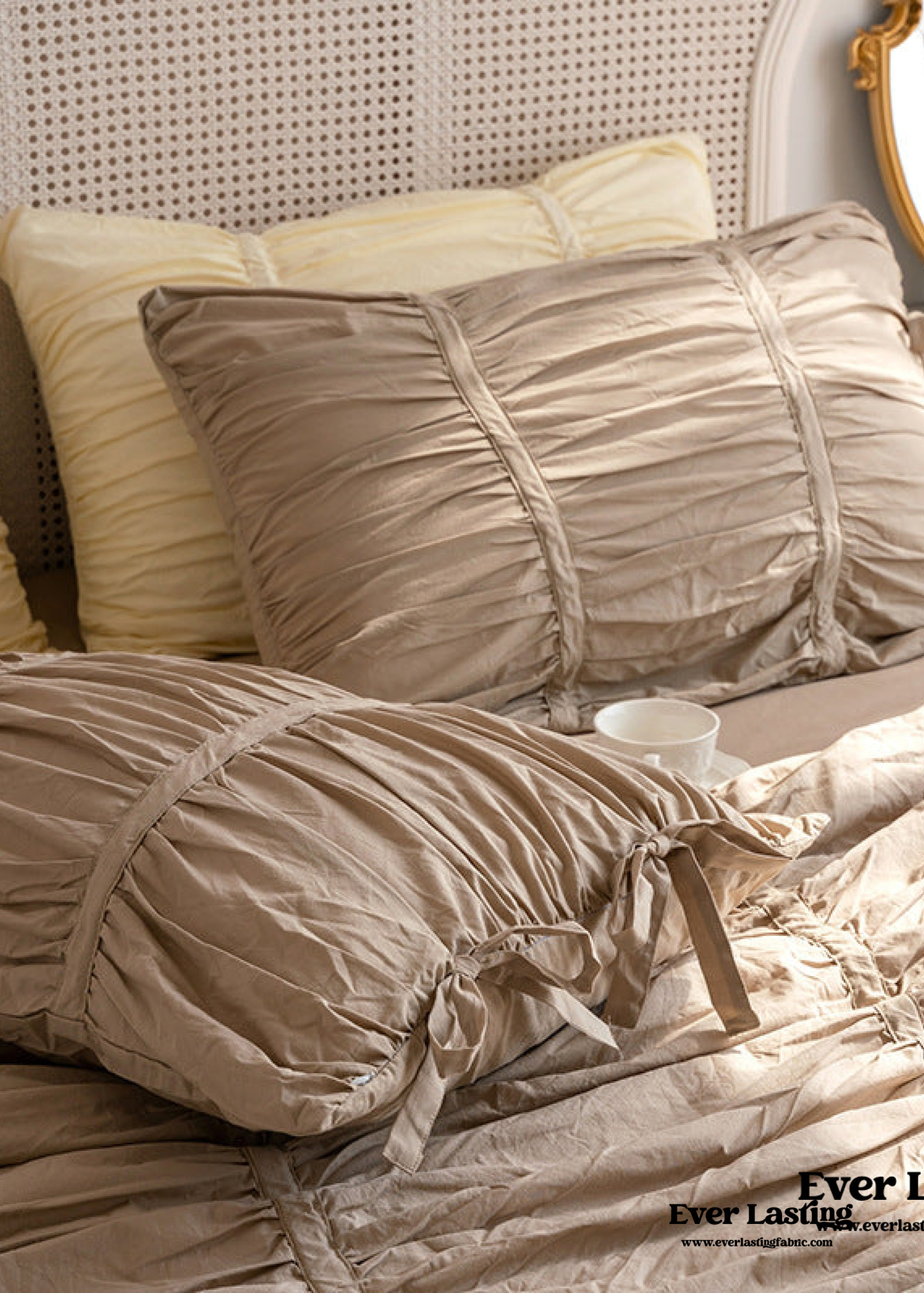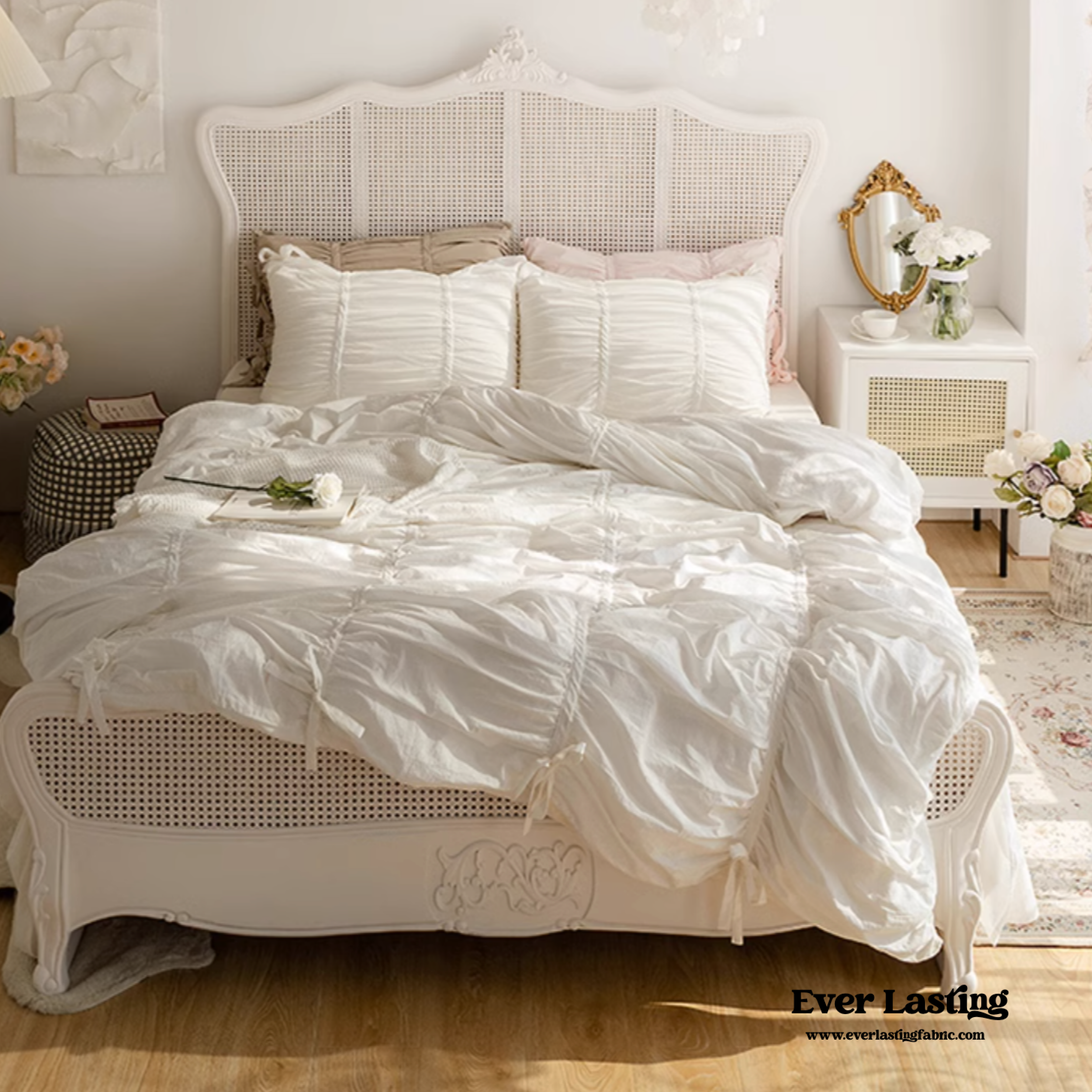 Inspired by cottage and soft coquette aesthetics. Magchic's CoquetteBedding Set creates the start to the perfect romance novel. Made with high quality 100% washed cotton fabric and featuring a unique stitching pattern that creates a captivating layer effect. this bedding set is designed to transport you to a world of luxurious comfort. Each set includes a tied pillowcase. adding an extra touch of charm and sophistication to your bedroom. Available in four neutral shades with textures that elevate your sleeping space with timeless elegance.