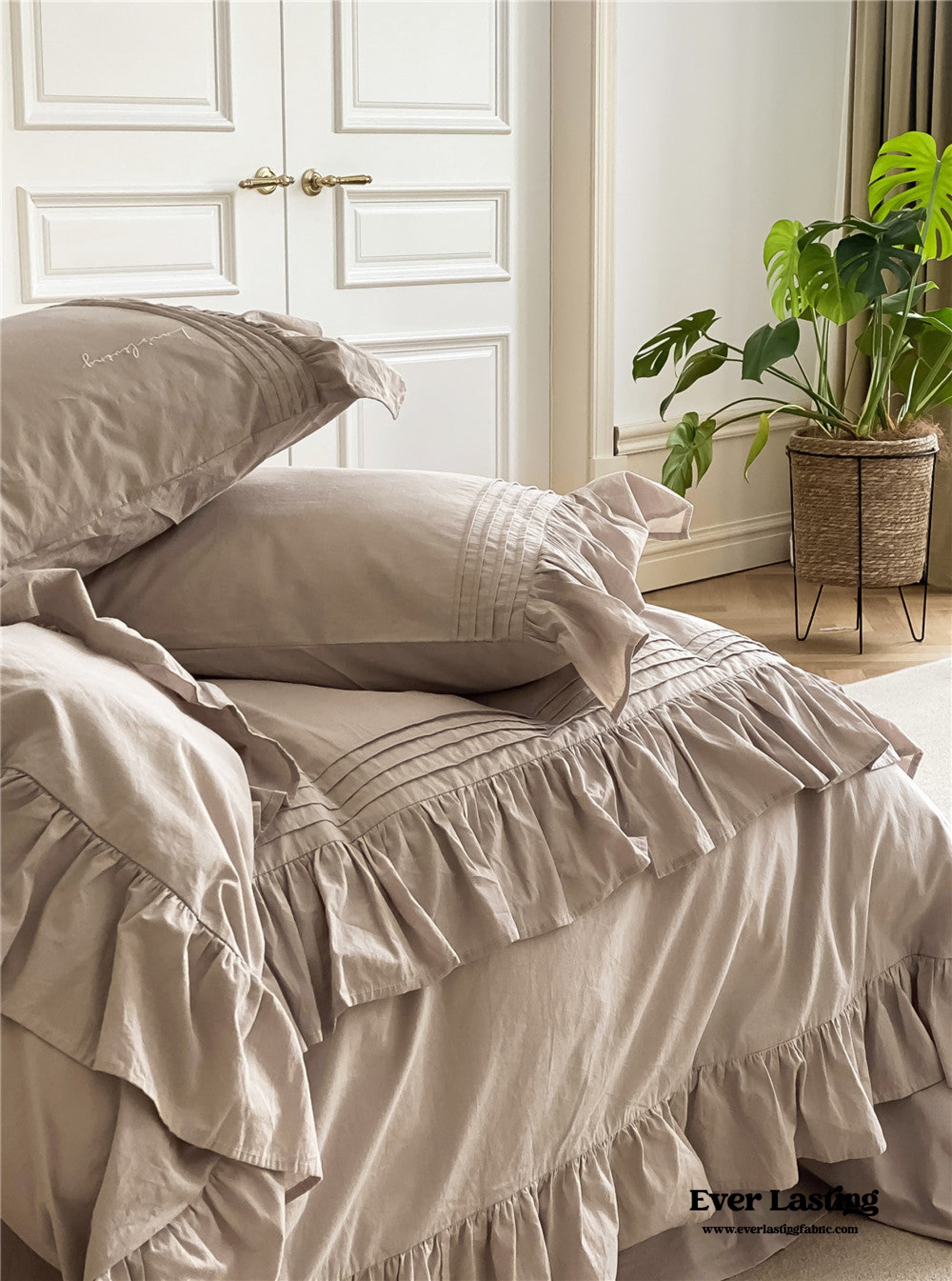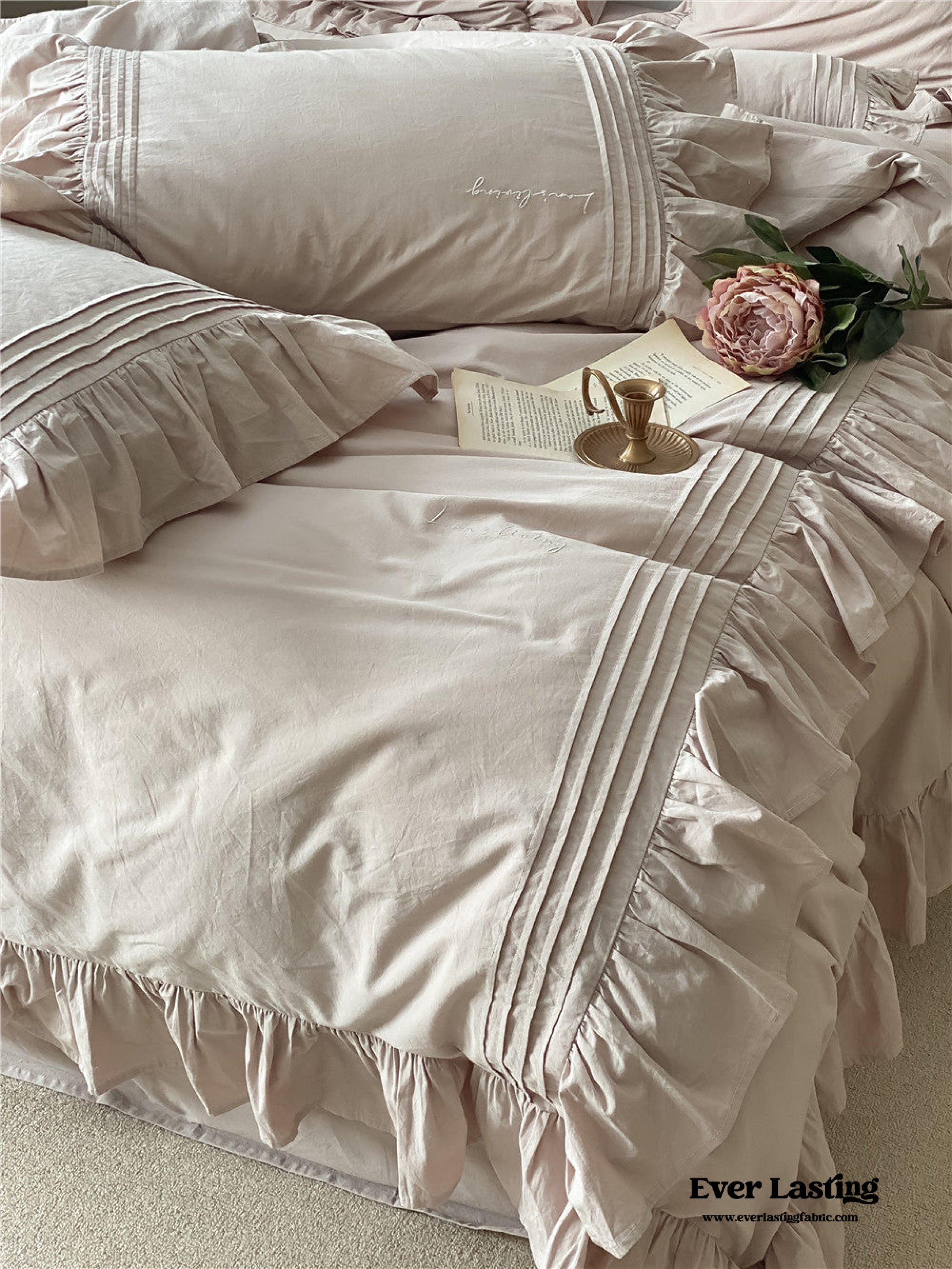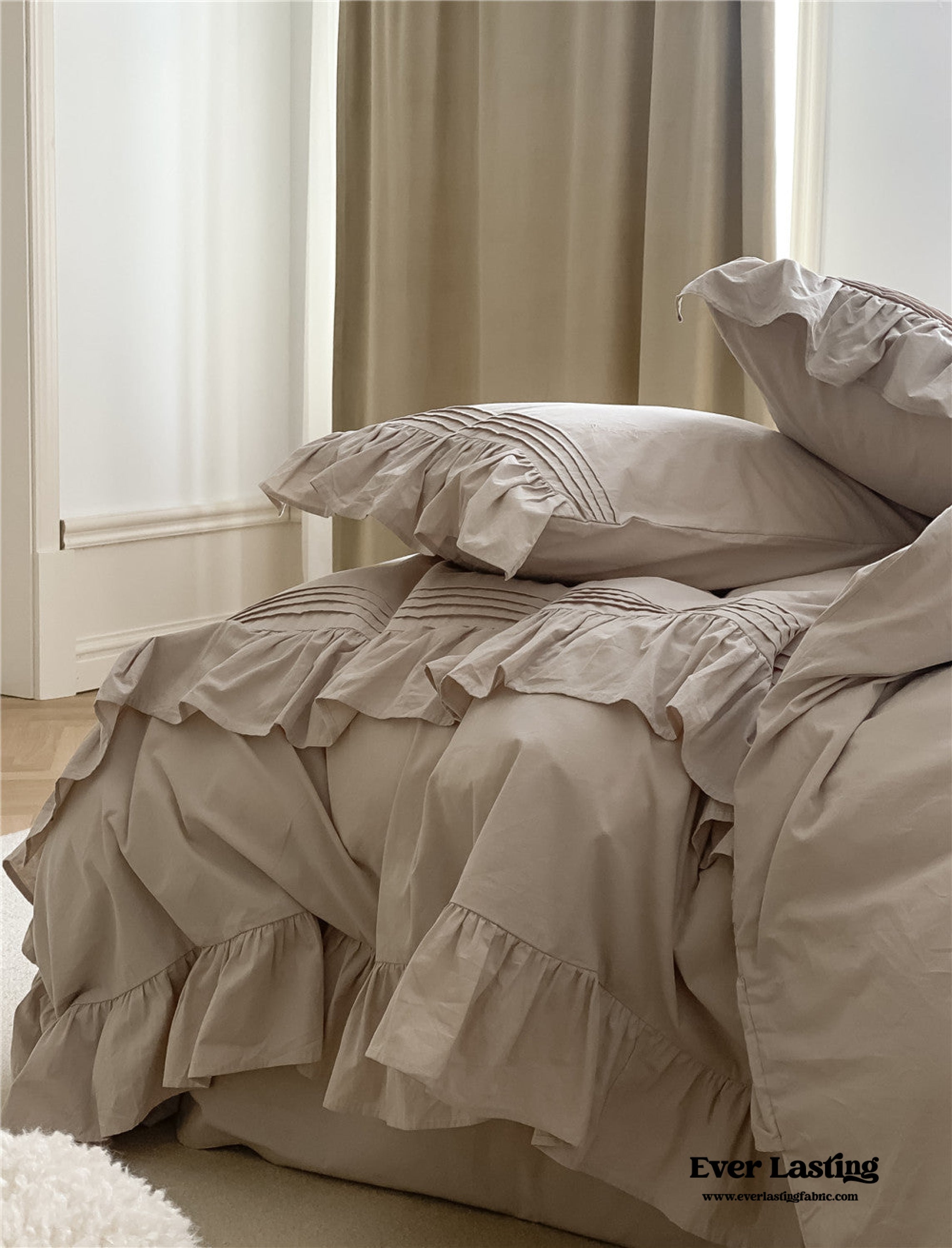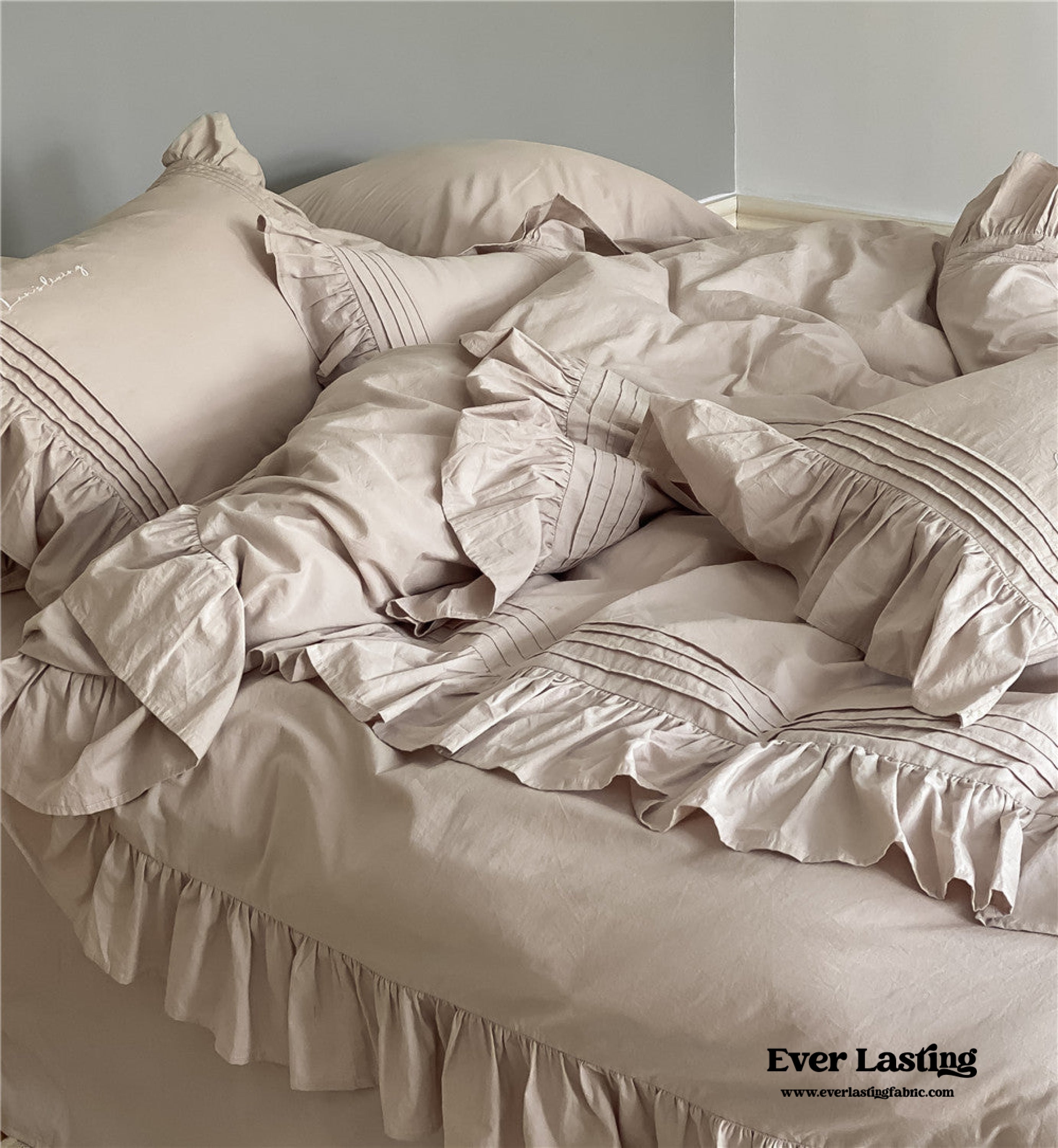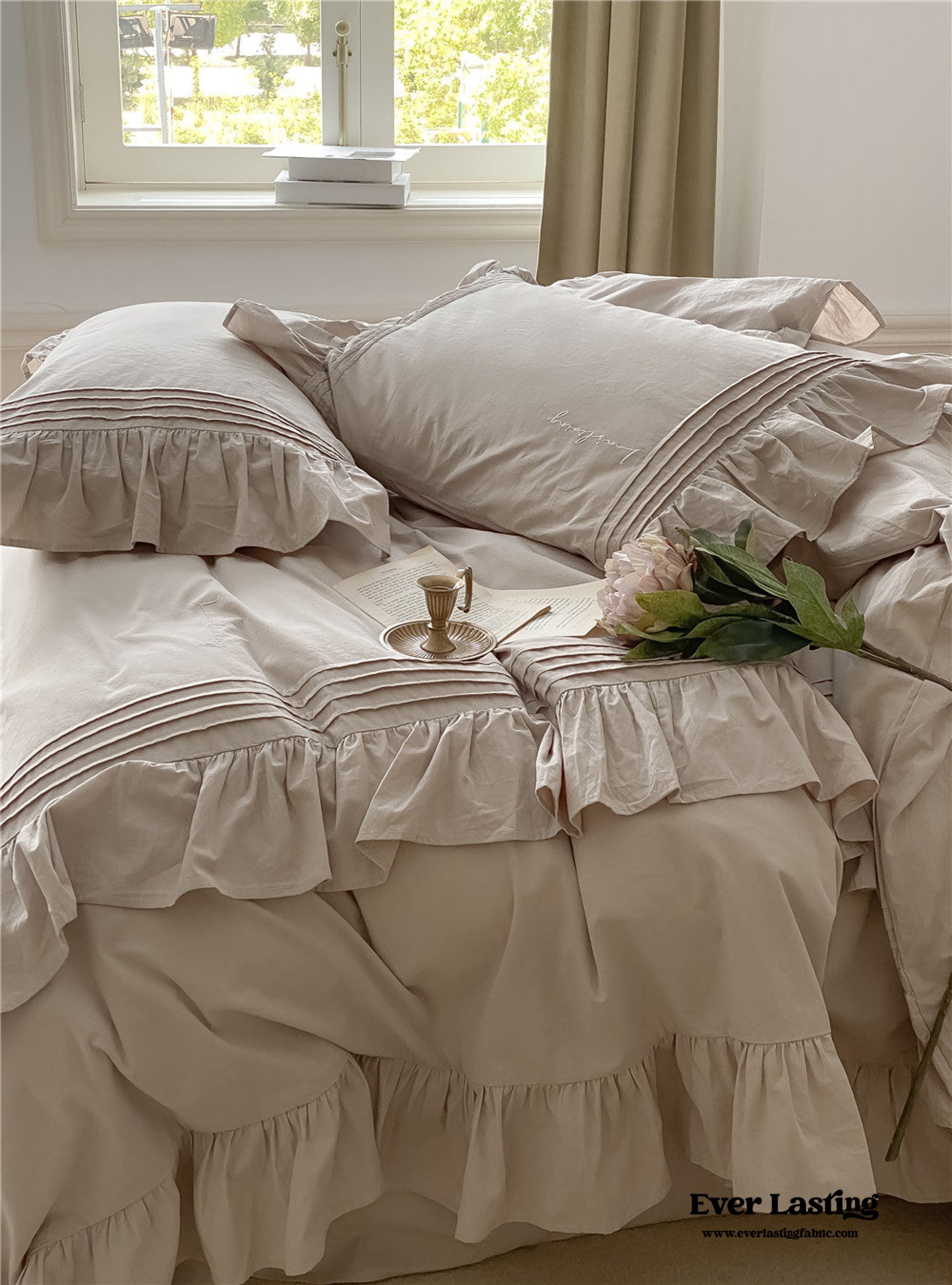 Coquette Ruffle Washed Cotton Bedding is now offered in a bundle. and all bundle sets come with a pre-included 10% to 20% discount! Enjoy savings on a complete set. including a duvet insert and pillow(s). along with our classic duvet cover. bed sheet. and pillowcase(s).