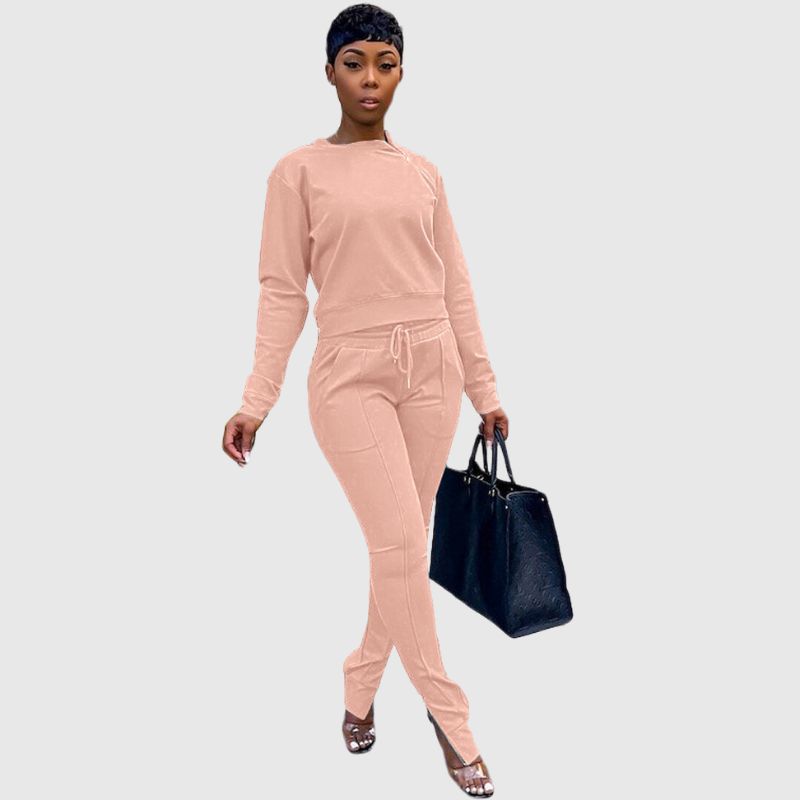 Características: Conjunto. Pantalón. Cuello redondo. Manga larga. Cintura alta. Decoración con cremallera. Color liso. Ajustado.