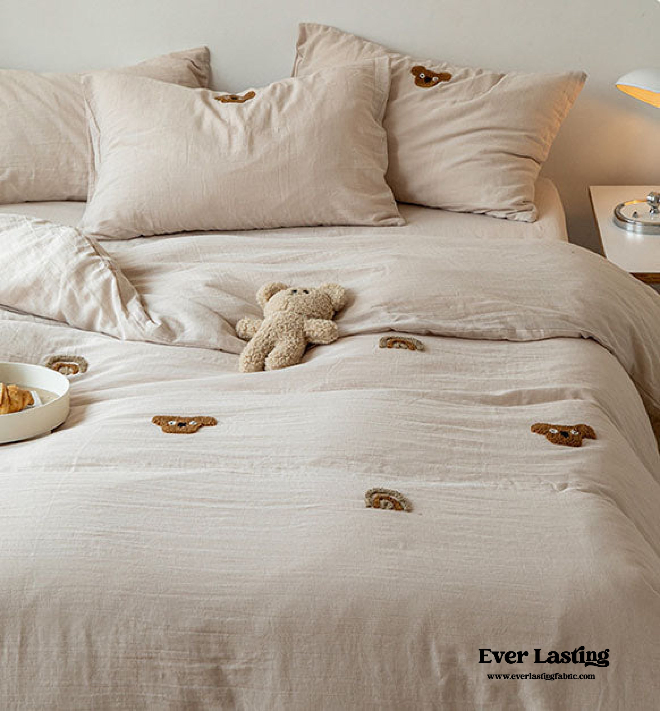 Double Layered Embroidered White Bedding Set - Happy Face
