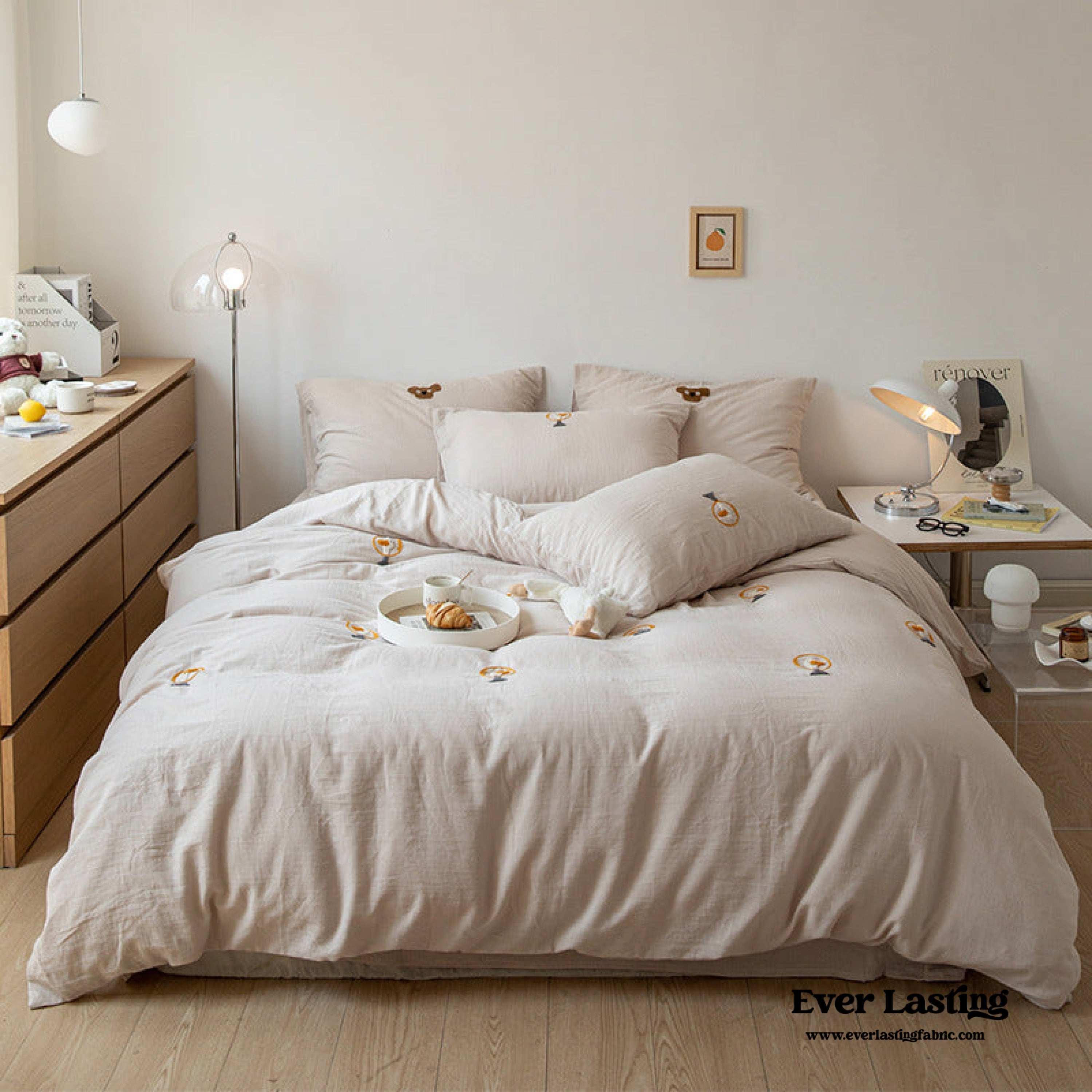 Each duvet cover is equipped with four corner ties and a hidden zipper to ensure your duvet insert stays securely in place all night. Elevate your sleep experience with this exceptional bedding set. where serene comfort blends seamlessly with the artistry of handmade embroidered prints in every detail.