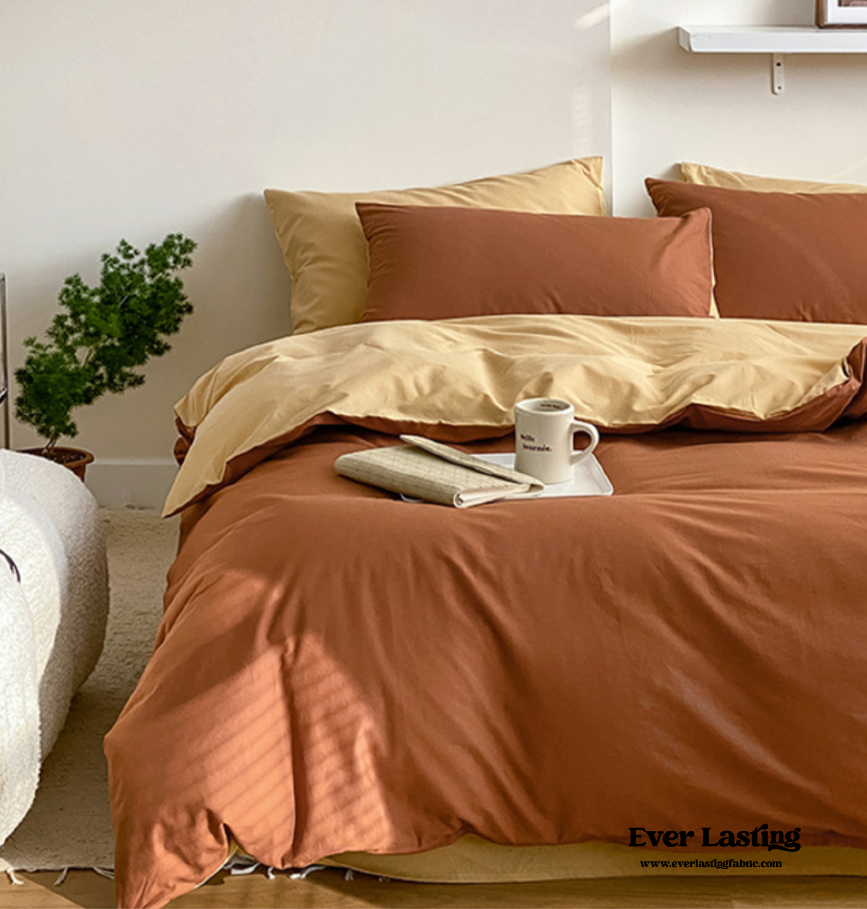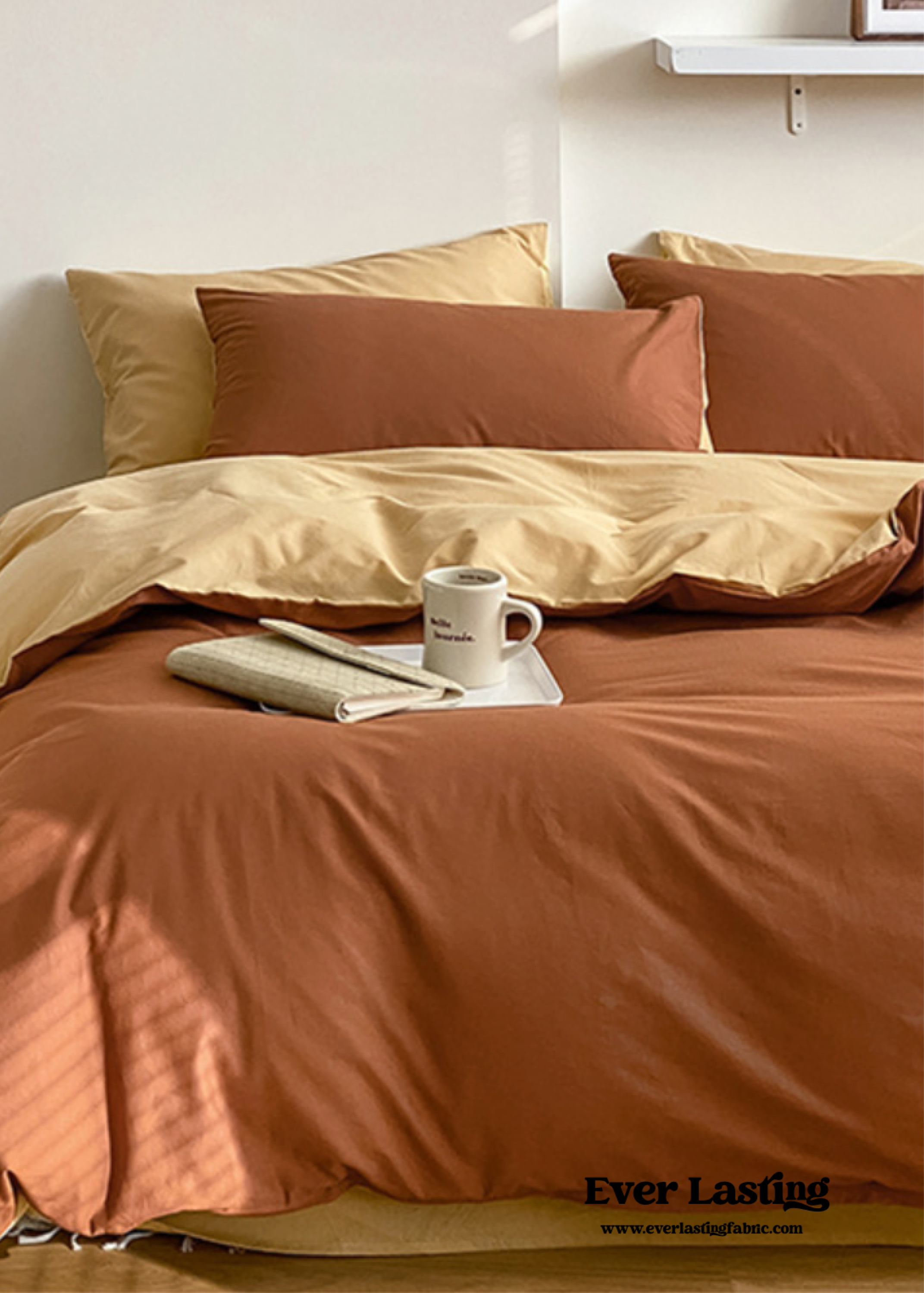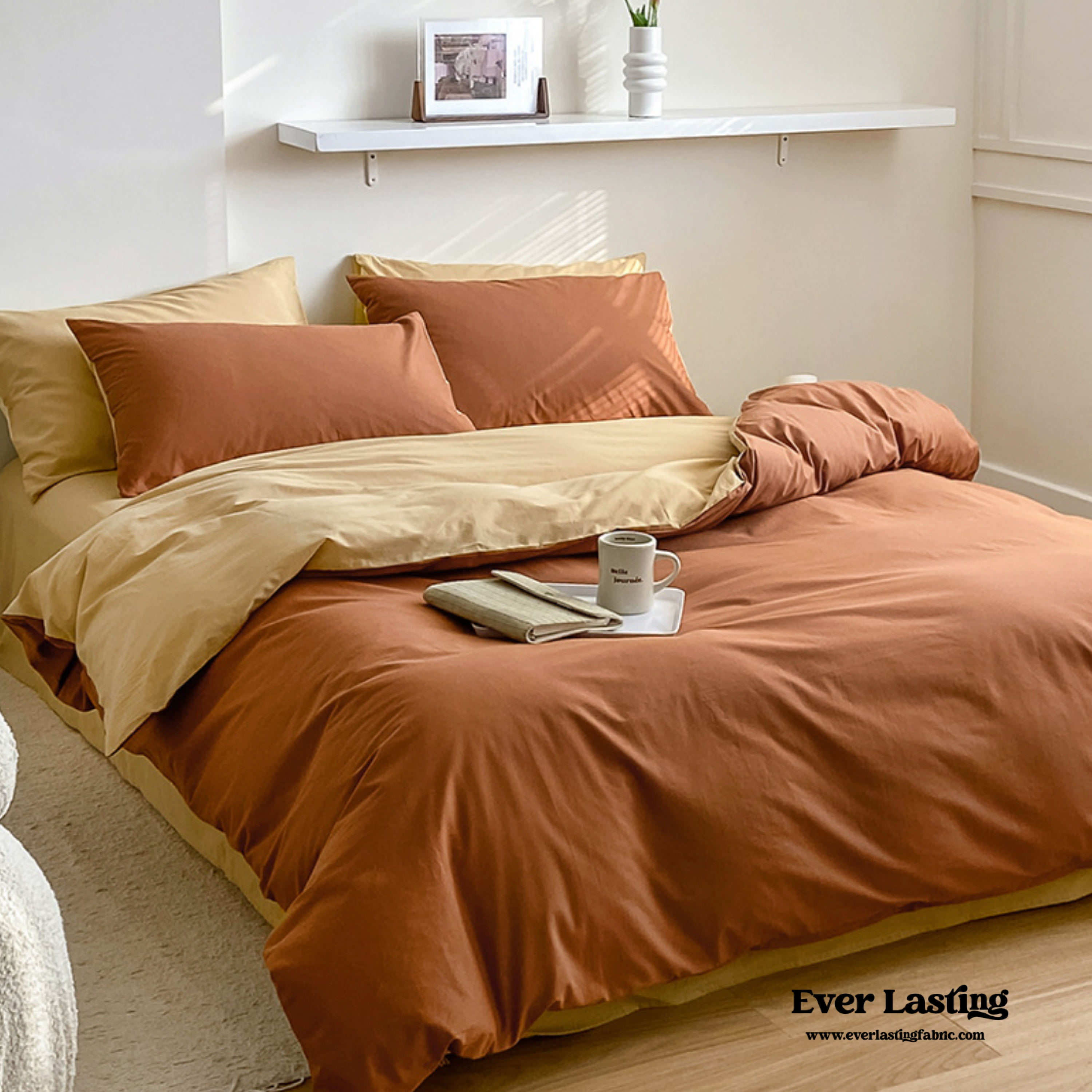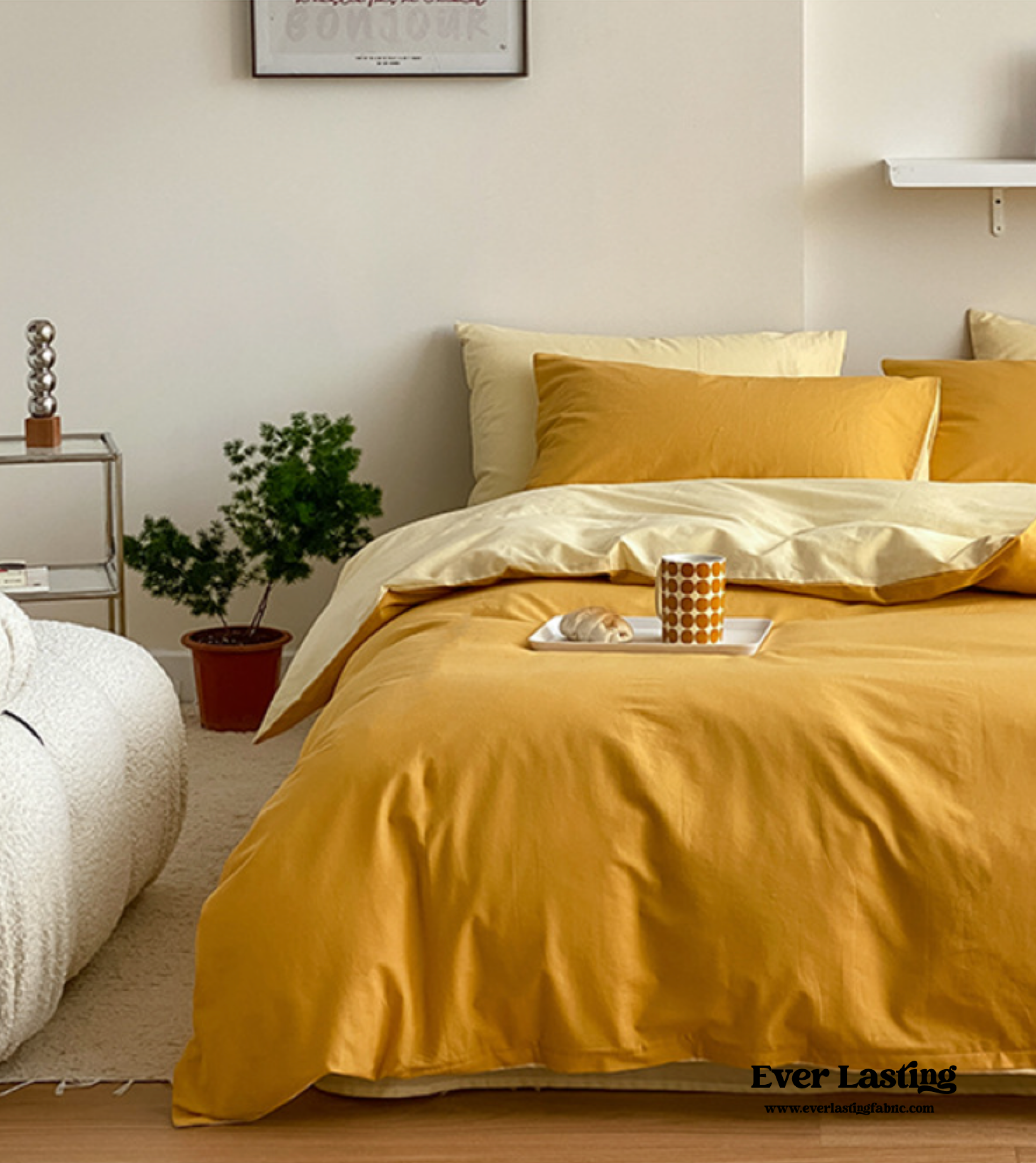 Indulge in the luxurious comfort and versatility of our Bold Duo Reversible Bedding Set. Crafted from premium washed cotton. this exquisite bedding ensemble promises a soft and breathable experience. ensuring you drift off into a restful night's sleep. The bold color palette adds a vibrant touch to your bedroom decor. while the timeless design complements any style. Hidden zippers in the duvet cover and pillowcase provide a seamless appearance and make changing the bedding a breeze. The duvet cover's corner ties keep your comforter securely in place. ensuring a tidy and snug fit throughout the night. With its reversible feature. you can effortlessly switch between two captivating looks. giving you endless options to refresh your bedding ensemble. Elevate your bedroom with our Bold Duo Reversible Bedding Set. where comfort. style. and practicality harmoniously merge to create a truly blissful retreat.