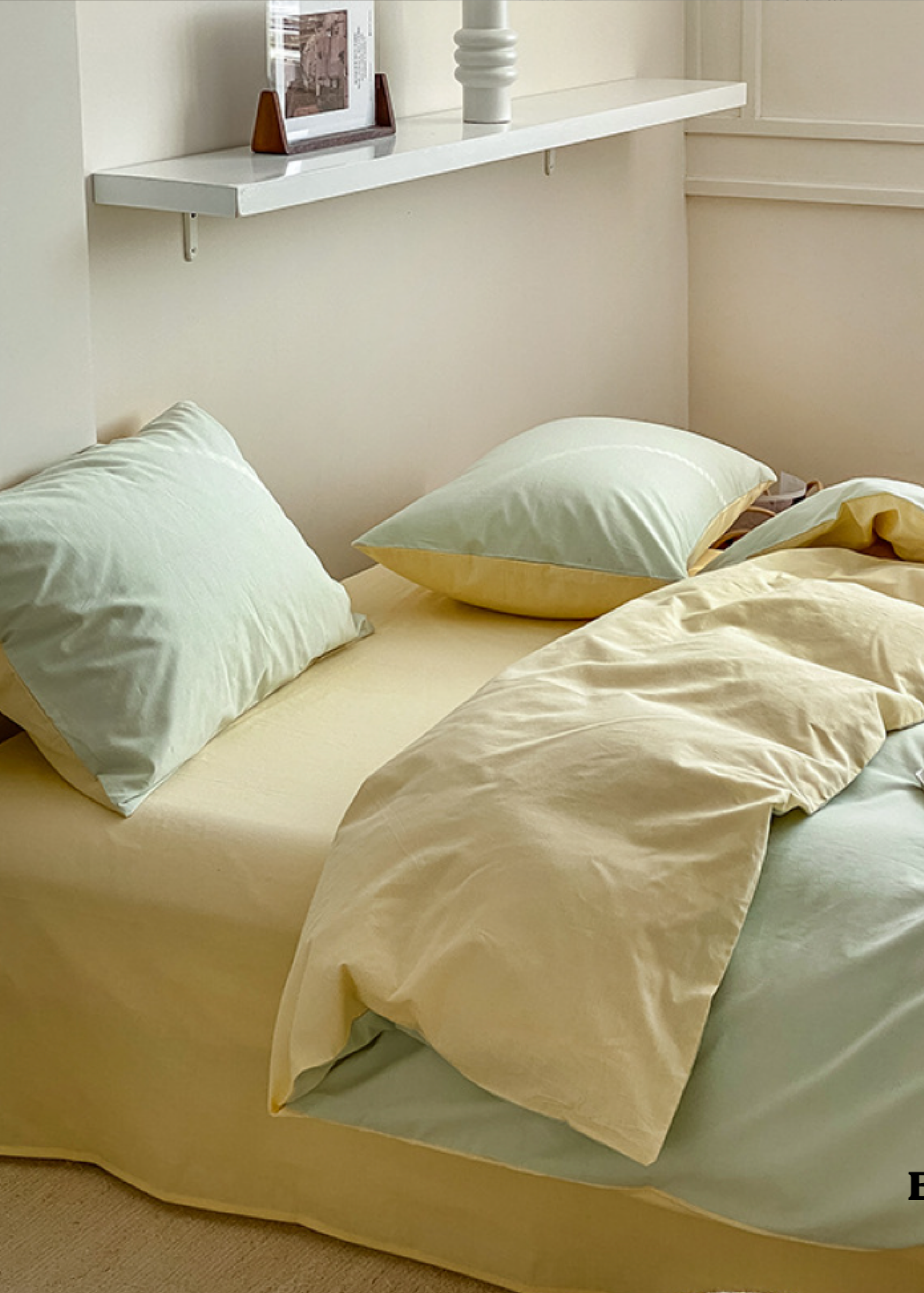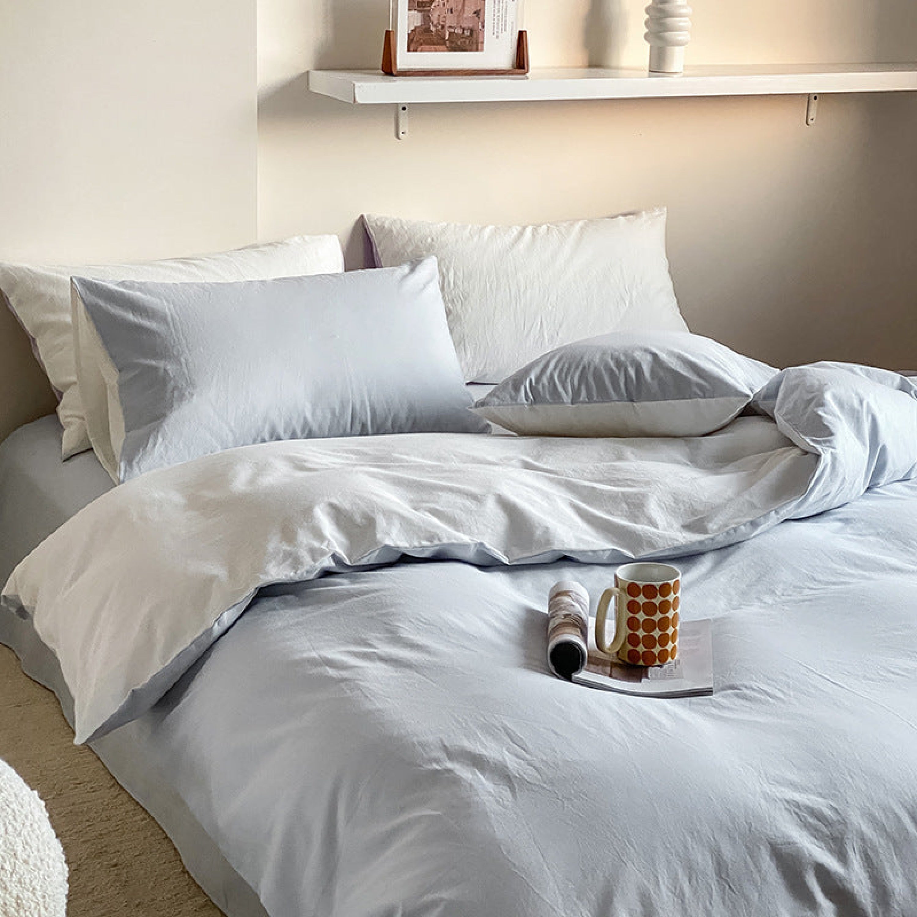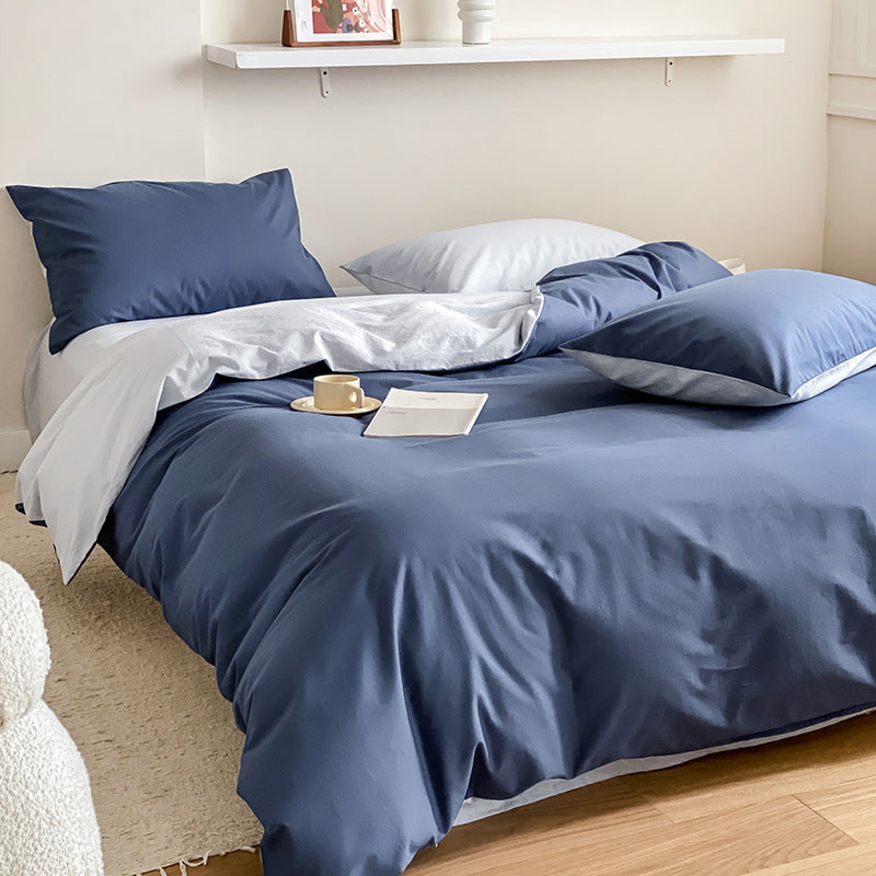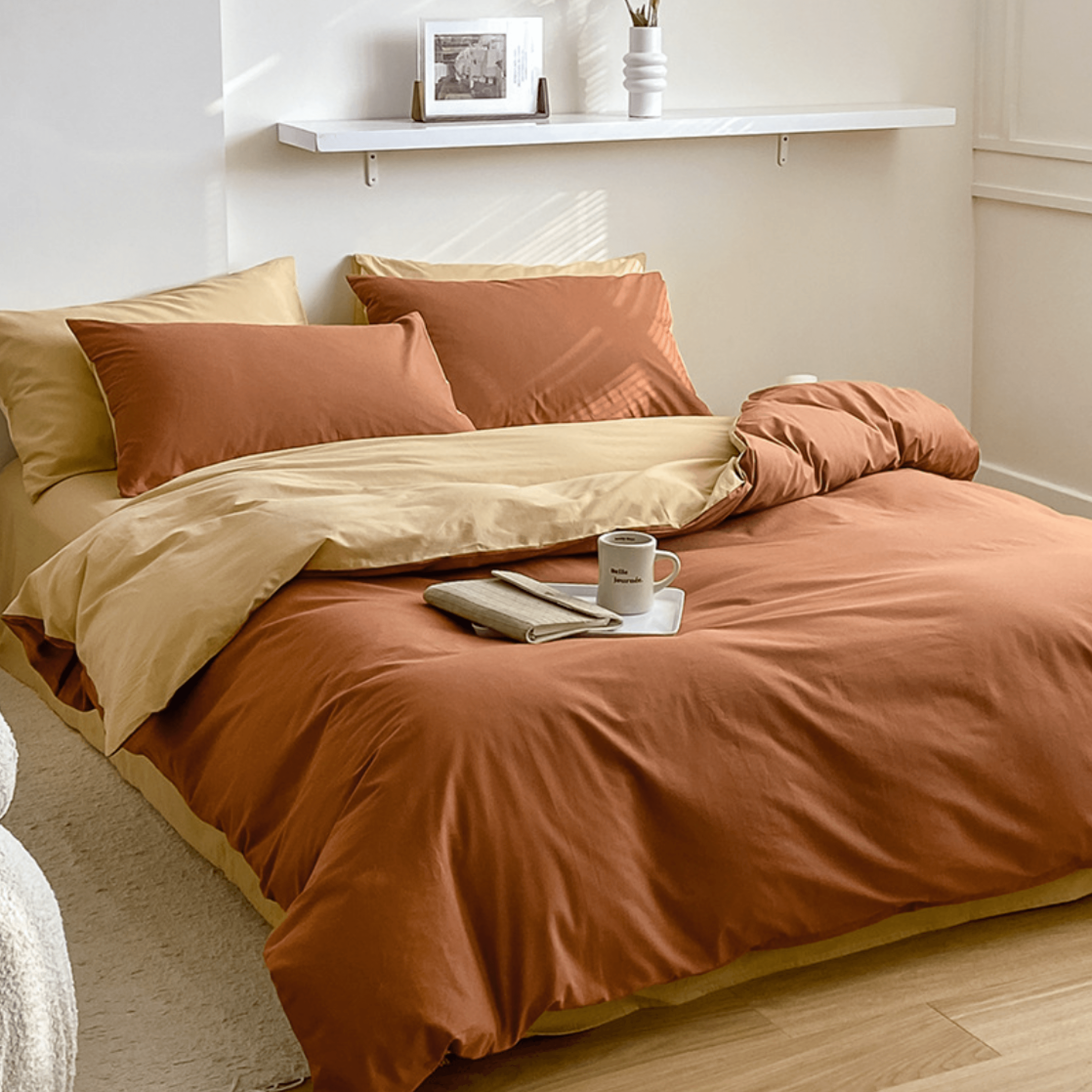 Indulge in the luxurious comfort and versatility of our Bold Duo Reversible Bedding Set. Crafted from premium washed cotton. this exquisite bedding ensemble promises a soft and breathable experience. ensuring you drift off into a restful night's sleep. The bold color palette adds a vibrant touch to your bedroom decor. while the timeless design complements any style. Hidden zippers in the duvet cover and pillowcase provide a seamless appearance and make changing the bedding a breeze. The duvet cover's corner ties keep your comforter securely in place. ensuring a tidy and snug fit throughout the night. With its reversible feature. you can effortlessly switch between two captivating looks. giving you endless options to refresh your bedding ensemble. Elevate your bedroom with our Bold Duo Reversible Bedding Set. where comfort. style. and practicality harmoniously merge to create a truly blissful retreat.