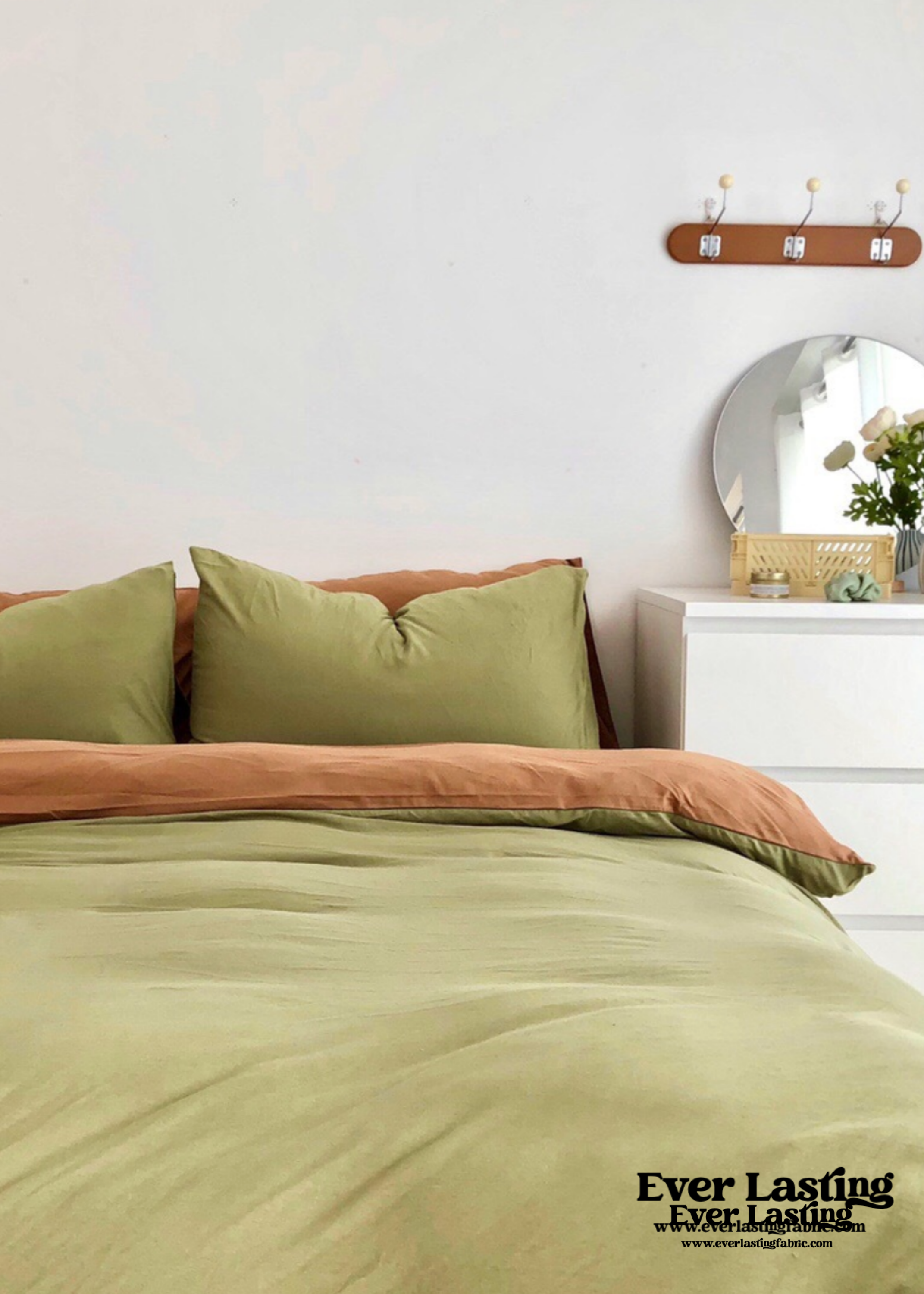 Cada funda nórdica de este juego viene en dos colores complementarios. Cambia de una gama de llamativos colores a otra mientras disfrutas de nuestro tejido 100 % algodón, ligero y suave al tacto. Similar al tejido de punto jersey, con una ligera elasticidad que permite que tu ropa de cama se adapte a ti y se mueva contigo durante toda la noche.