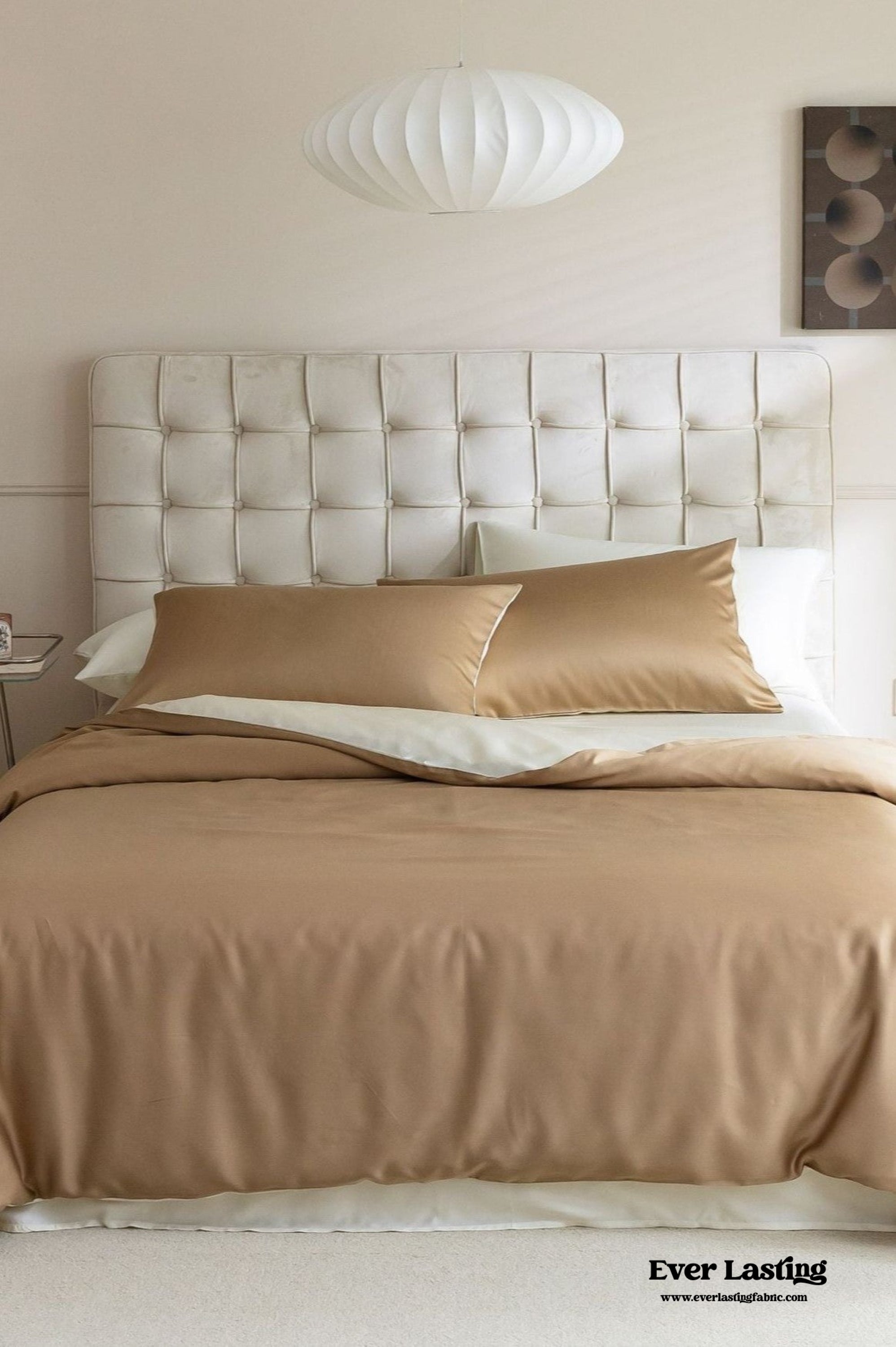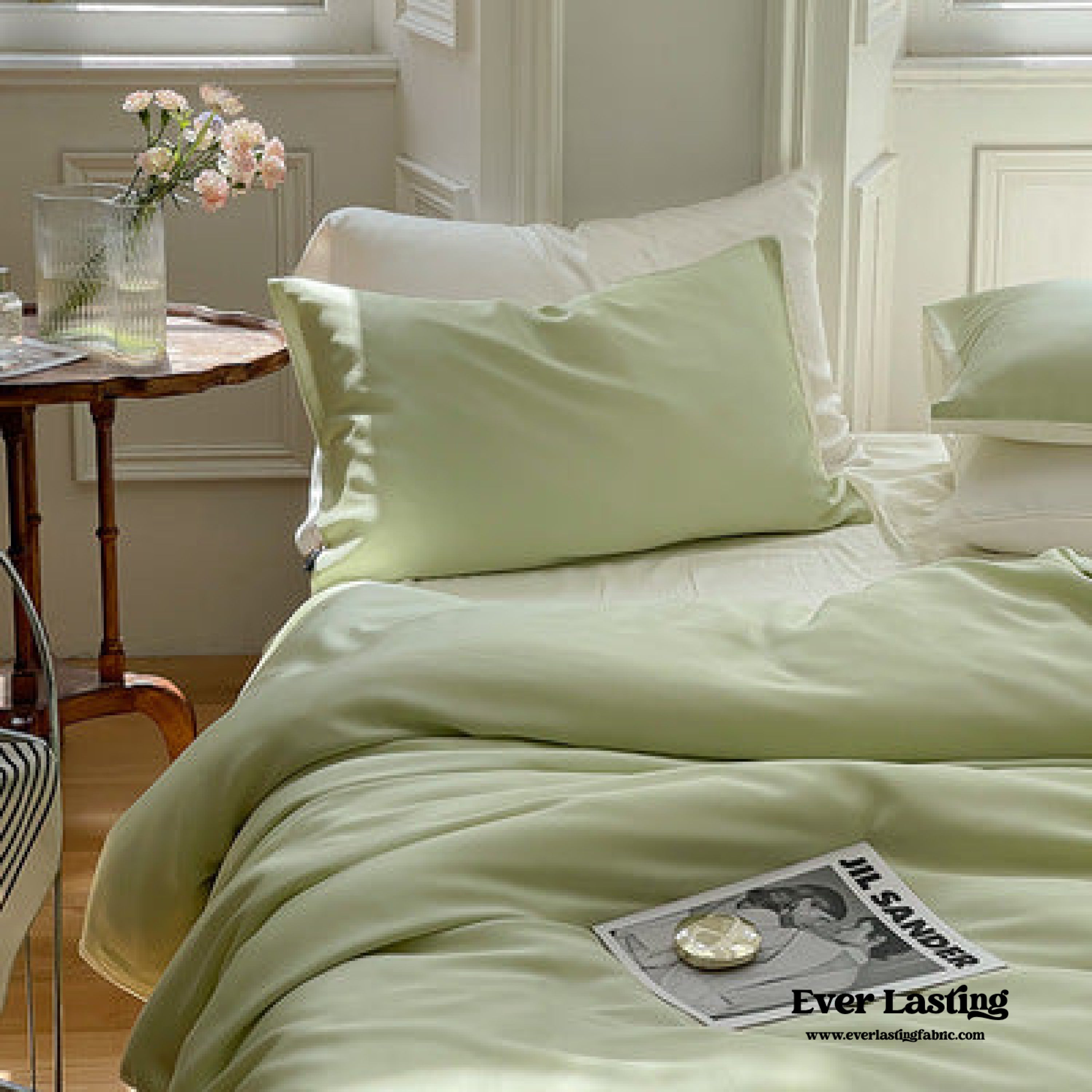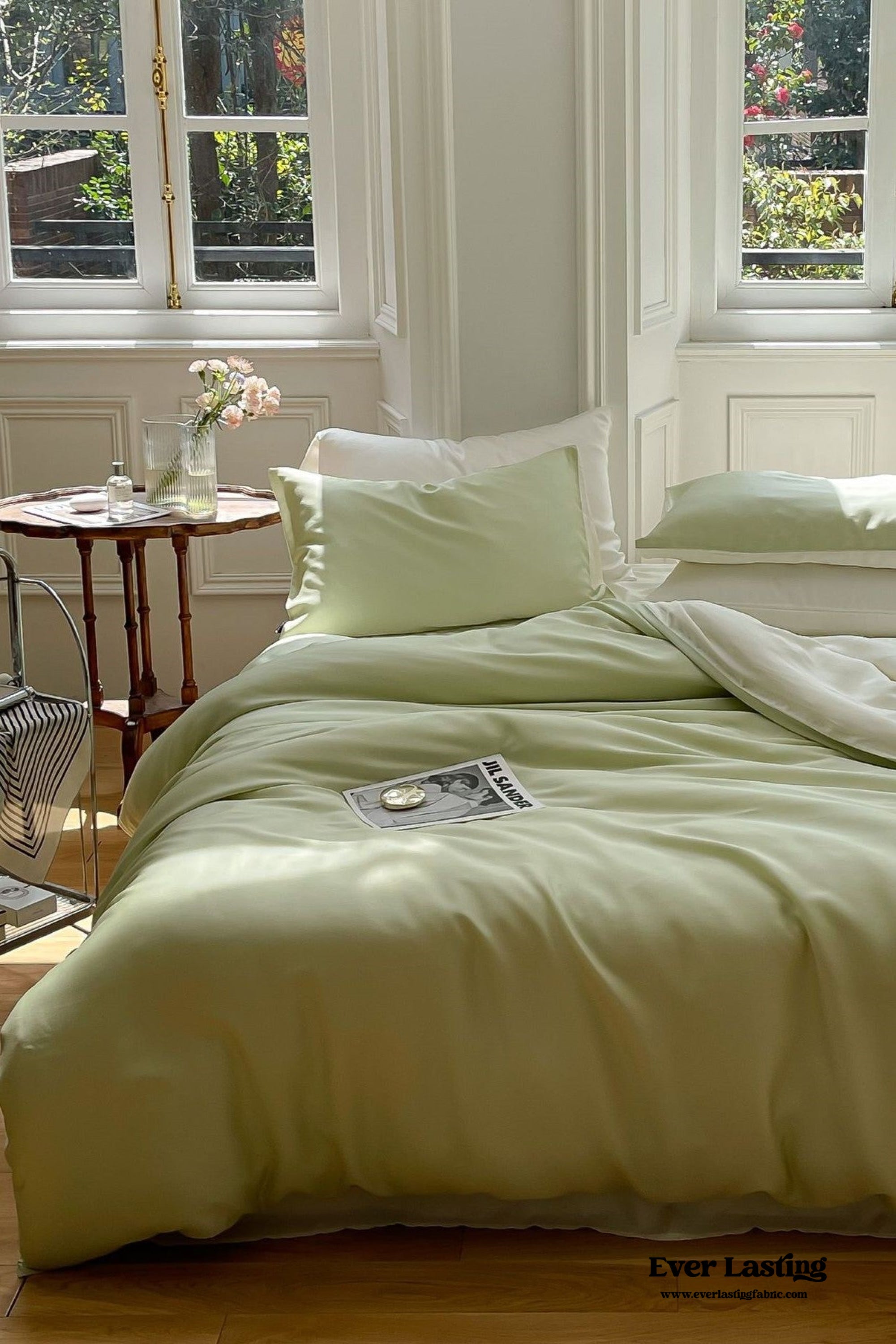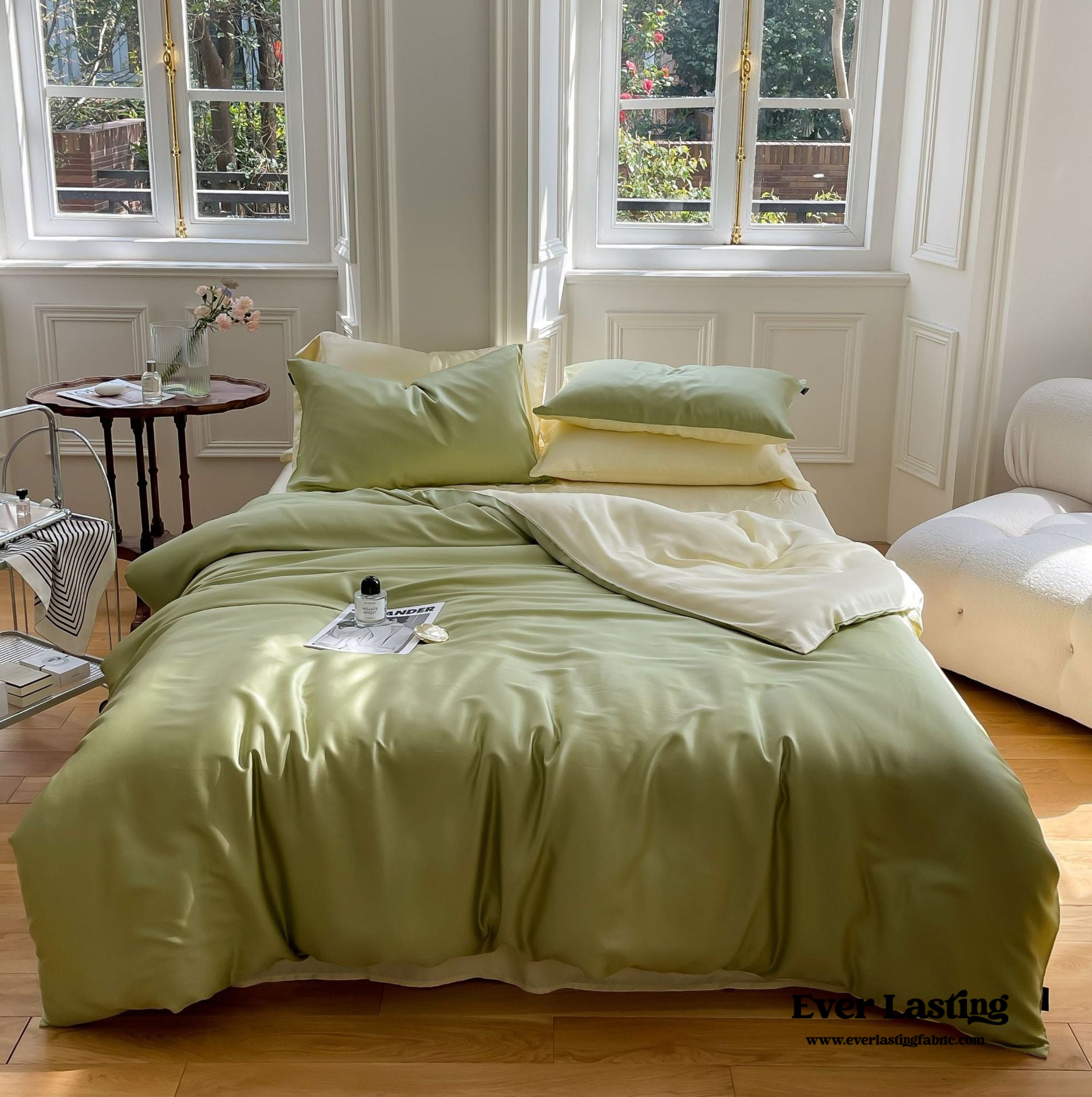Introducing our DUO Reversible Pastel Silky Tencel Bedding Set. a harmonious blend of versatility and luxury. This set offers two exquisite looks in one. with a reversible design that lets you choose between soft pastel shades for a fresh and airy feel. Crafted from the finest Tencel fabric. it promises a silky-smooth touch and exceptional breathability for a comfortable night's sleep. Each duvet cover features four corner ties and a hidden zipper. ensuring your duvet insert stays securely in place all night. Elevate your sleep experience with this sophisticated and reversible bedding set. where versatility meets the promise of serene and silky comfort.