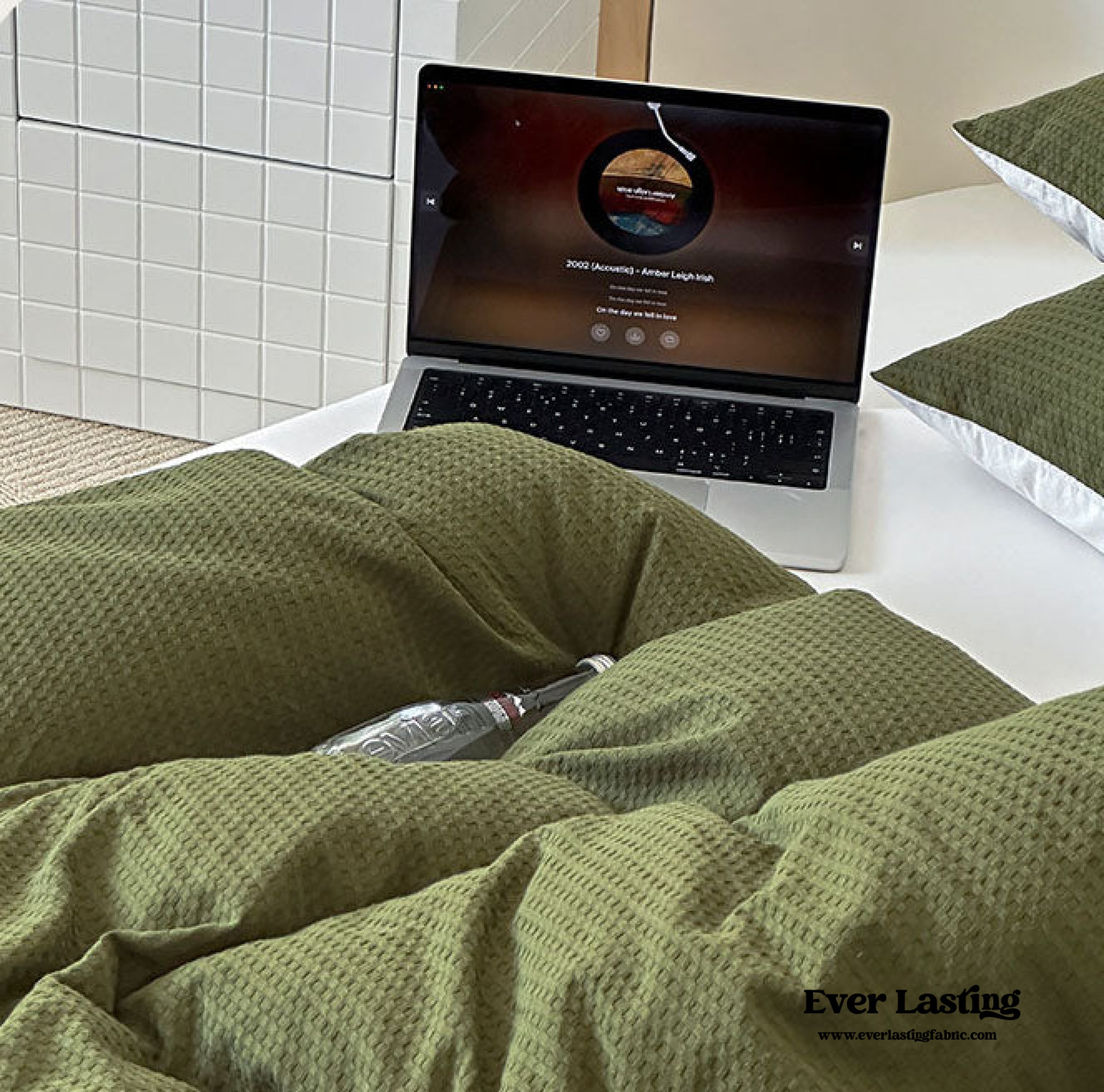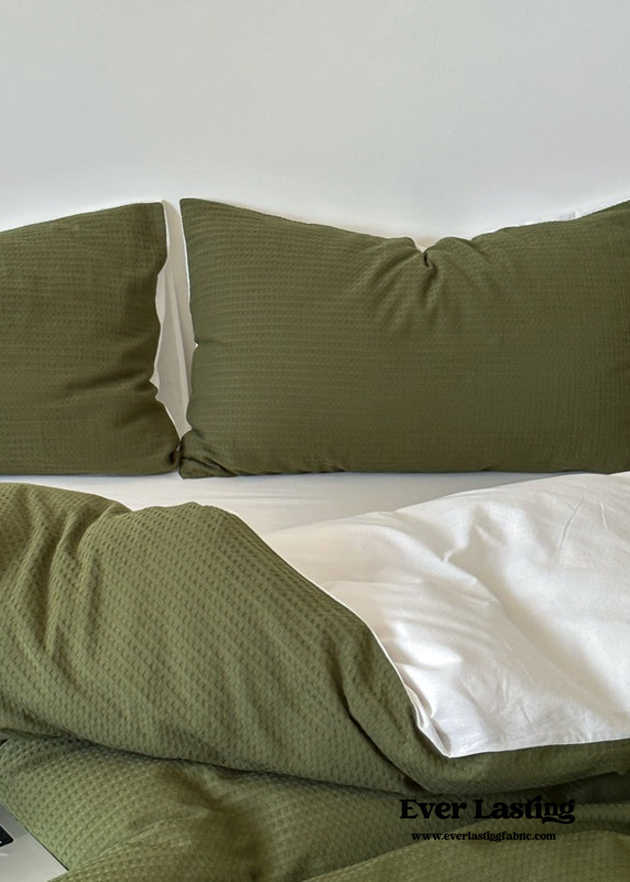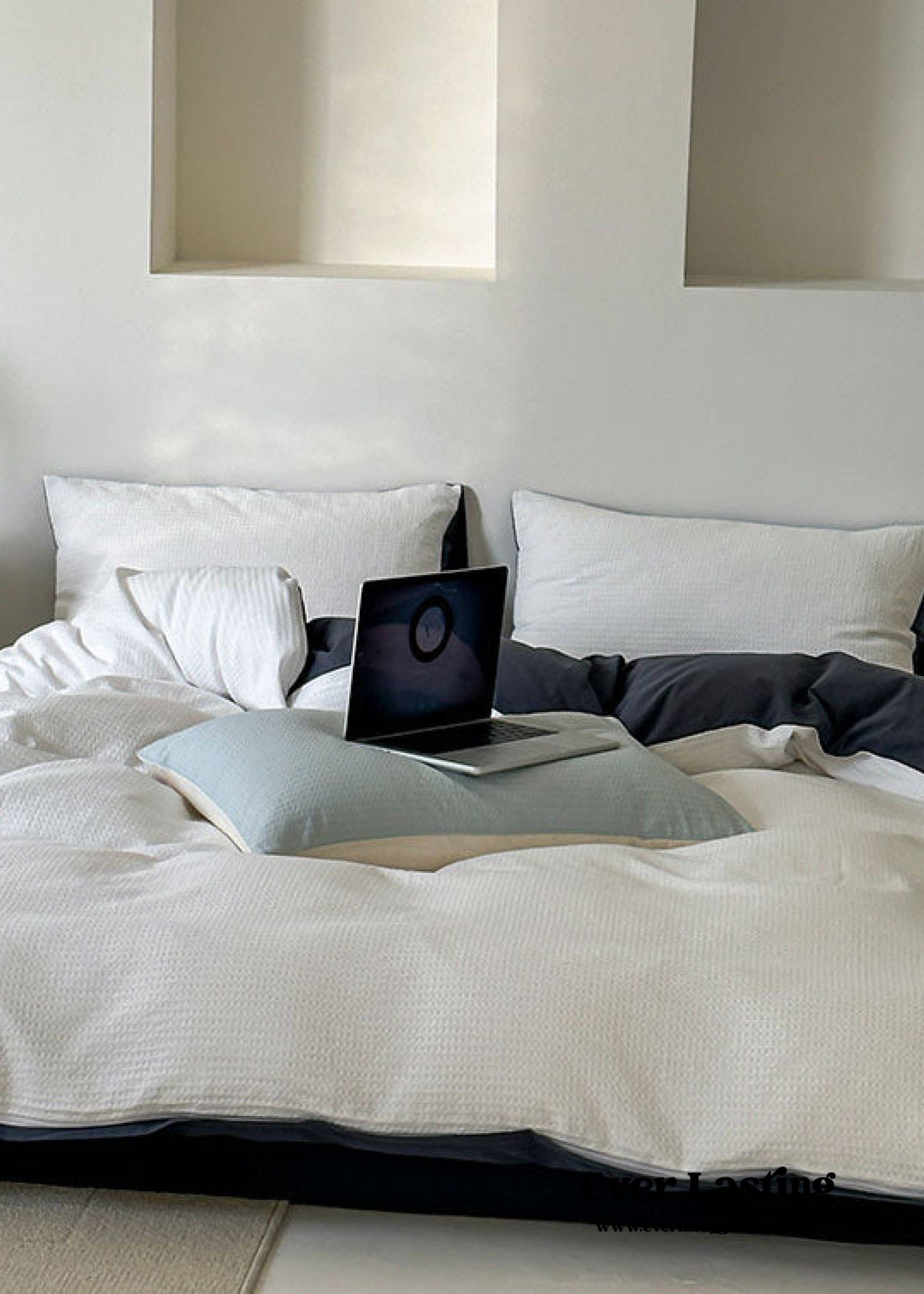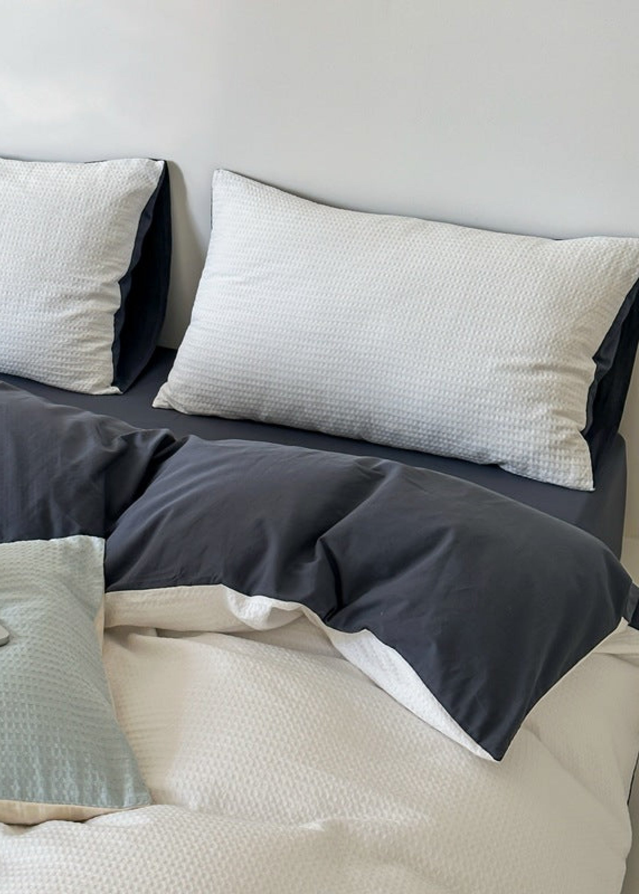 Elevate your sleep sanctuary with our Duo Waffle Bedding Set. This set is a harmonious blend of style and comfort. featuring a sophisticated waffle texture that adds depth and character to your sleep space. Each duvet cover features four corner ties and a hidden zipper. ensuring your duvet insert stays securely in place all night. Crafted for both aesthetics and coziness. it's a versatile choice that turns your bedroom into a haven of modern elegance and relaxation. Experience the tactile luxury of waffle-textured bedding and make every night a dreamy escape into comfort and style.
