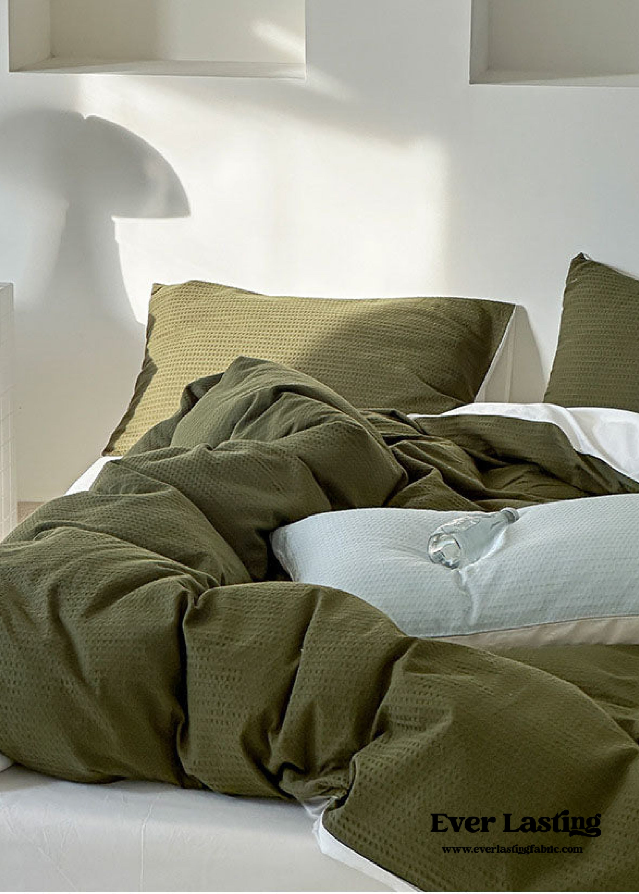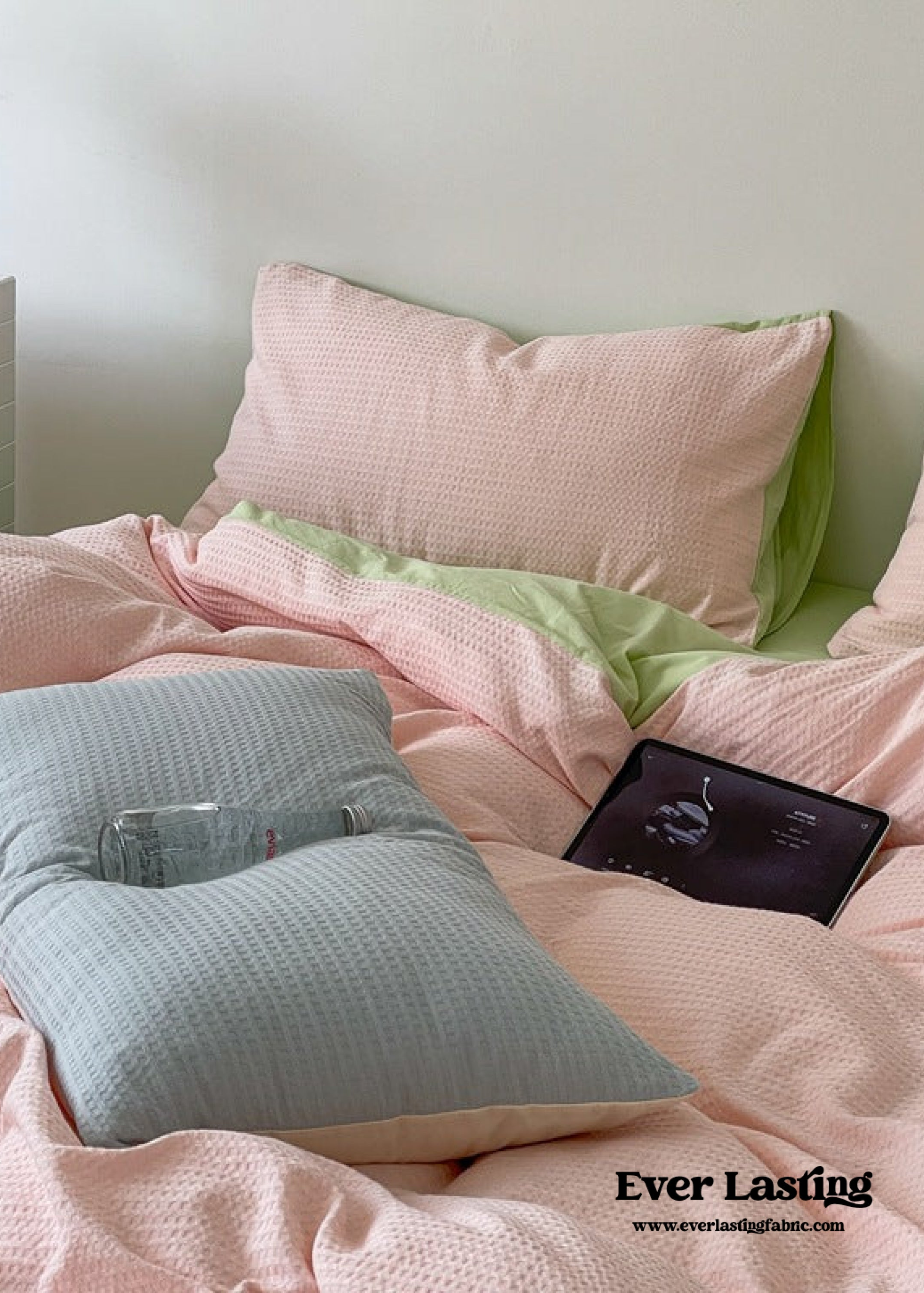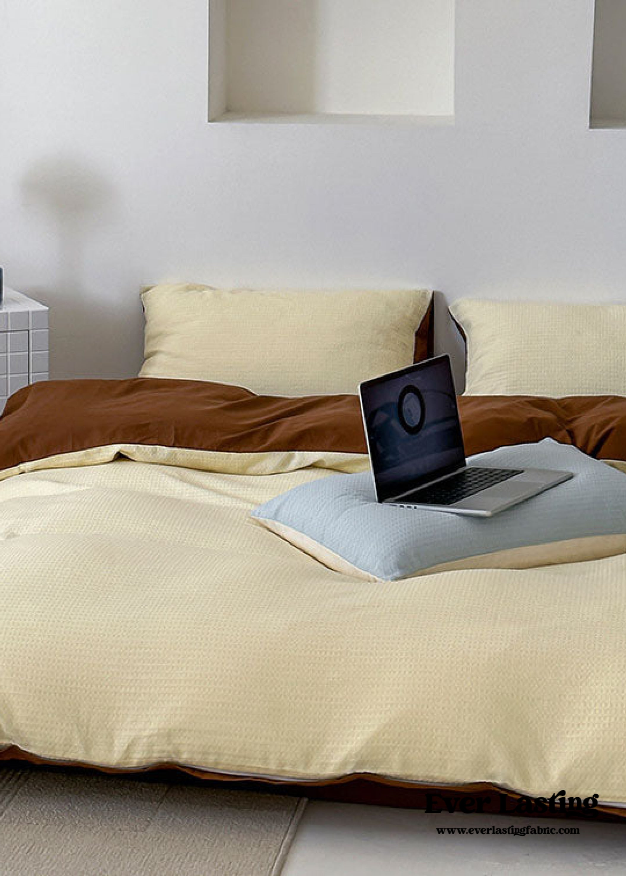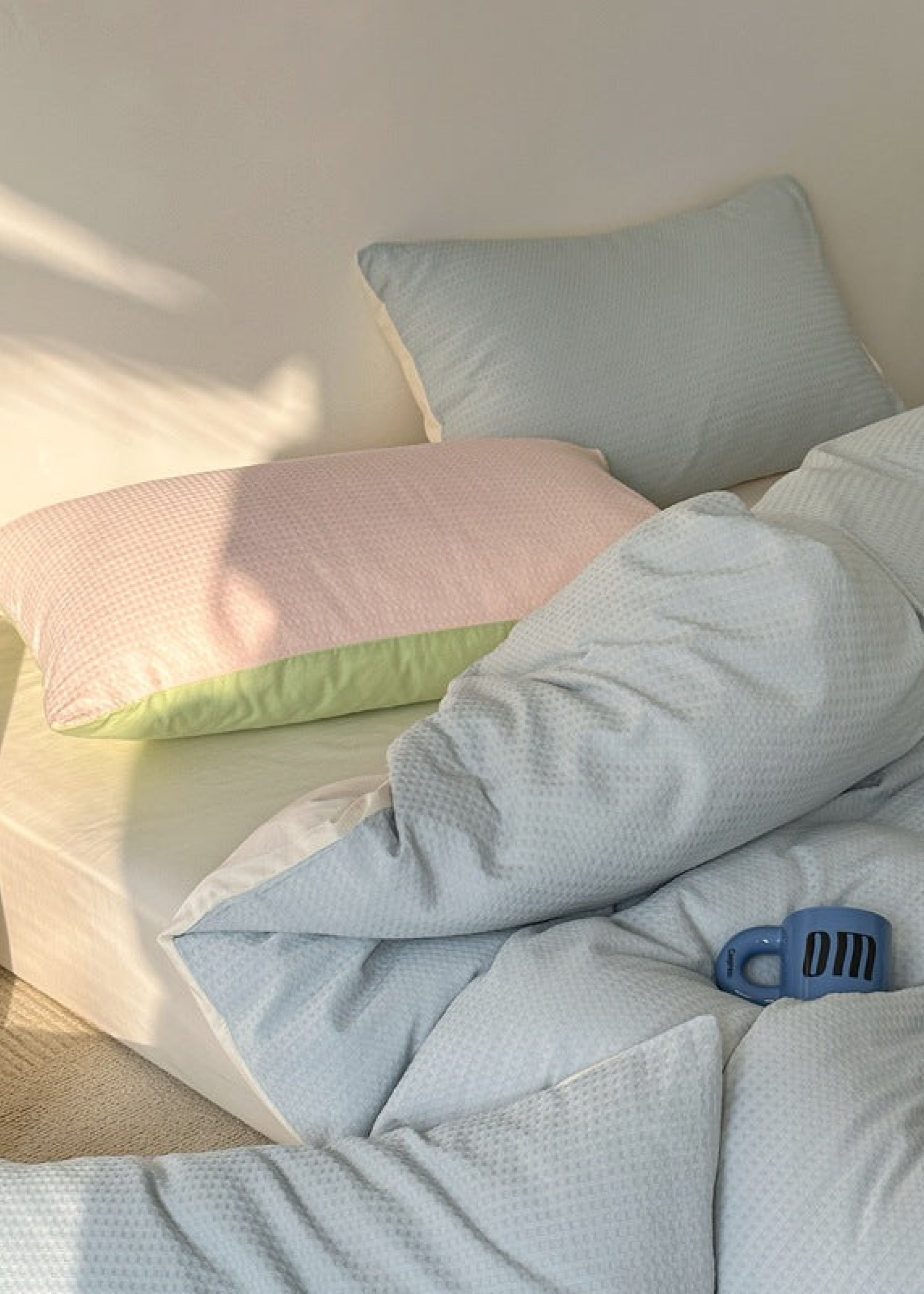 Elevate your sleep sanctuary with our Duo Waffle Bedding Set. This set is a harmonious blend of style and comfort. featuring a sophisticated waffle texture that adds depth and character to your sleep space. Each duvet cover features four corner ties and a hidden zipper. ensuring your duvet insert stays securely in place all night. Crafted for both aesthetics and coziness. it's a versatile choice that turns your bedroom into a haven of modern elegance and relaxation. Experience the tactile luxury of waffle-textured bedding and make every night a dreamy escape into comfort and style.