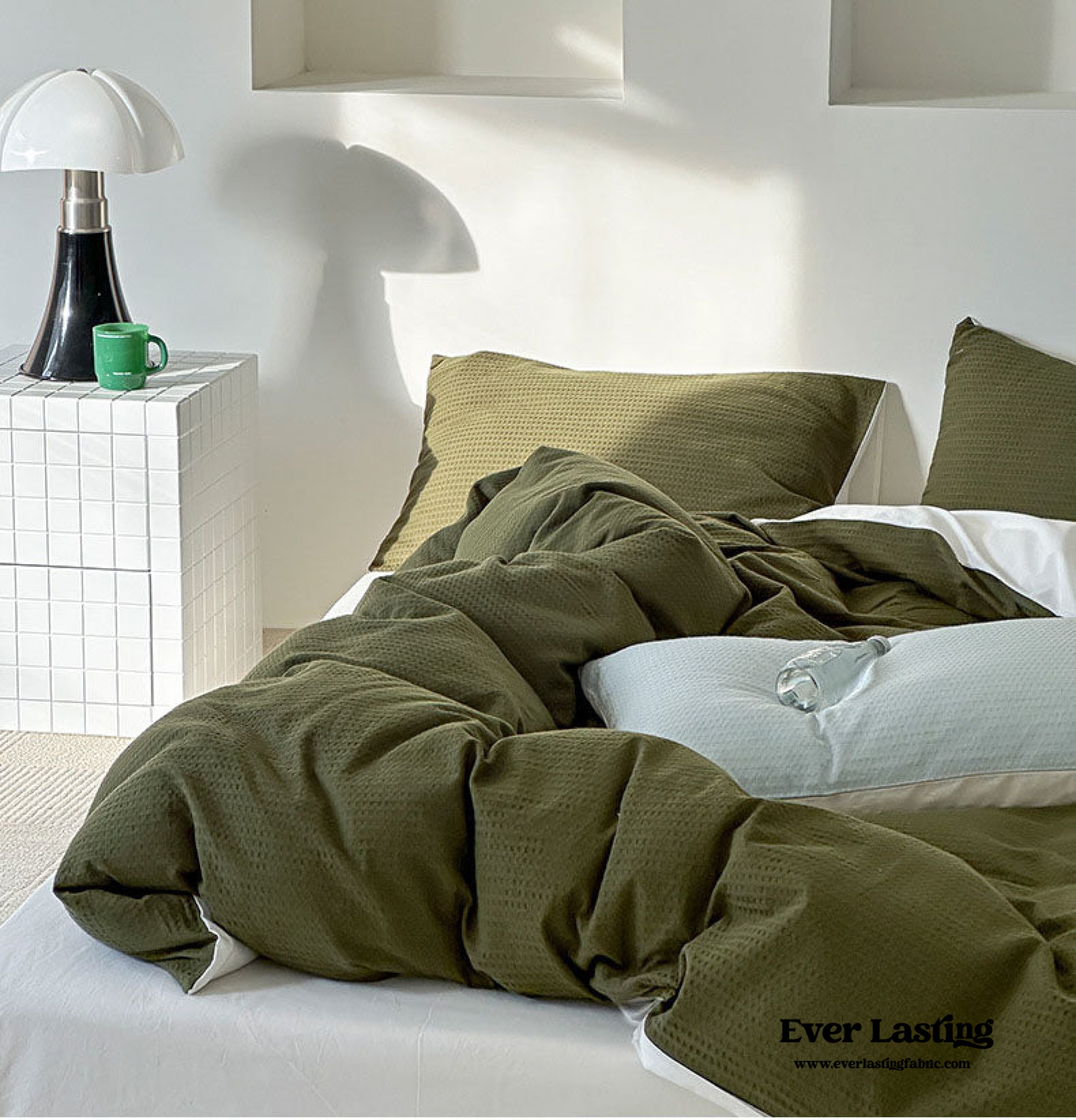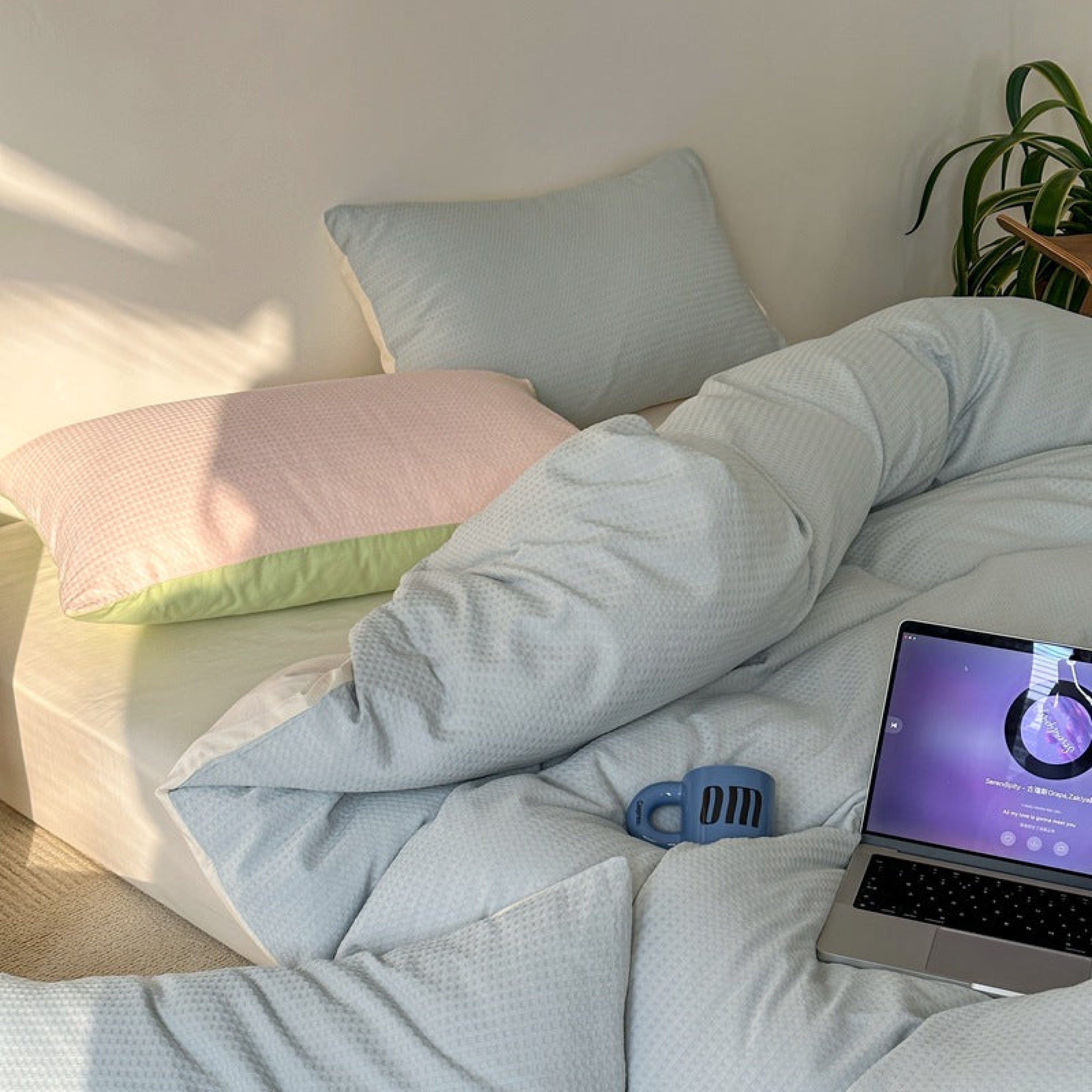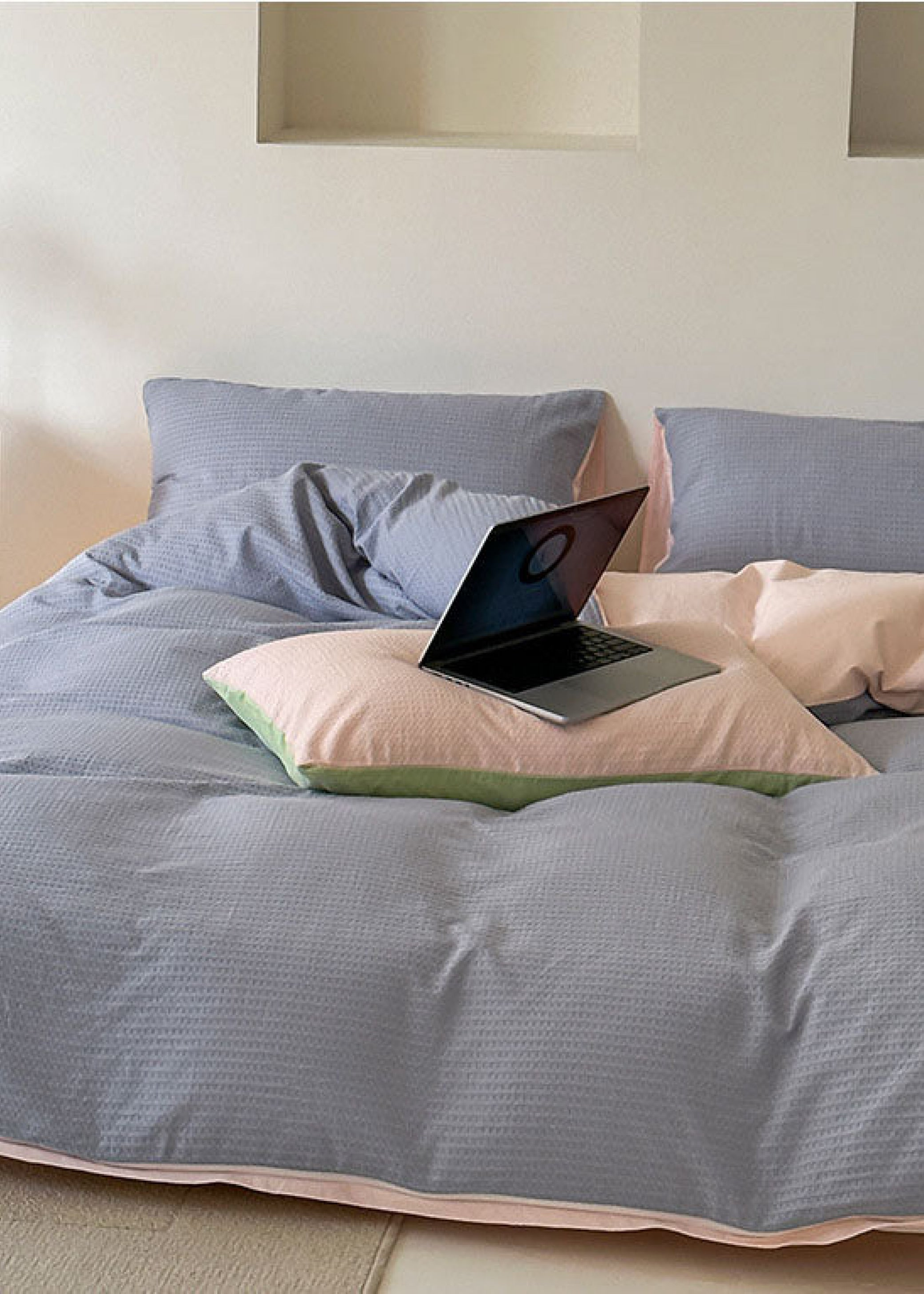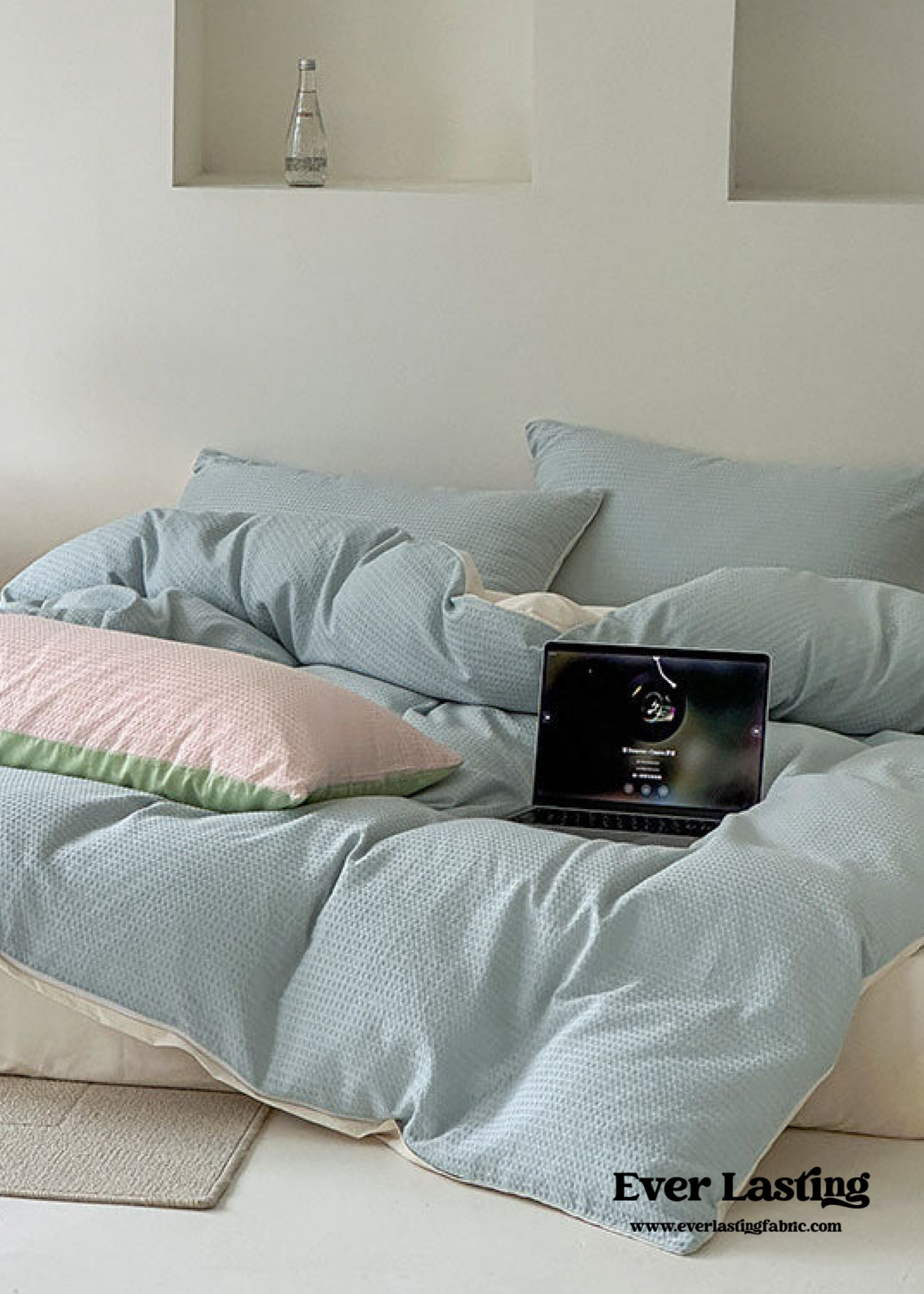 Elevate your sleep sanctuary with our Duo Waffle Bedding Set. This set is a harmonious blend of style and comfort. featuring a sophisticated waffle texture that adds depth and character to your sleep space. Each duvet cover features four corner ties and a hidden zipper. ensuring your duvet insert stays securely in place all night. Crafted for both aesthetics and coziness. it's a versatile choice that turns your bedroom into a haven of modern elegance and relaxation. Experience the tactile luxury of waffle-textured bedding and make every night a dreamy escape into comfort and style.