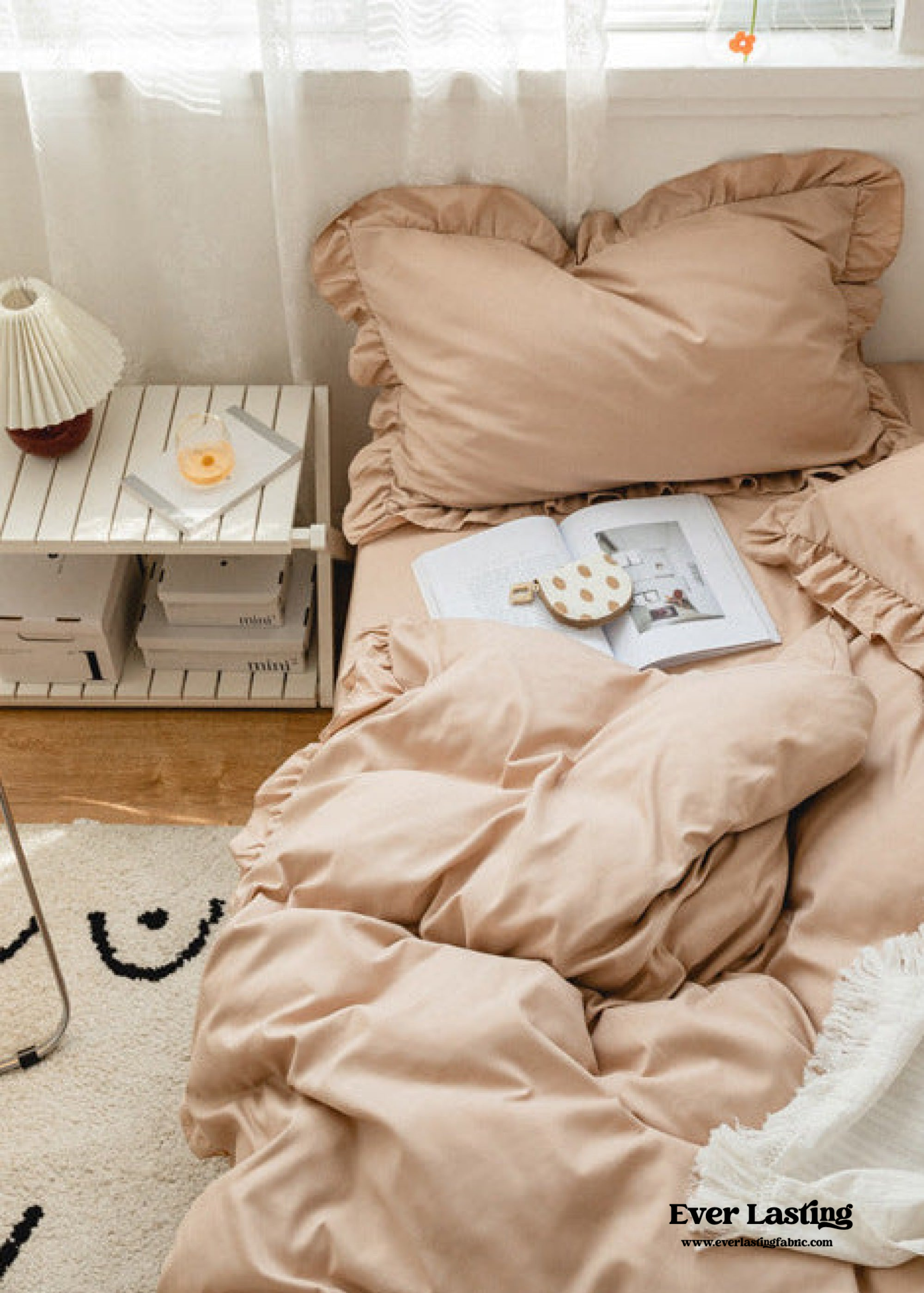 Get ready to cozy up in style with our Earth Tone Ruffle Bedding Set! This captivating ensemble brings the warmth of earthy hues right to your bedroom. With 9 stunning colors to choose from. you can easily create a chill and relaxing space that's all you. The ruffled edges add a touch of charm and elegance to your decor. making your bed look effortlessly cool. And guess what? It's made from100% washed cottonthat guarantee a comfy and snuggly sleep experience and gets even softer with every use. Upgrade your bedroom with the earthy allure of our Earth Tone Ruffle Bedding Set and transform your space into a tranquil sanctuary that's just as cozy as it is stylish.