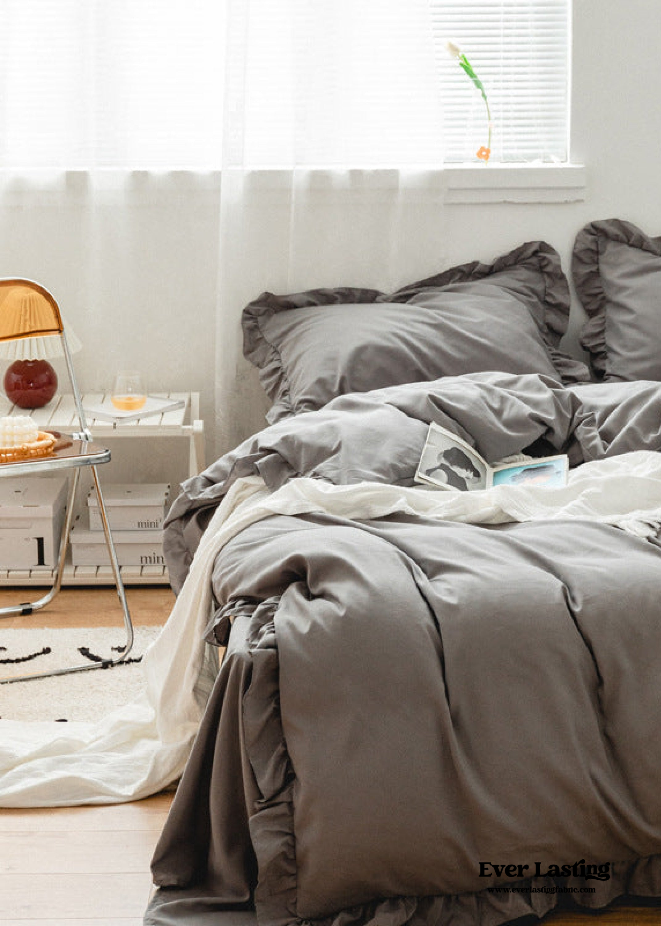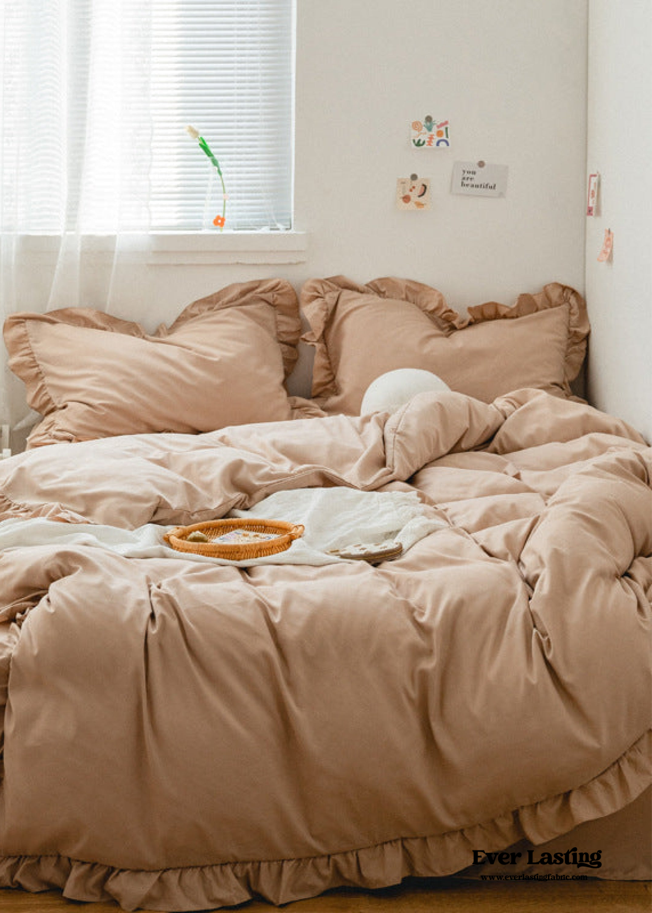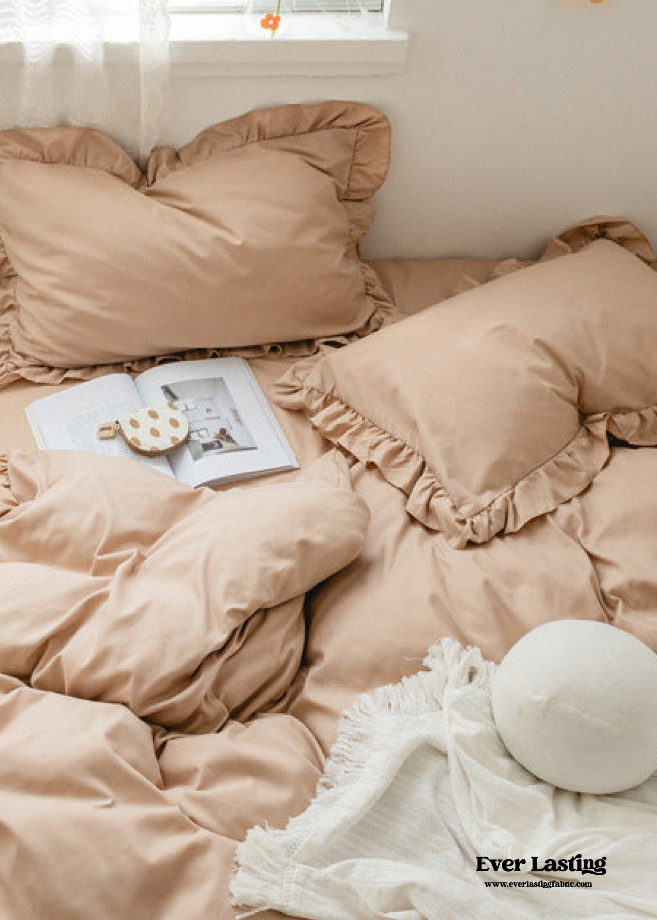 Create a tranquil sanctuary in your bedroom with our Earth Tone Ruffle Bedding Set in 9 stunning colors. Made from 100% washed cotton. this ensemble guarantees a comfortable and snuggly sleep experience that gets even softer with every use. The ruffled edges add a touch of charm and elegance to your decor. giving your bed an effortlessly cool look. Upgrade your space with the earthy allure of our bedding set and enjoy a cozy and stylish sleep every night.