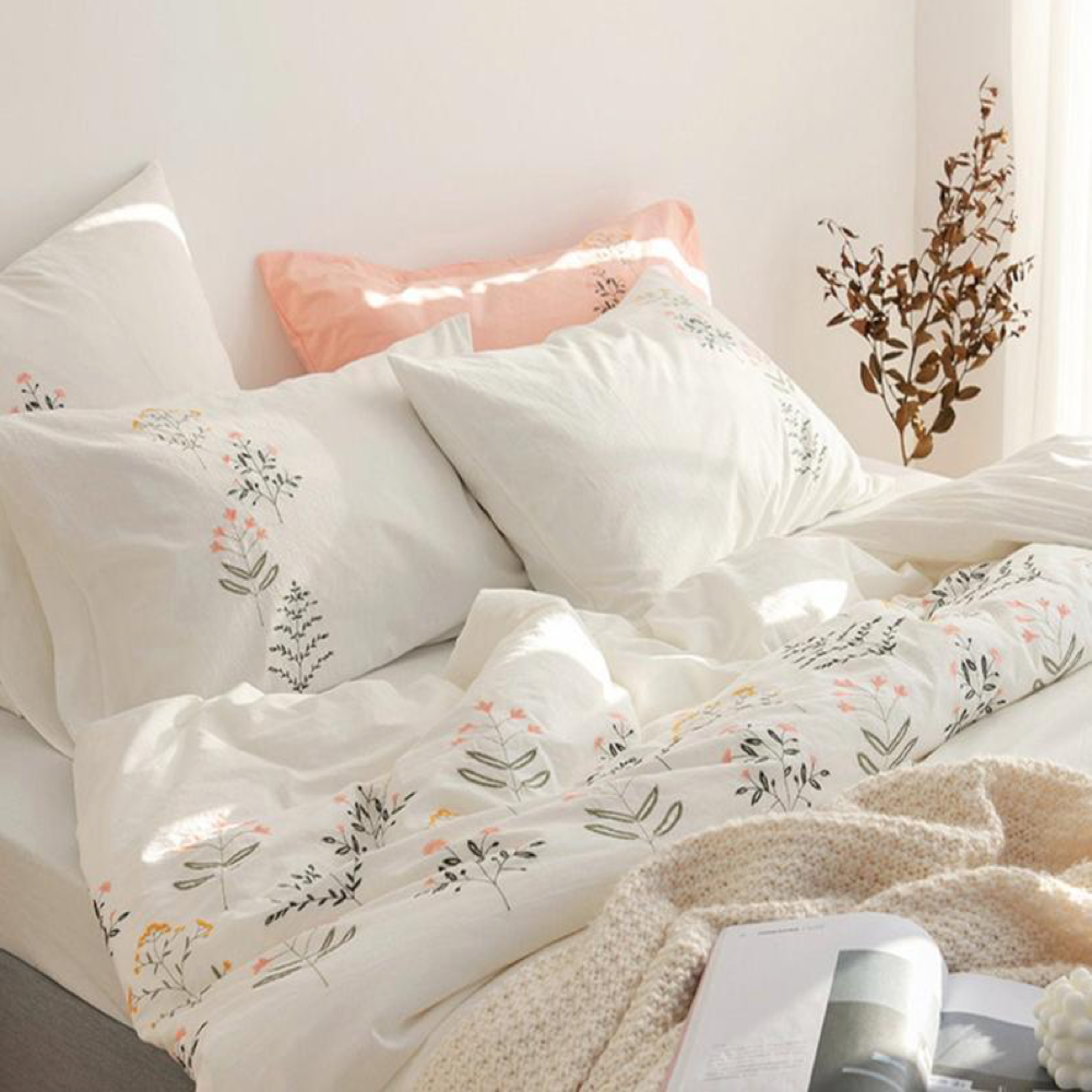Naturalidad reflejada en la vida cotidiana. Este juego de cama clásico presenta un delicado bordado a mano. Disfrute de este juego de alta calidad, hecho con 100 % algodón, transpirable, suave y duradero.