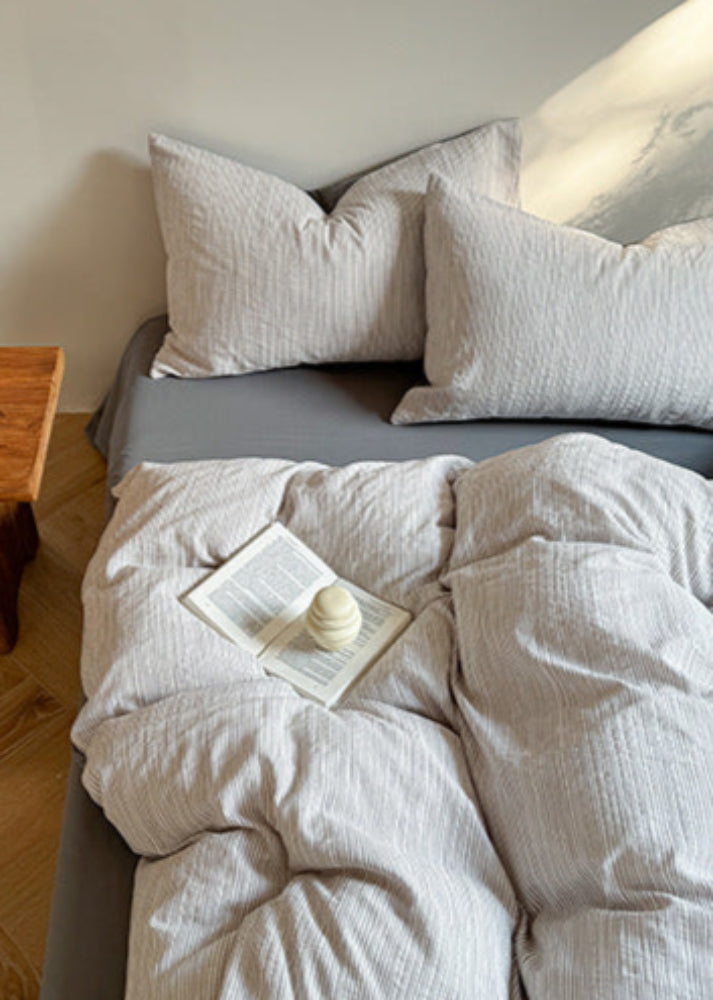 Bring a touch of purity and calm to your space with the Magchic's Emma Duo Striped Jacquard Bedding Set. Crafted from soft. breathable fabric with a gentle jacquard texture. this set showcases delicate pastel stripes that create a fresh. airy feel. Designed for both elegance and functionality. the duvet cover features corner ties and a hidden zipper to keep your insert securely in place. Perfect for those who love a clean. minimalist look with subtle sophistication.