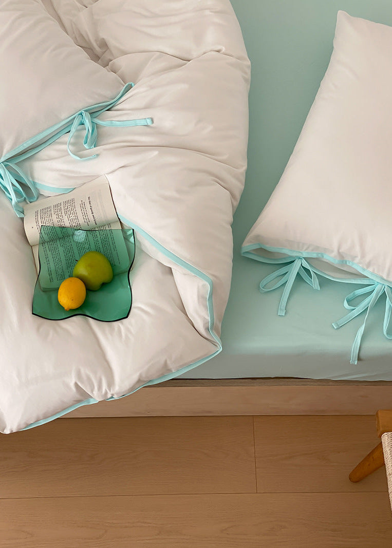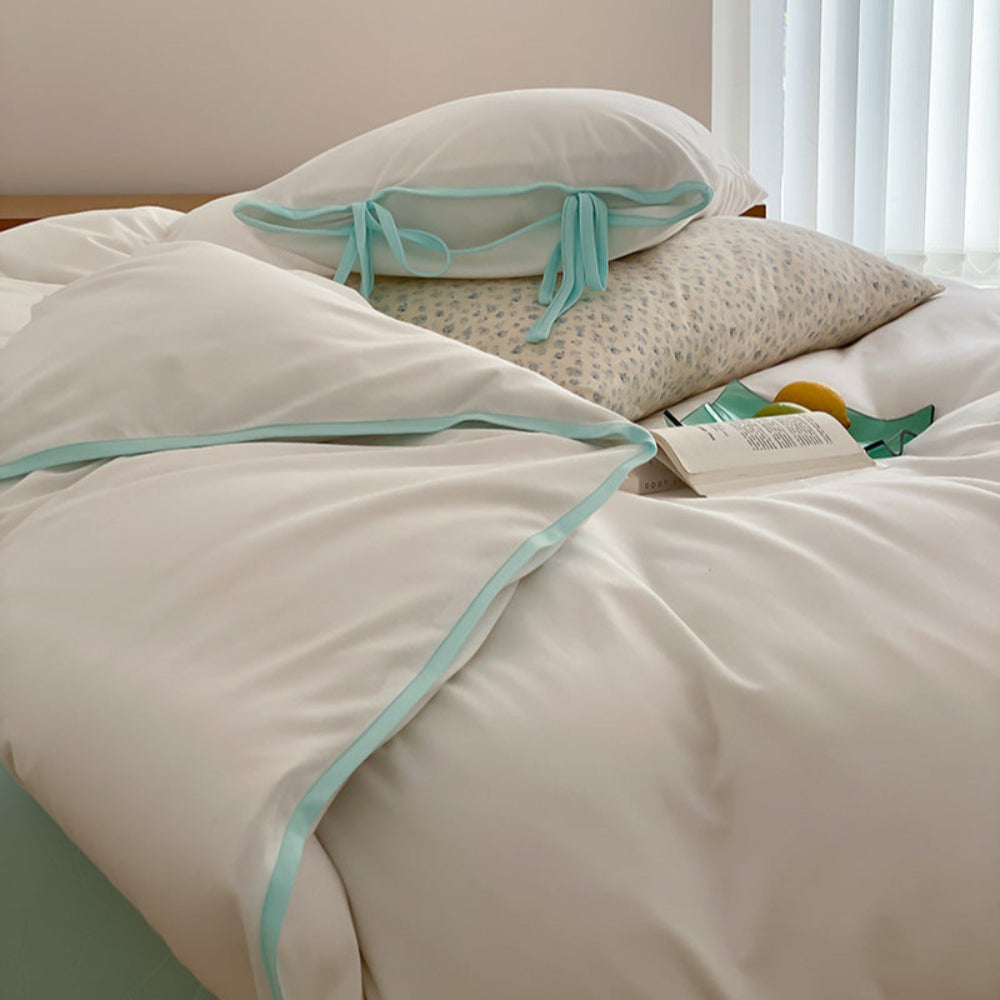 Create a peaceful haven with the Evangeline Pastel Bow Tie Twill Bedding Set by Magchic. Featuring soft twill fabric. gentle pastel tones. and charming bow tie accents. this bedding brings a quiet. elegant touch to your space. The duvet cover includes corner ties and a hidden zipper for a secure fit and effortless styling.