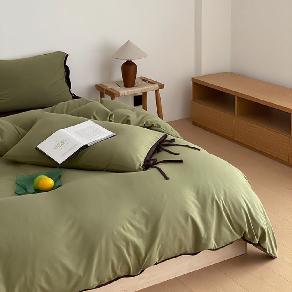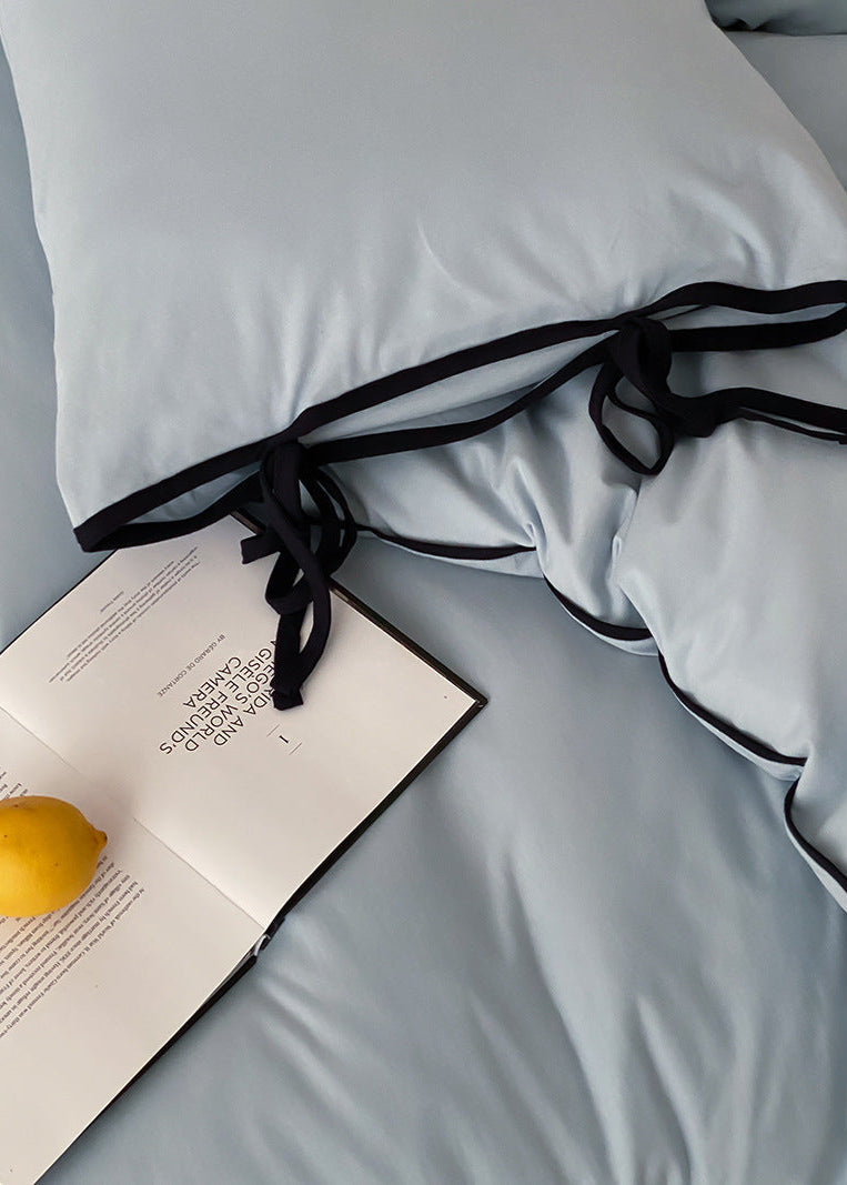 The Magchic's Evangeline Pastel Bow Tie Twill Bedding Set brings an air of refined simplicity to your bedroom. Crafted from soft. breathable twill fabric. it offers a lightweight feel perfect for year-round comfort. The delicate bow tie accents and pastel hues add a touch of timeless charm. creating a serene retreat. The duvet cover features corner ties and a hidden zipper to keep your insert securely in place. Transform your space into a calming haven with this pure. elegant bedding set.