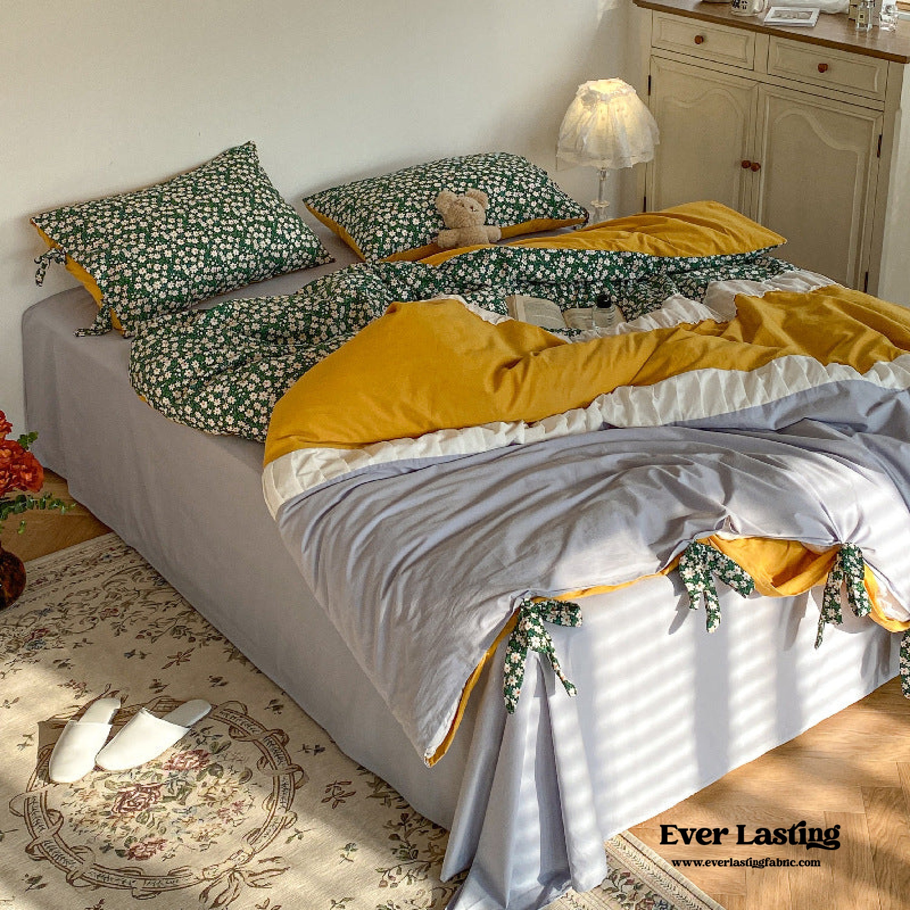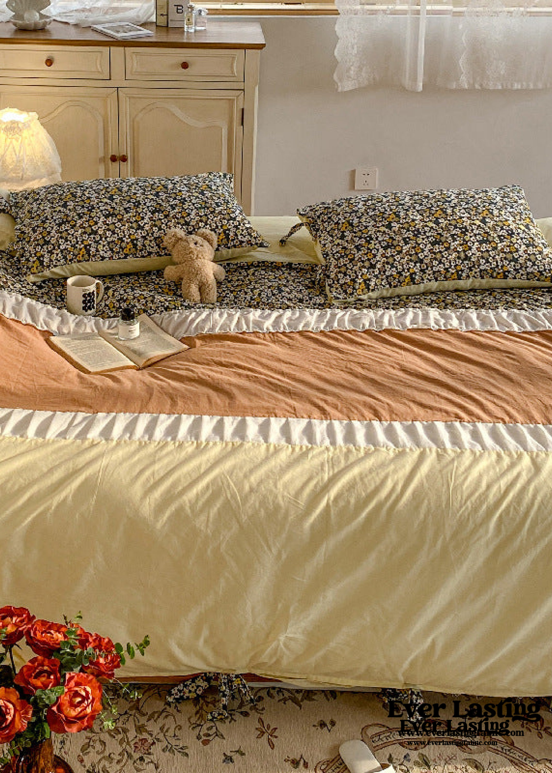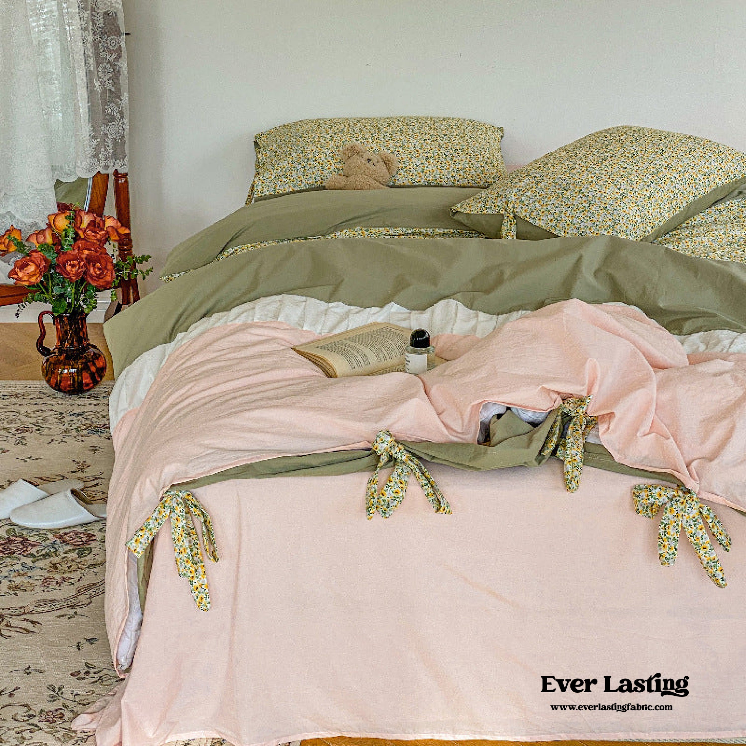 Elevate your bedroom with our enchanting Floral Patchwork Bedding Set. Designed to perfection. this set showcases a delightful combination of floral patterns. expertly crafted by our talented designers. The pure cotton material provides a luxuriously soft and cozy feel. ensuring a restful sleep experience night after night. The charming patchwork design adds a touch of playfulness. while the girly bow accents infuse a hint of whimsy and charm. Embrace the beauty of the blooming garden and transform your bedroom into a haven of comfort and style with our Floral Patchwork Bedding Set.