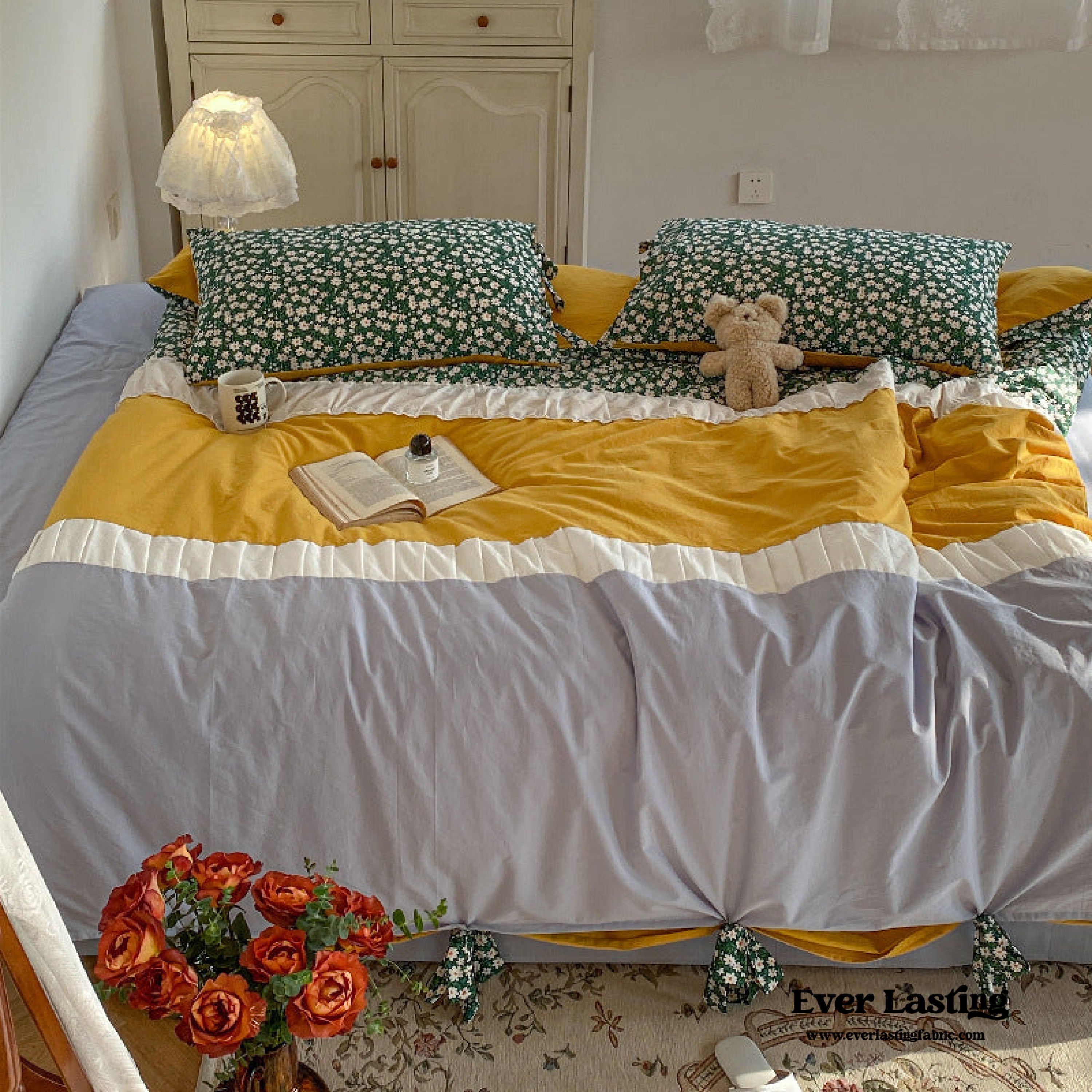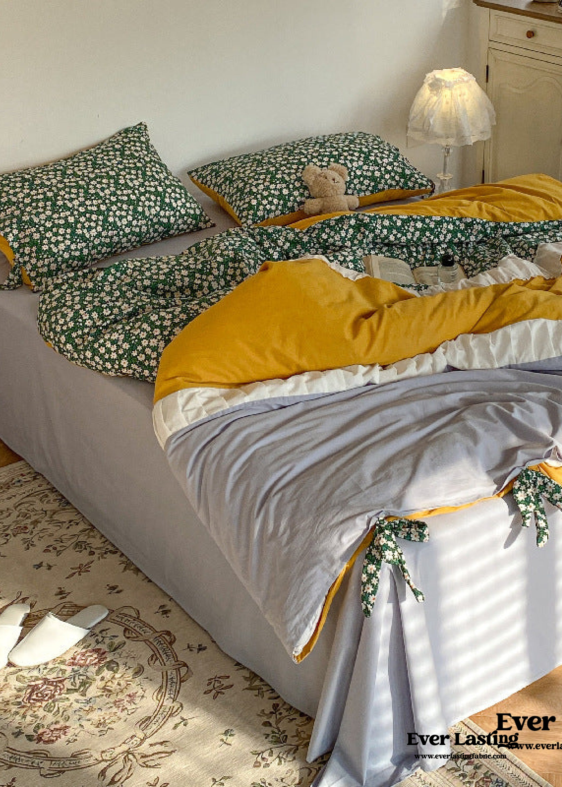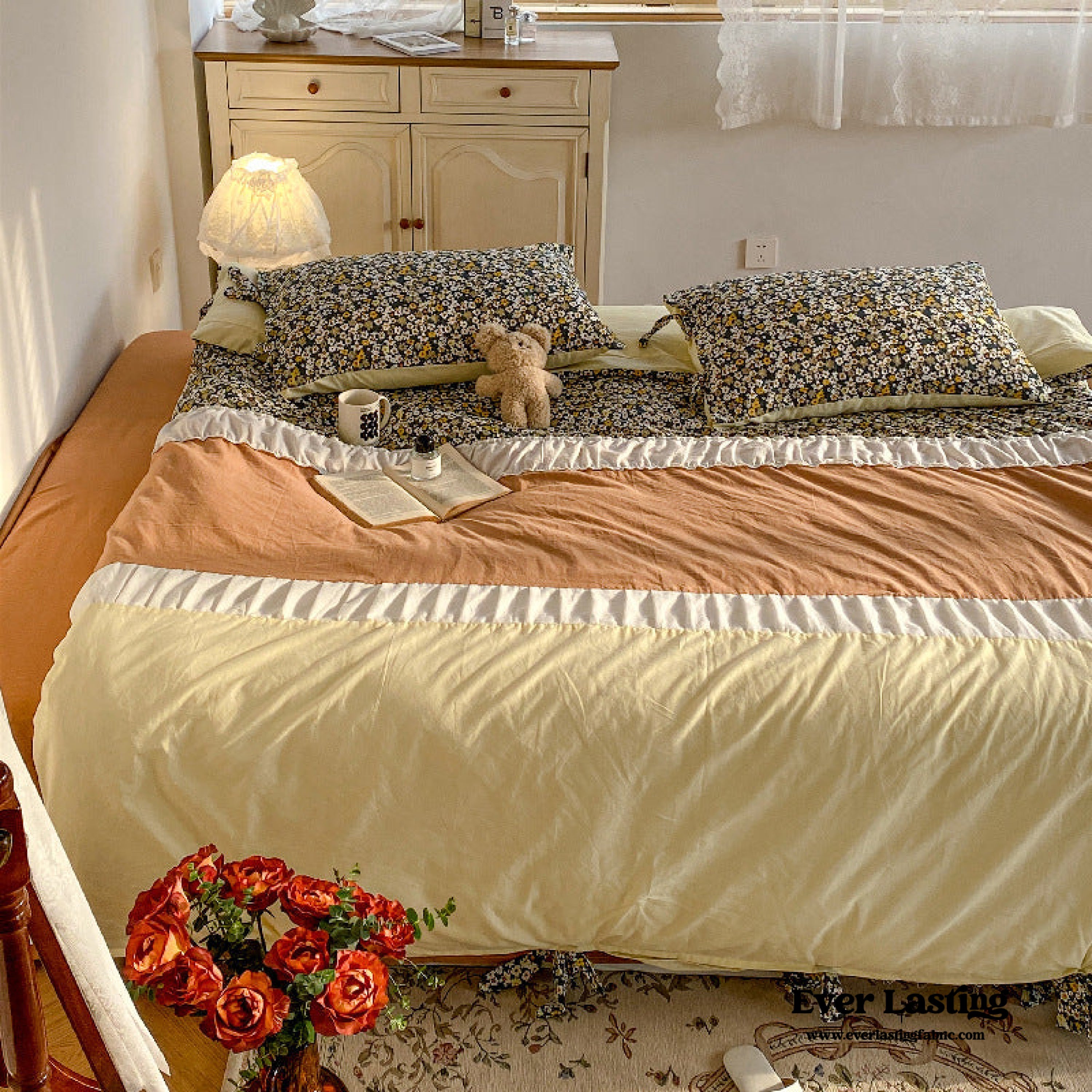 Elevate your bedroom with our enchanting Floral Patchwork Bedding Set. Designed to perfection. this set showcases a delightful combination of floral patterns. expertly crafted by our talented designers. The pure cotton material provides a luxuriously soft and cozy feel. ensuring a restful sleep experience night after night. The charming patchwork design adds a touch of playfulness. while the girly bow accents infuse a hint of whimsy and charm. Embrace the beauty of the blooming garden and transform your bedroom into a haven of comfort and style with our Floral Patchwork Bedding Set.