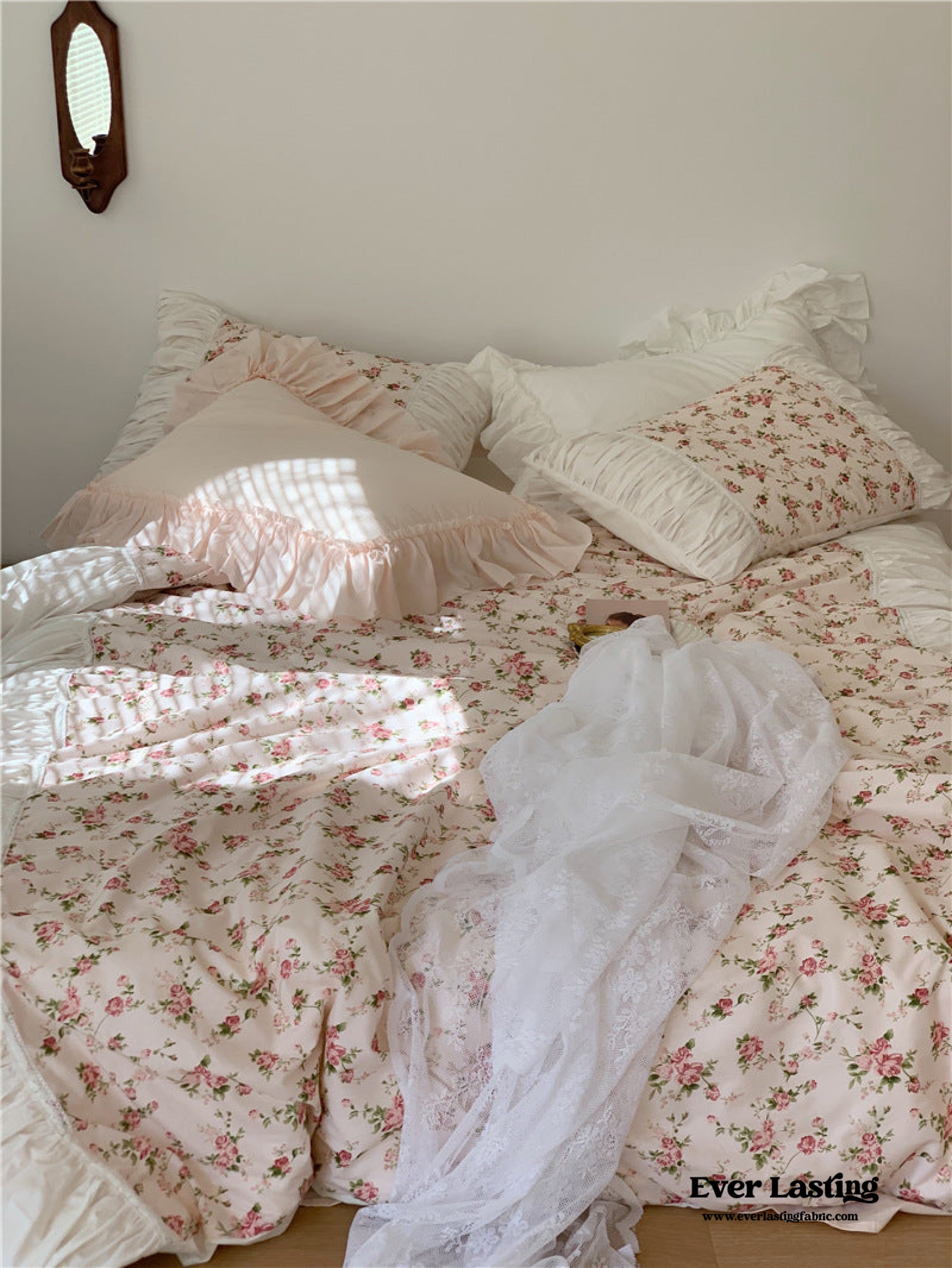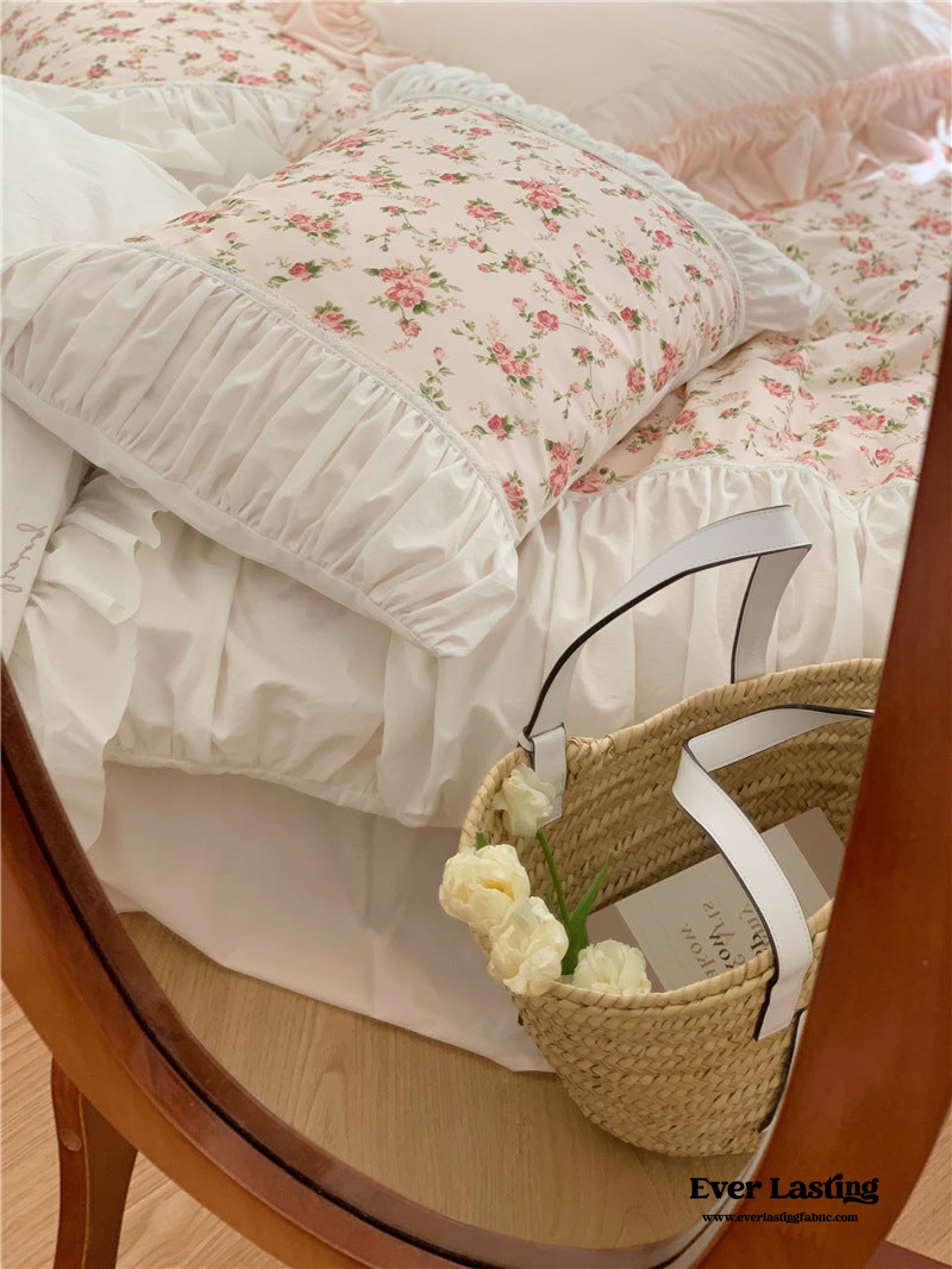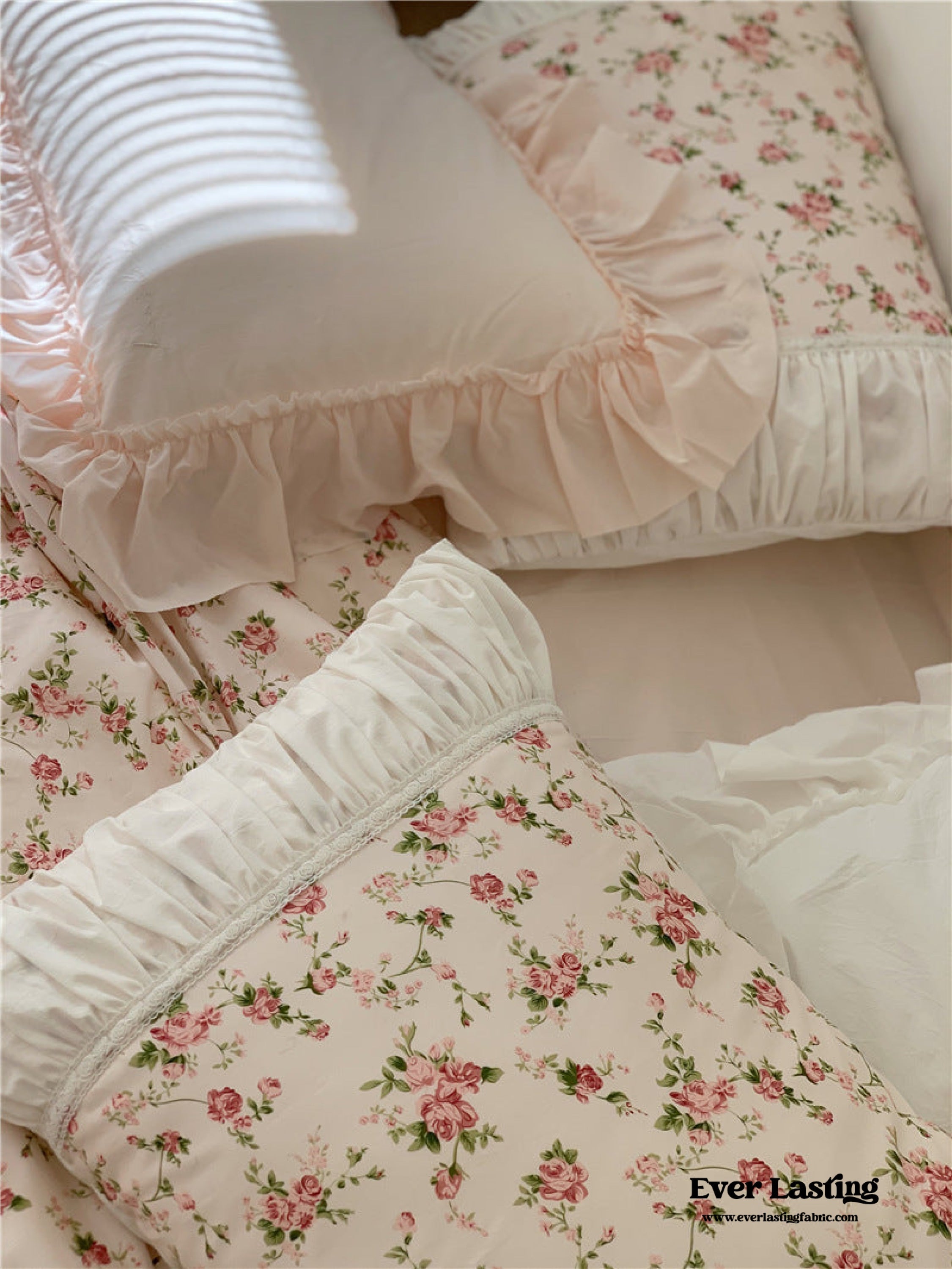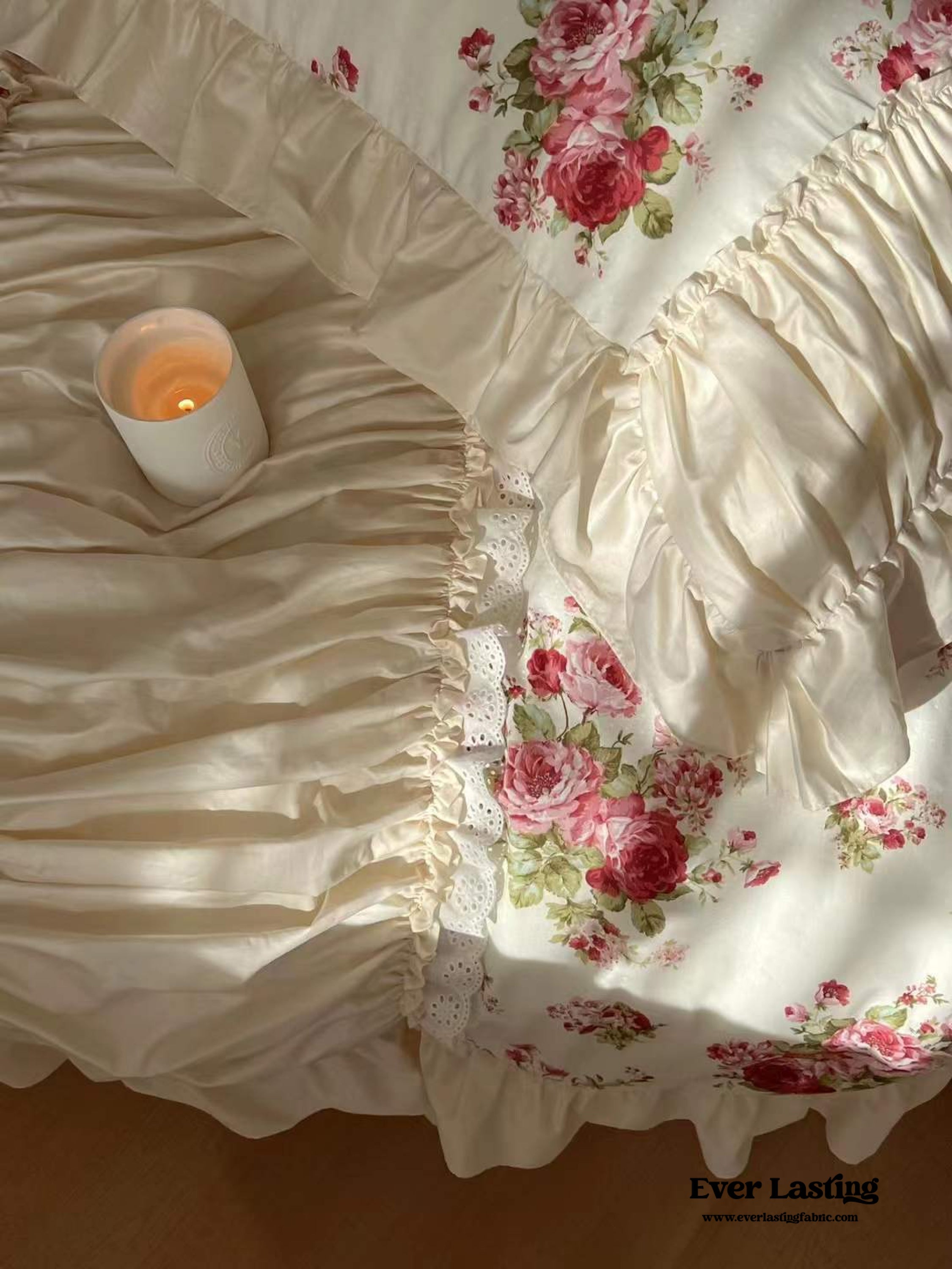 Indulge in the timeless romance of our French Rose Ruffle Bedding Set. Adorned with exquisite ruffles and inspired by the elegance of French aesthetics. this set transforms your bedroom into a sanctuary of luxury and charm. Each duvet cover comes with four corner ties and a hidden zipper to keep your duvet insert in place all night long! Elevate your sleep experience with a touch of floral elegance. creating an atmosphere where comfort and beauty harmonize in every detail.