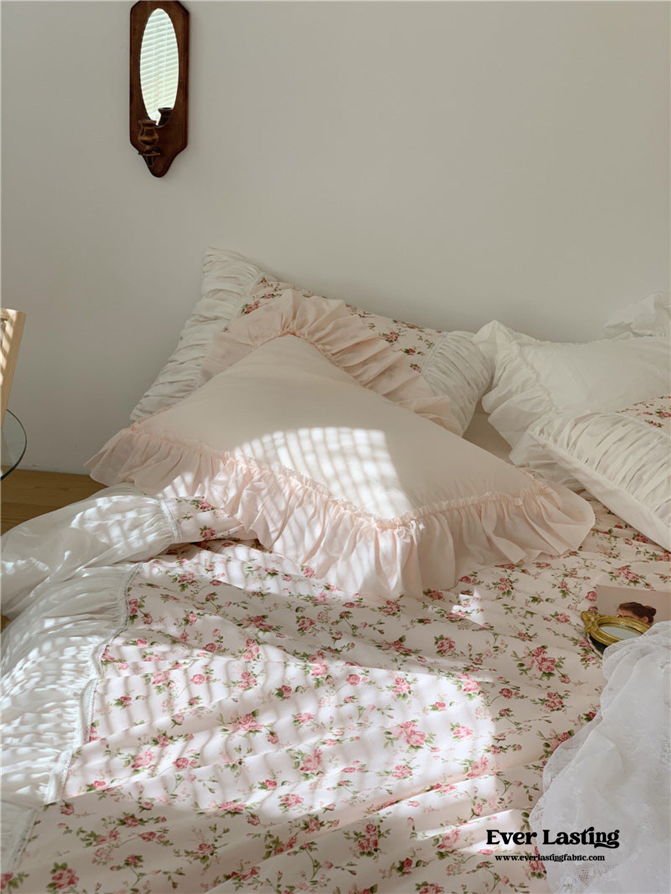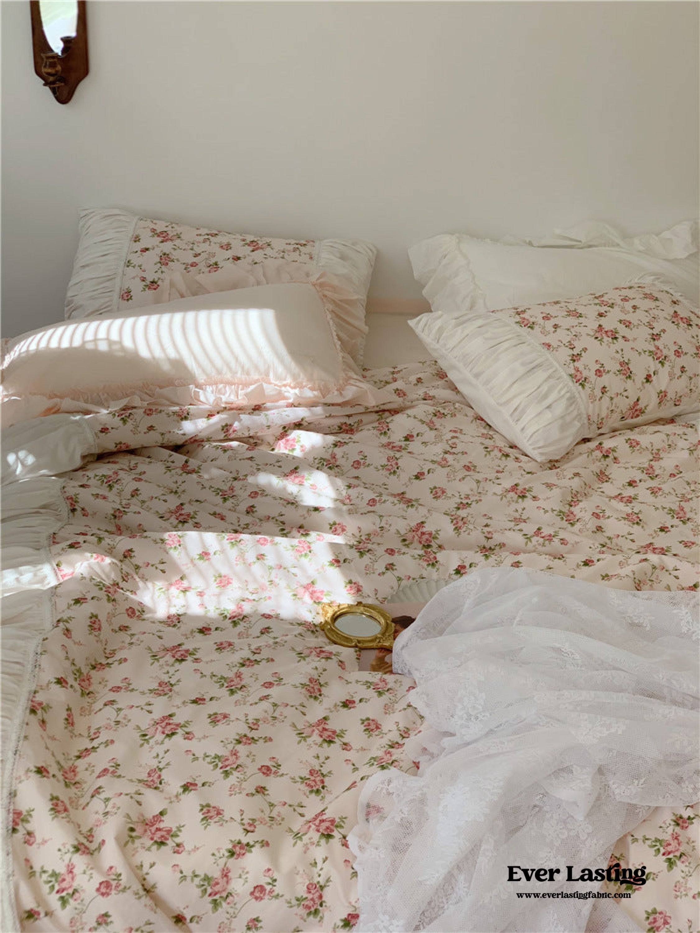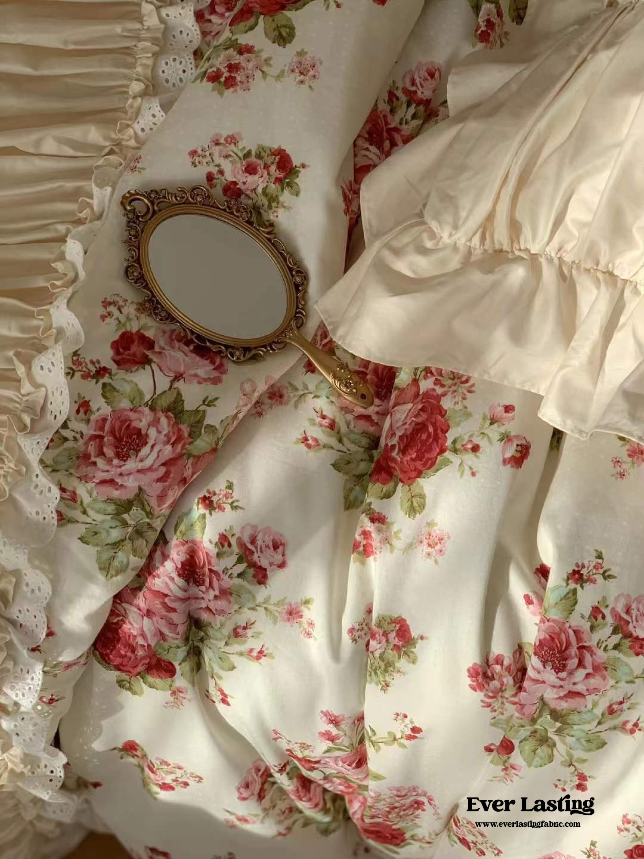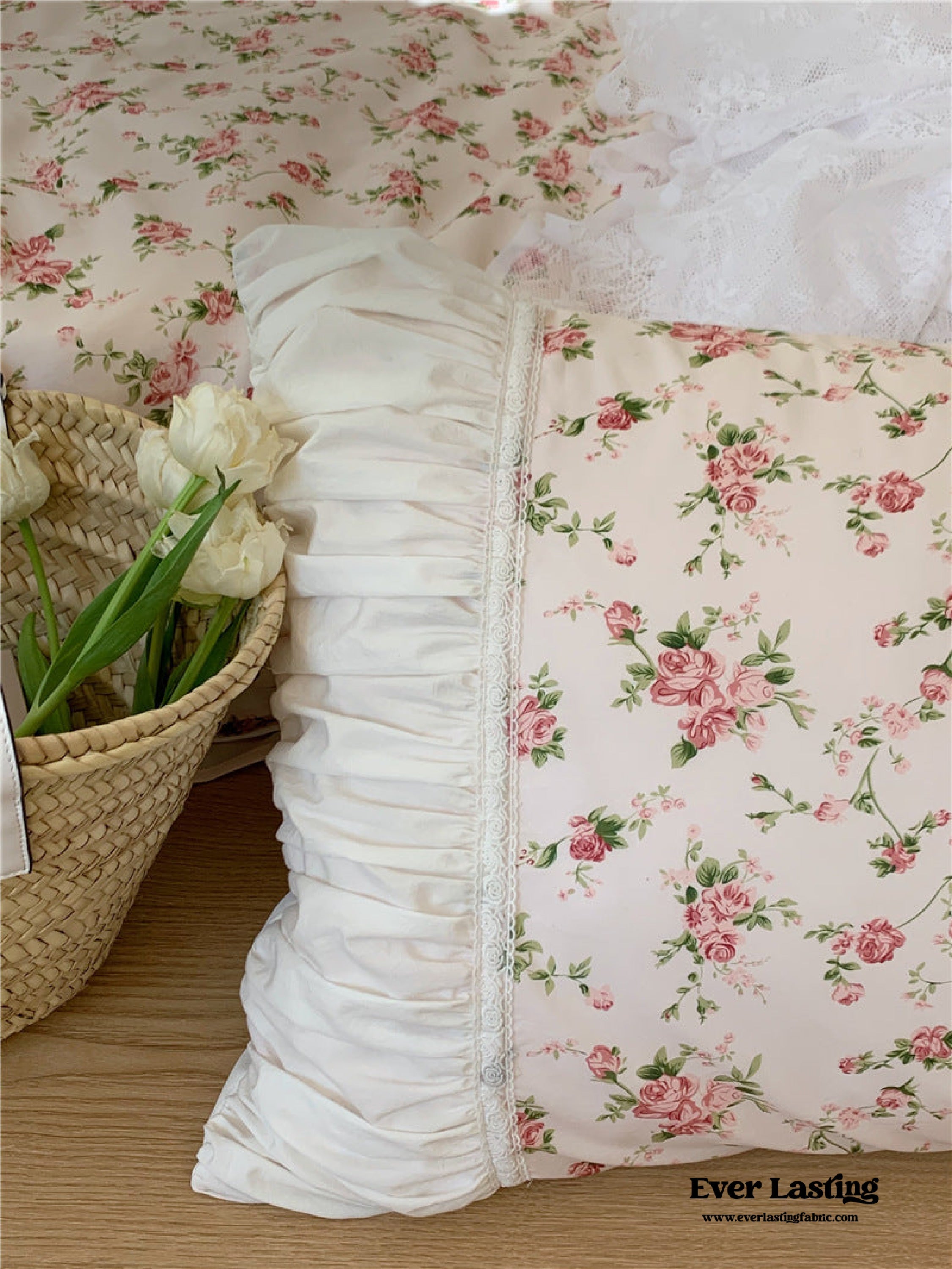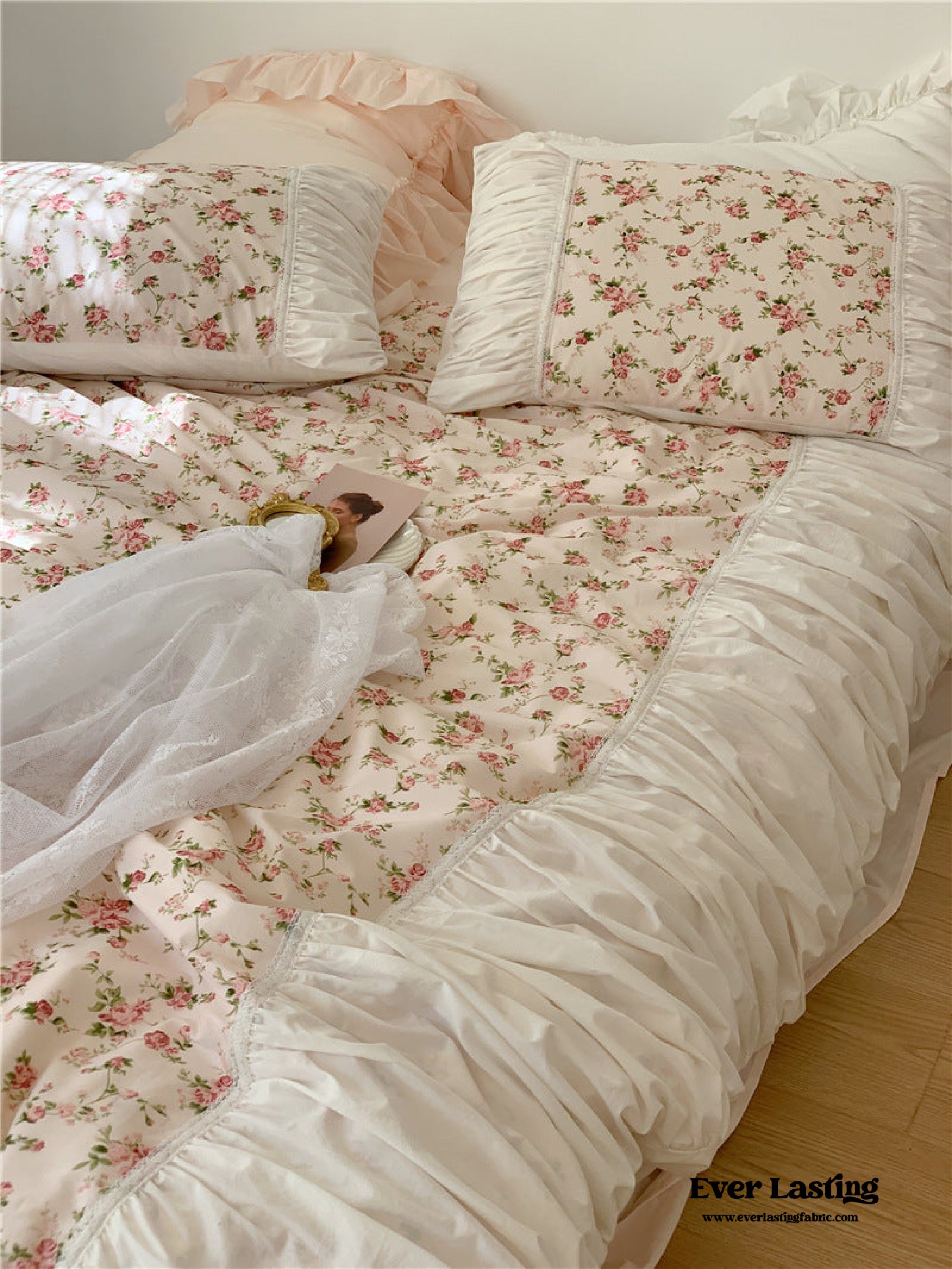 Indulge in the timeless romance of our French Rose Ruffle Bedding Set. Adorned with exquisite ruffles and inspired by the elegance of French aesthetics. this set transforms your bedroom into a sanctuary of luxury and charm. Each duvet cover comes with four corner ties and a hidden zipper to keep your duvet insert in place all night long! Elevate your sleep experience with a touch of floral elegance. creating an atmosphere where comfort and beauty harmonize in every detail.