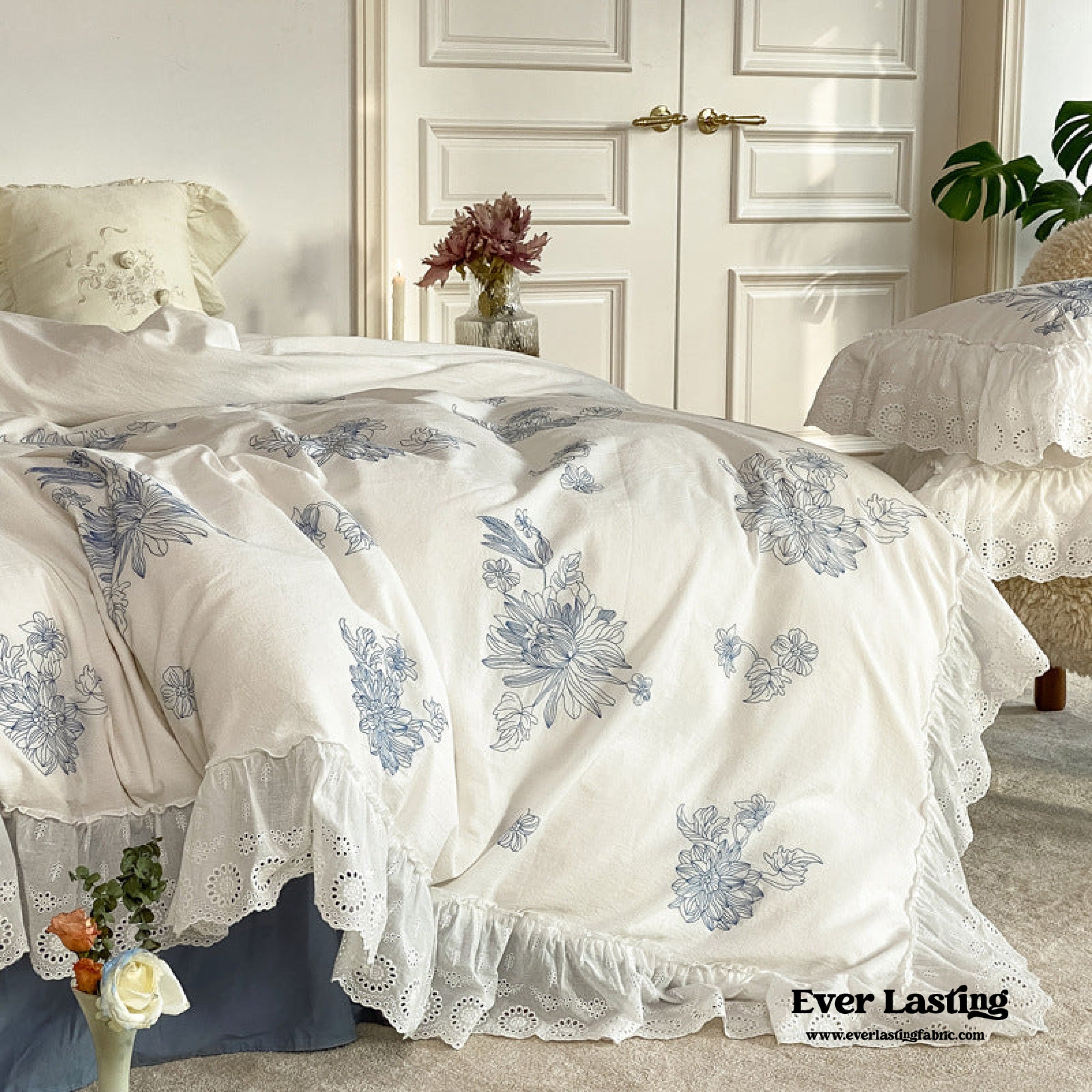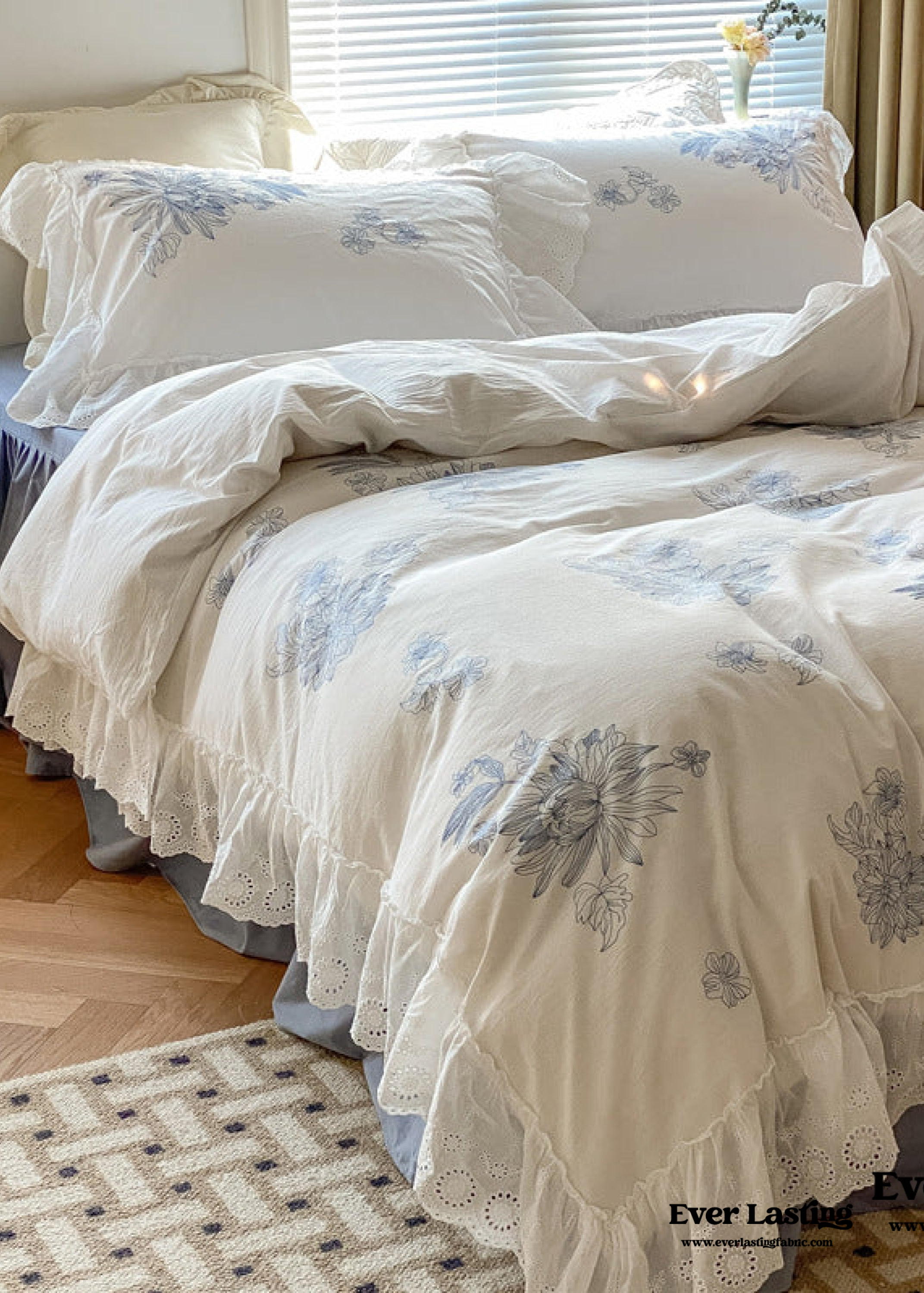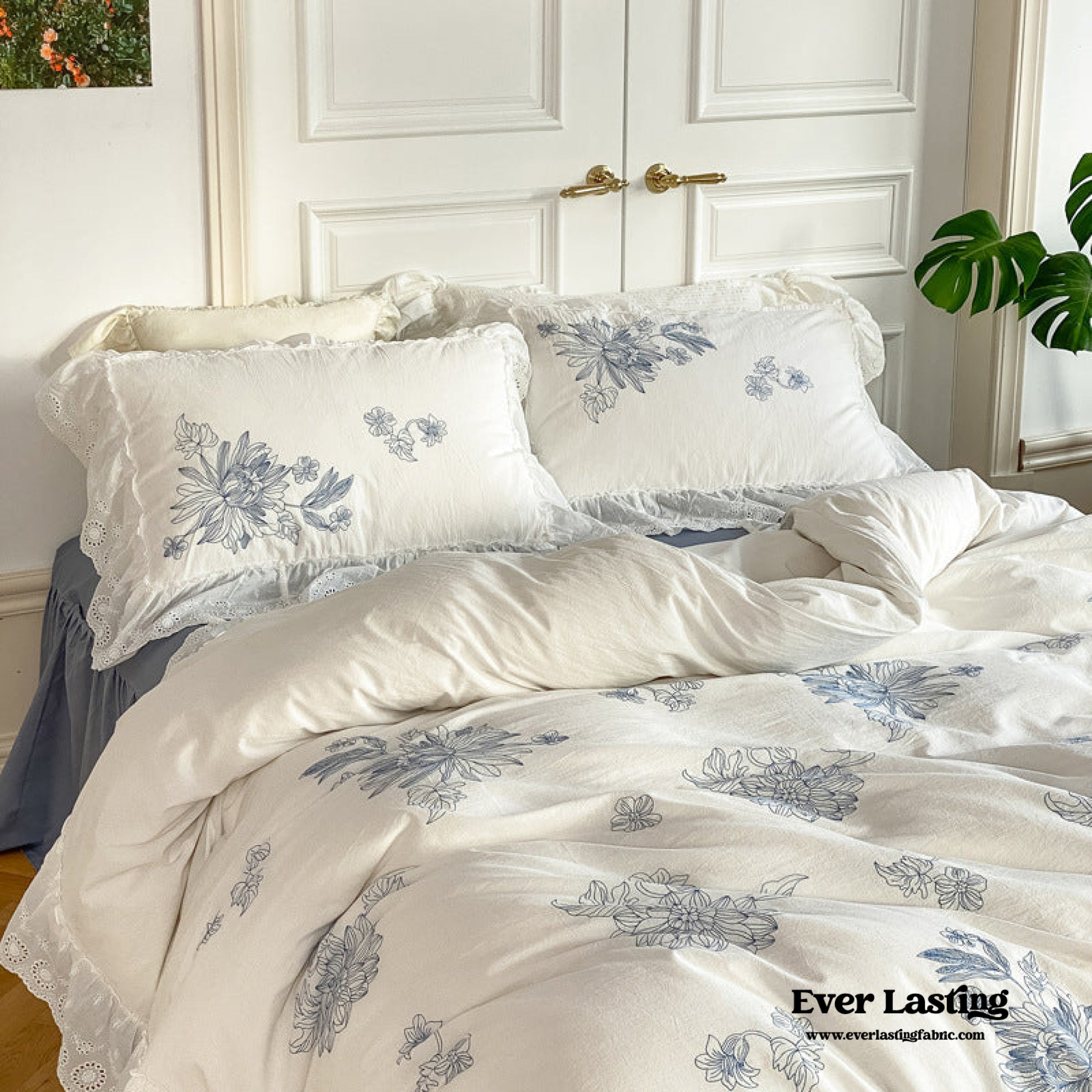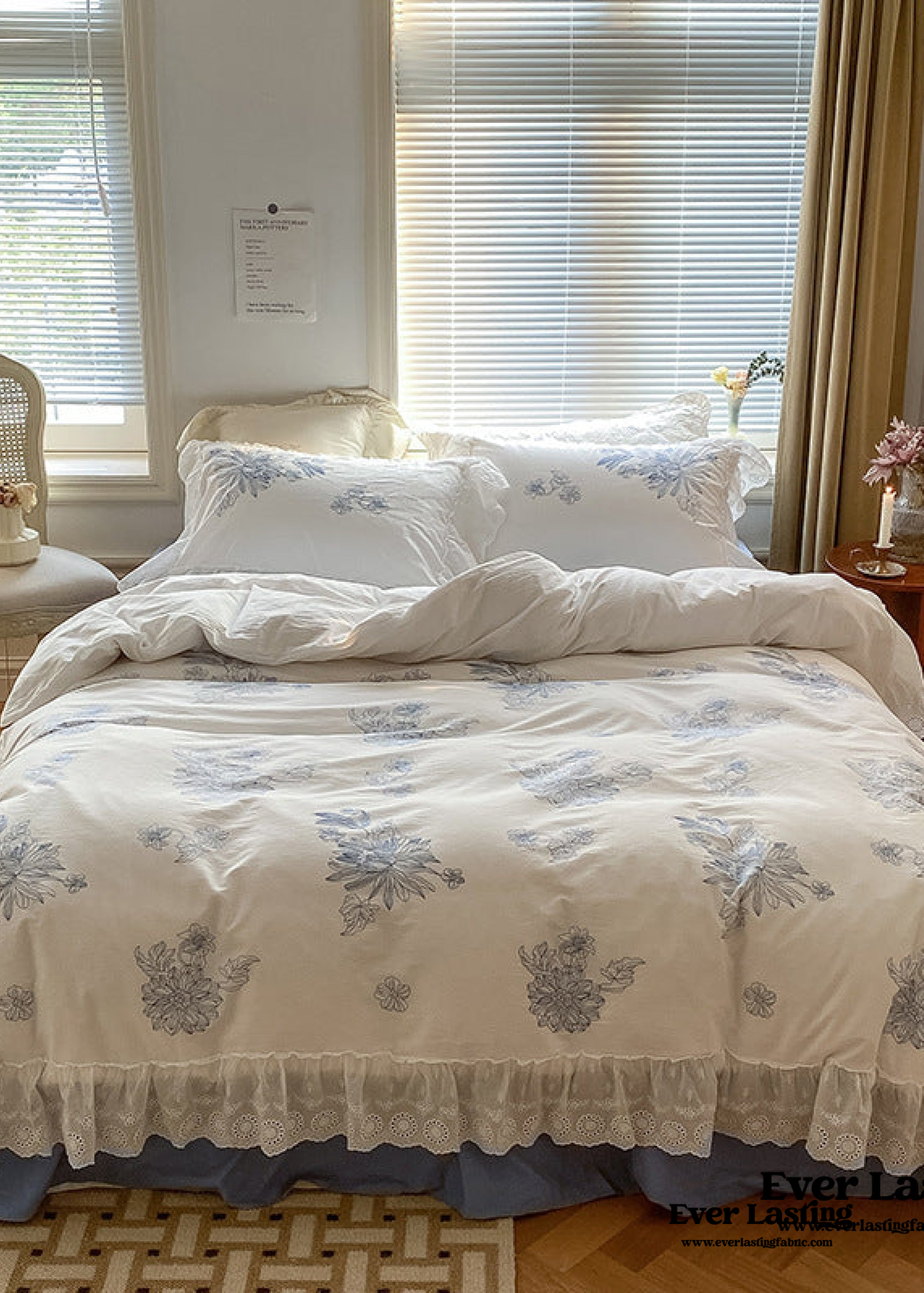 Elevate your bedroom to a realm of timeless beauty with our French White Lace Ruffle Bedding Set. Adorned with intricate lace and graceful ruffles. this set exudes the essence of French elegance and comfort. Each duvet cover features four corner ties and a hidden zipper. ensuring your duvet insert stays securely in place all night. Transform your sleep space into a haven of sophistication. where each night feels like a dream in a Parisian chateau. Indulge in the luxury of this exquisite bedding set. where romance meets relaxation in every detail.