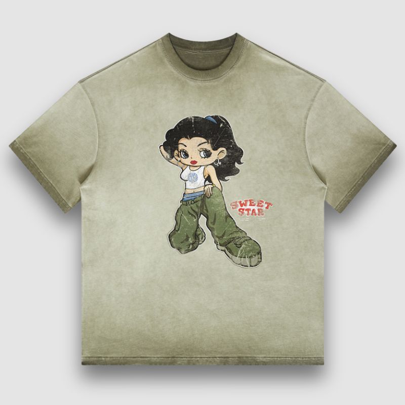 Características: Camiseta. Cuello redondo. Manga corta. Diseño de estampado de personajes de dibujos animados. Lavado. Degradado. Unisex. Ajuste relajado. De gran tamaño. Conjuntos de pareja.