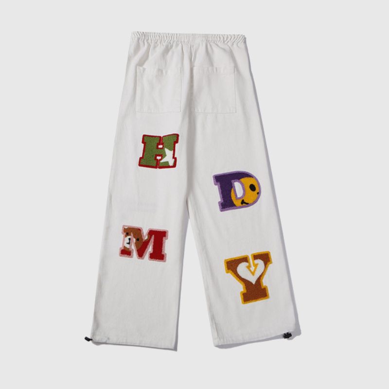 Vaqueros con bordados flocados y letras de hip-hop