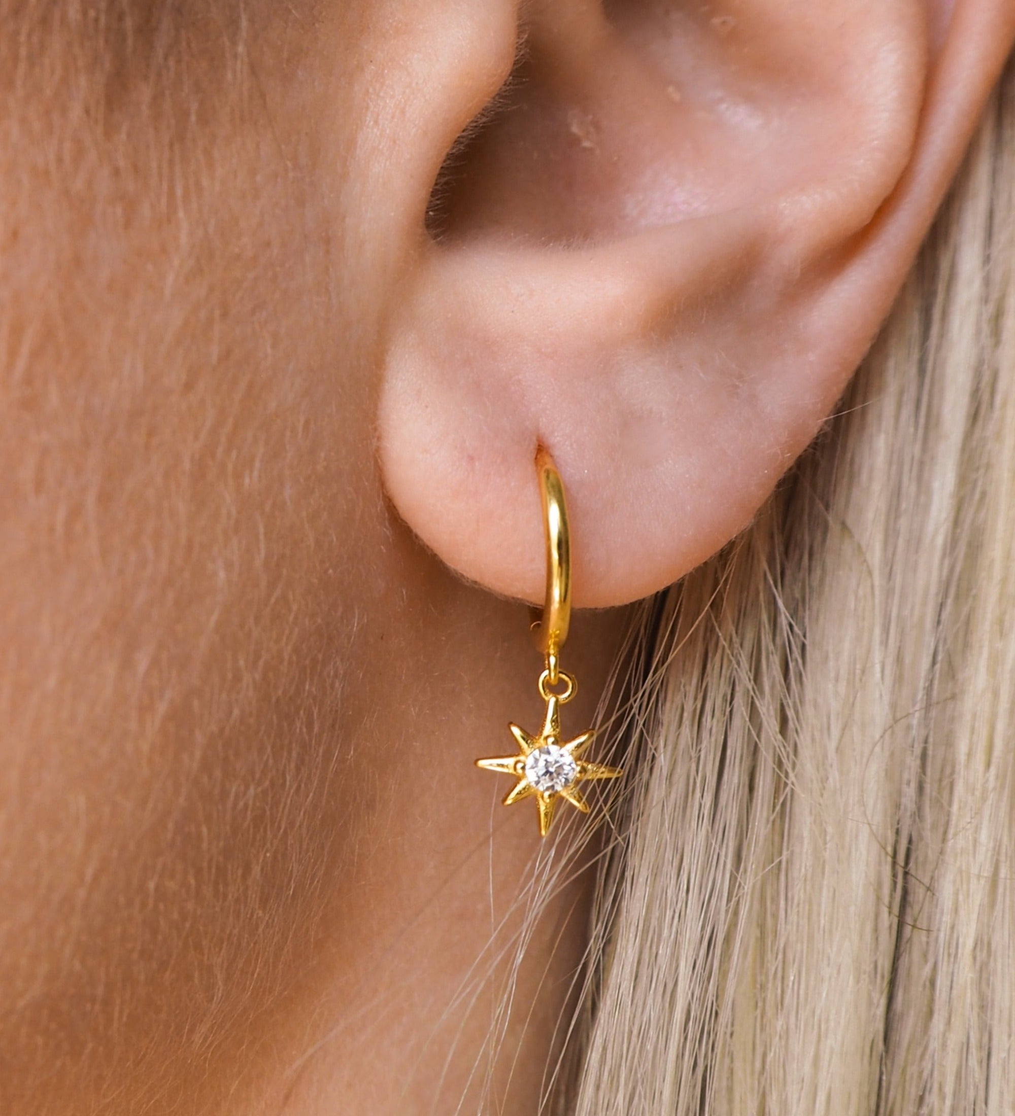 Huggies de estrella de oro y cristal