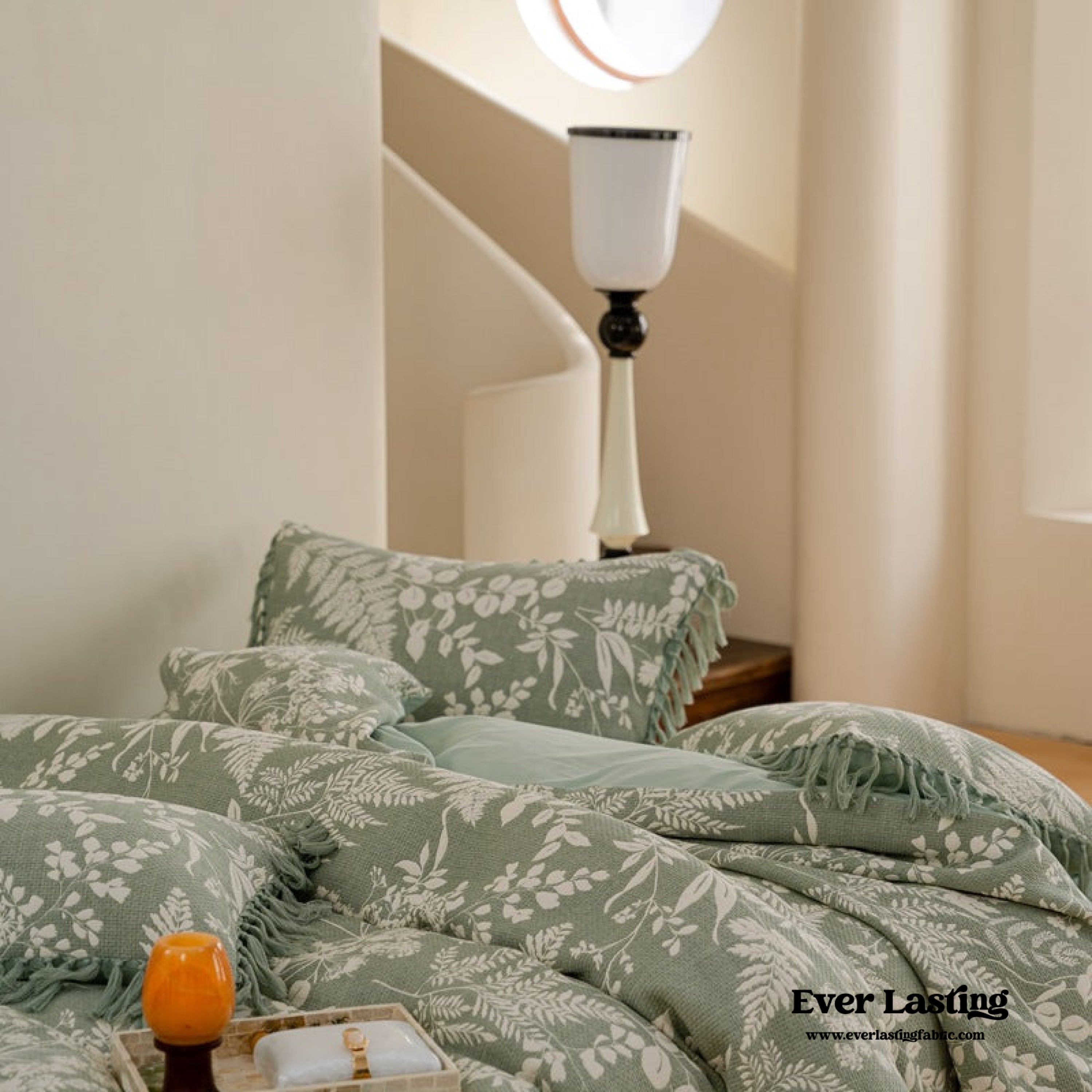 Unveil the beauty of our Jacquard Tufted Floral Bedding Set. a masterpiece of intricate design and timeless elegance. This set combines the artistry of jacquard weaving with a lush floral pattern. creating an atmosphere of luxury and comfort. Crafted for both aesthetics and relaxation. it turns your bedroom into a haven of modern opulence and tranquil beauty. Each duvet cover features four corner ties and a hidden zipper. ensuring your duvet insert stays securely in place all night. Elevate your sleep experience with this sophisticated and stylish bedding set. where the beauty of jacquard meets the promise of serene comfort in every tuft and bloom.